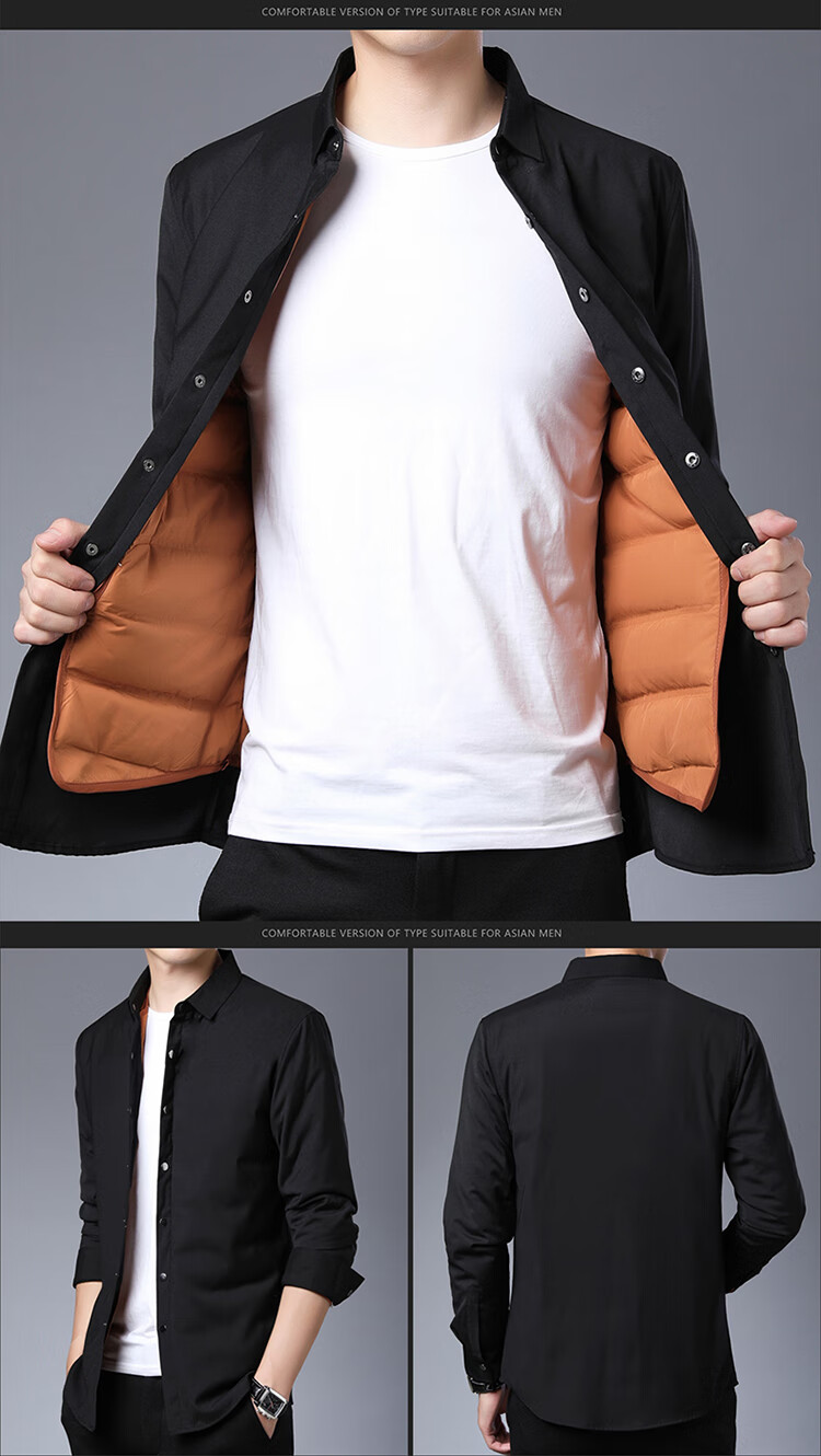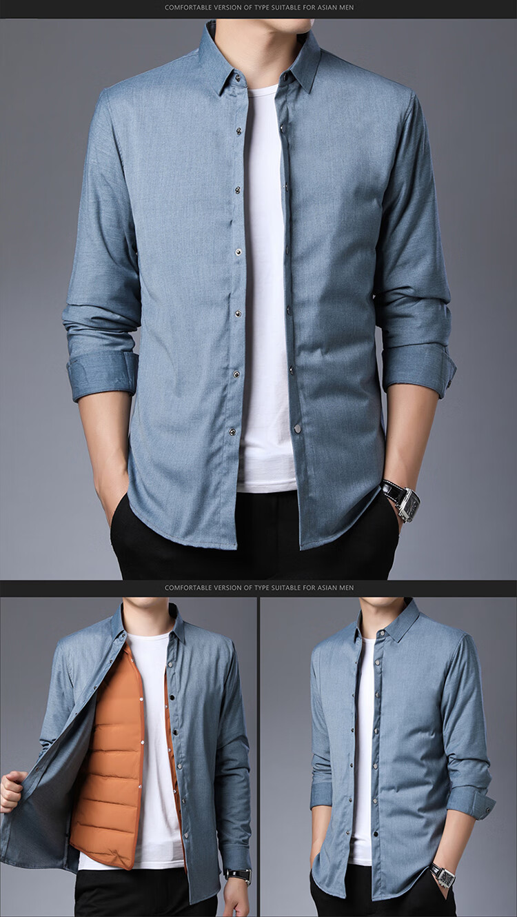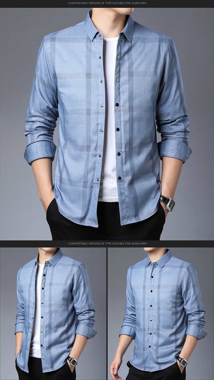 利郎男装长袖衬衫冬季加厚保暖可拆卸内胆男士休闲色衬衣潮 驼色9821(格子款) S 165/84A(建议95-120斤)