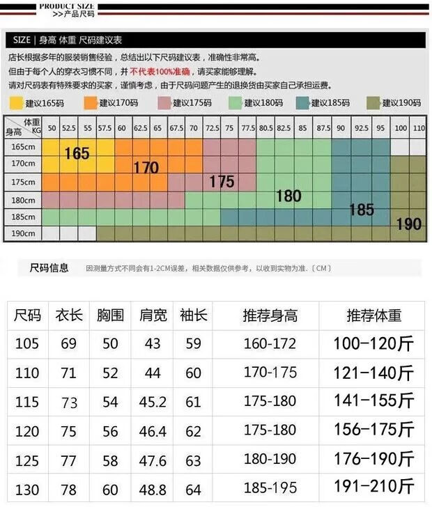 China (cm) 160-165/84-86 165-170 / 88-90 167-172 / 92-96 168-173 / 98-102 170-176 / 106-110