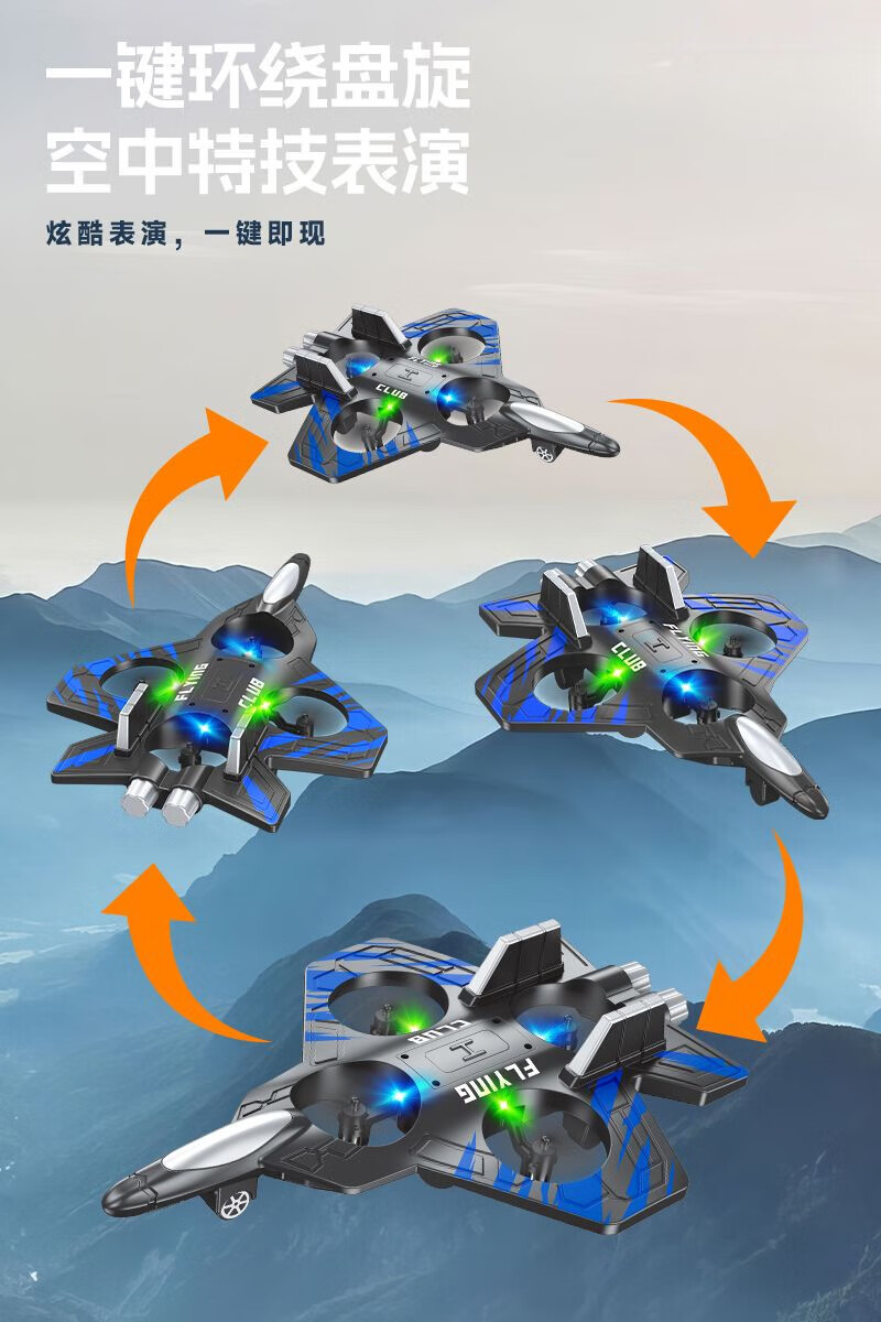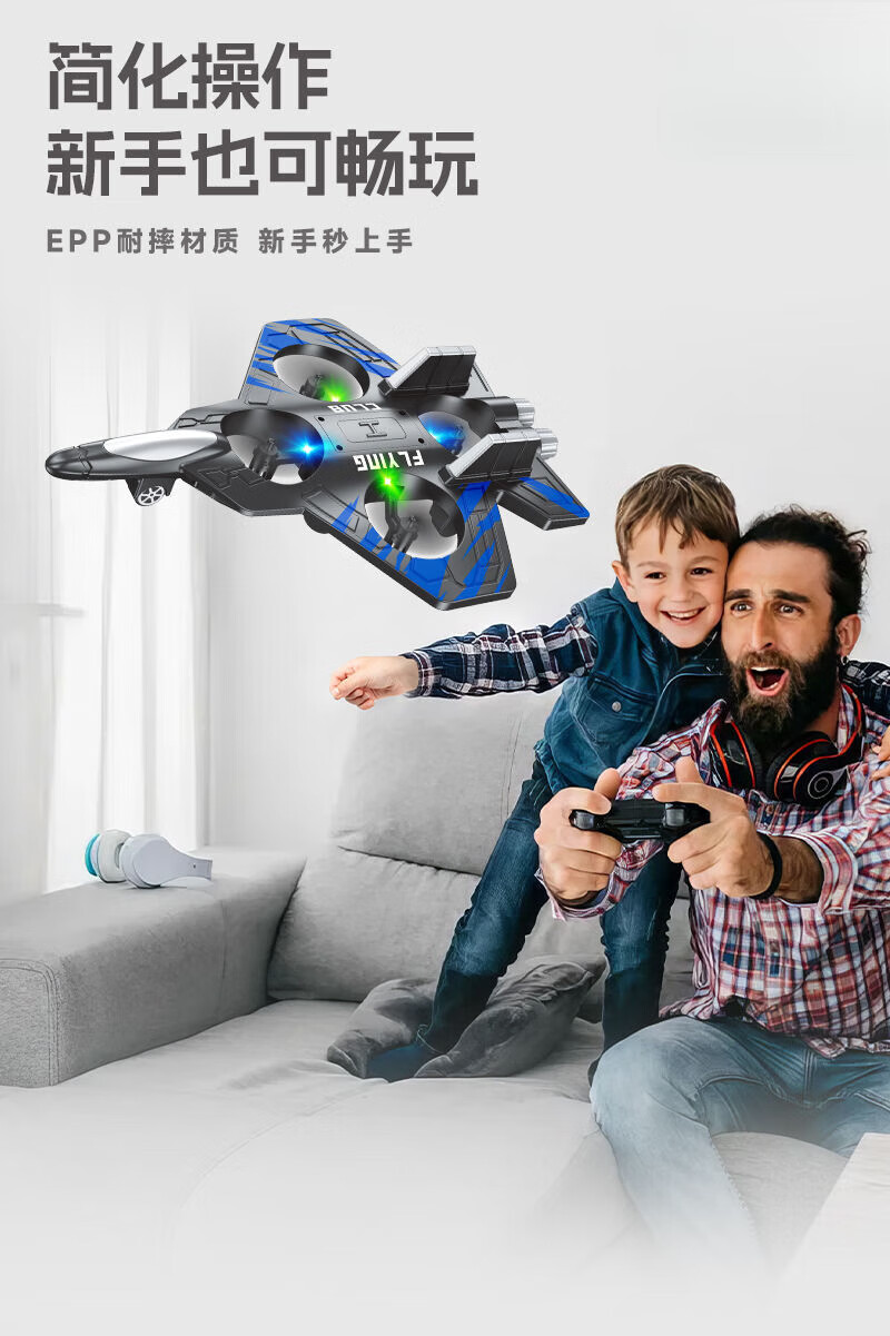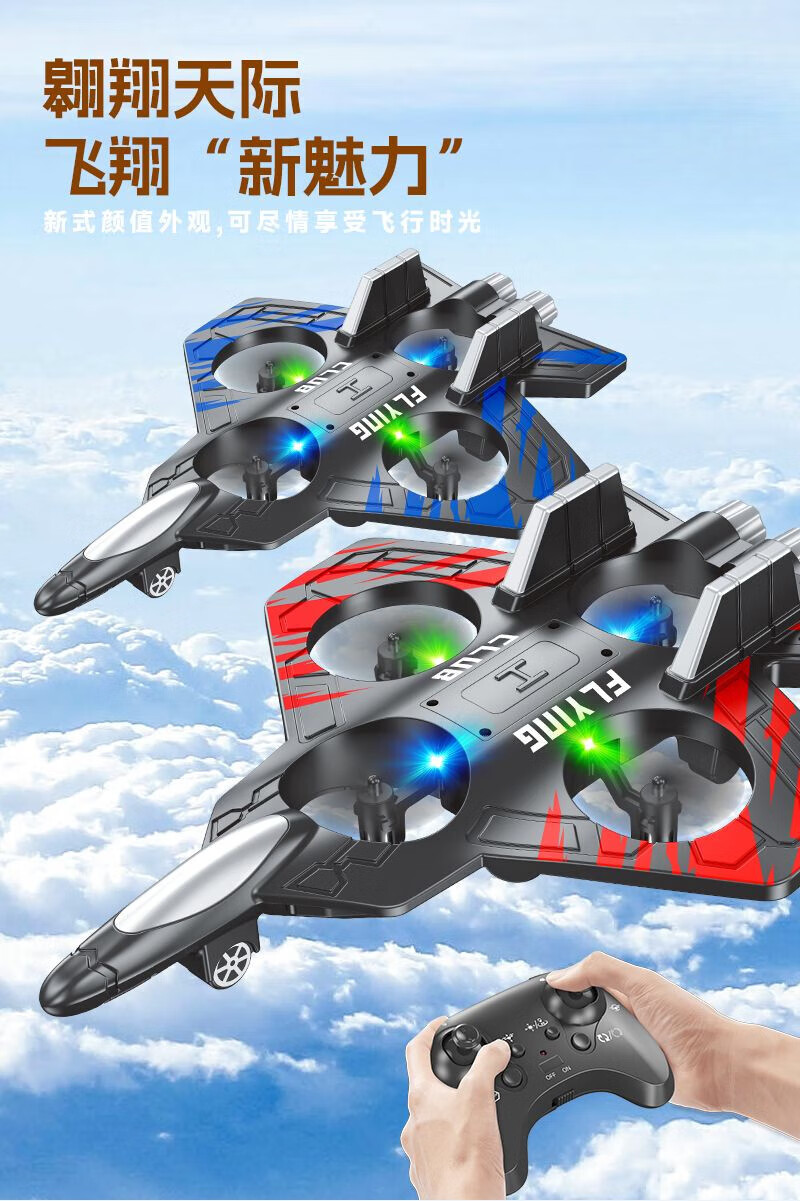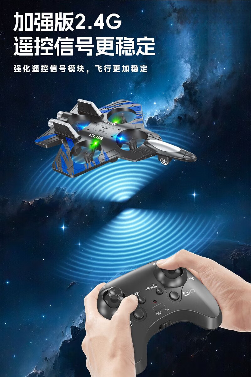 Bonas 2025 New Remote Control Plane Children's Fighter Glider Four-Axis Drone Small Boy Model Toy Blue Single Battery + Free Remote Control Battery + Exquisite Gift Box