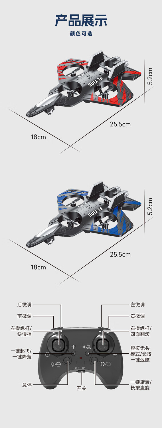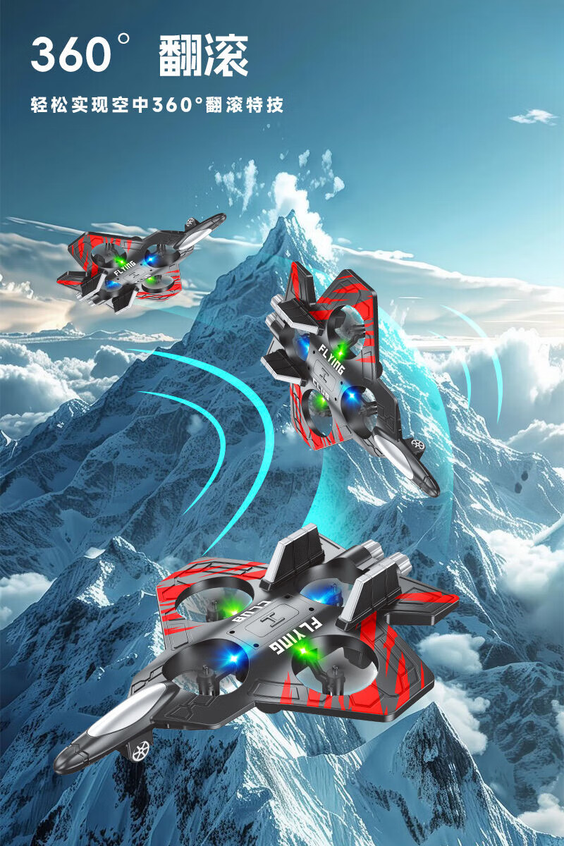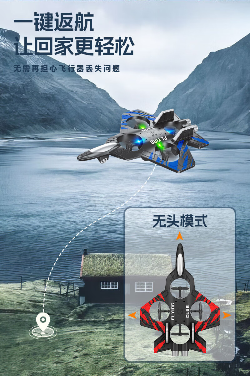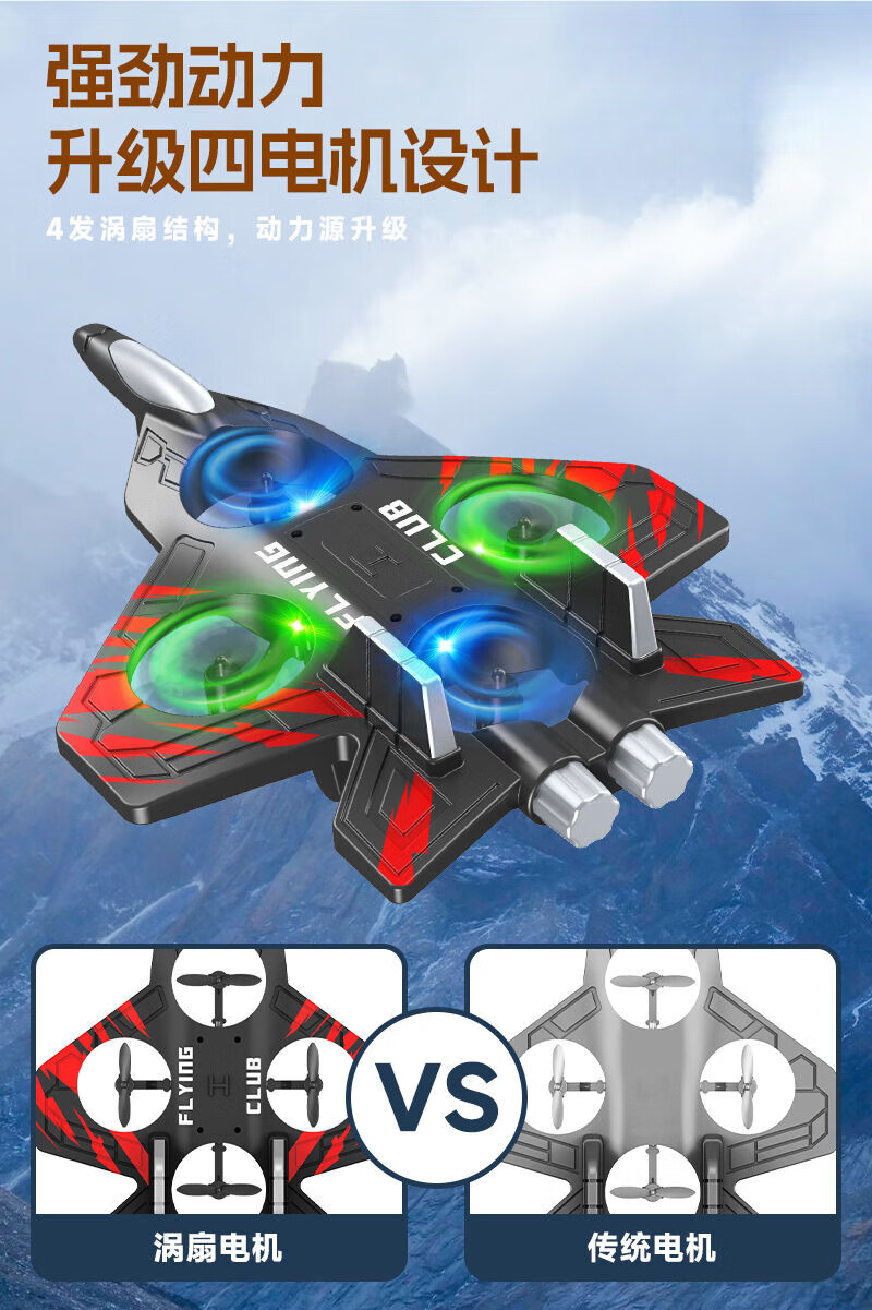Bonas 2025 New Remote Control Plane Children's Fighter Glider Four-Axis Drone Small Boy Model Toy Blue Single Battery + Free Remote Control Battery + Exquisite Gift Box