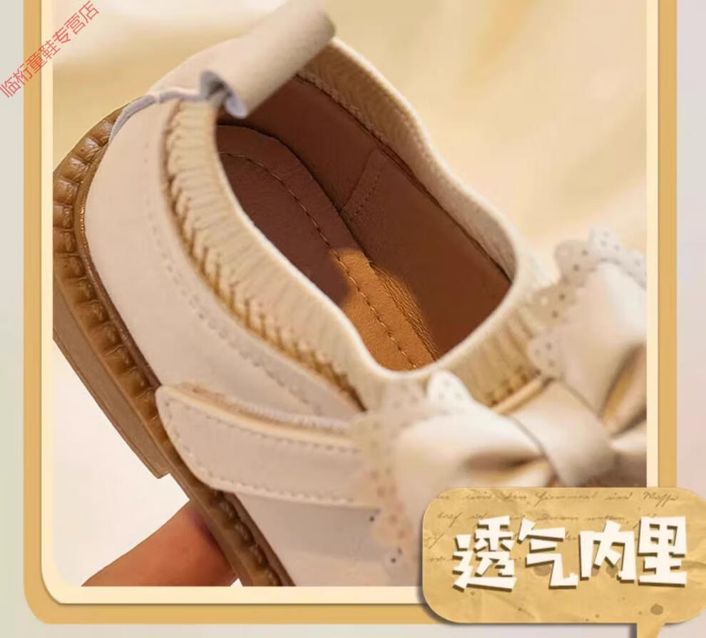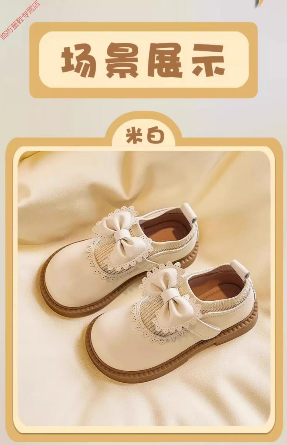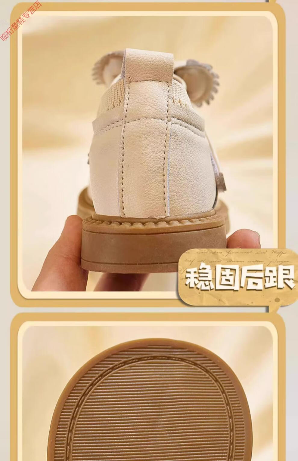 G.duck小黄鸭女童公主鞋皮鞋春秋款软底儿童小皮鞋女春季英伦风防滑单鞋 米白色 【现货秒发】 28 内长:17.2cm