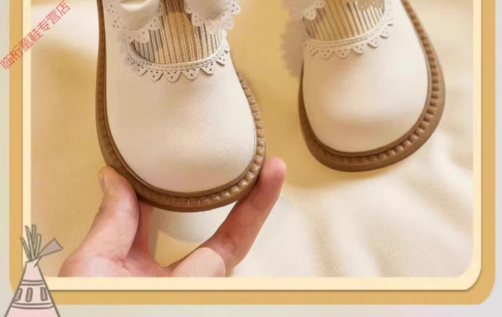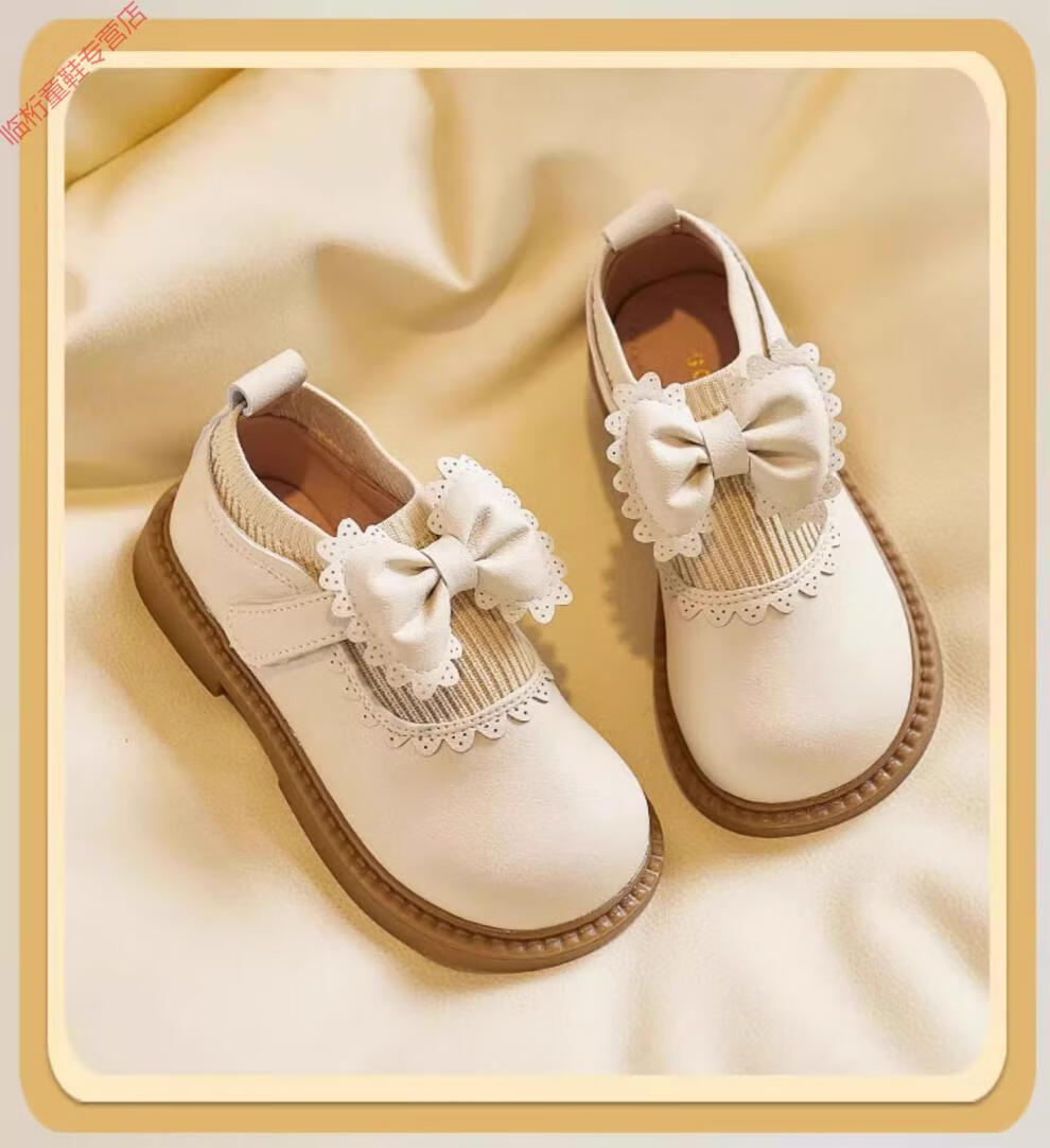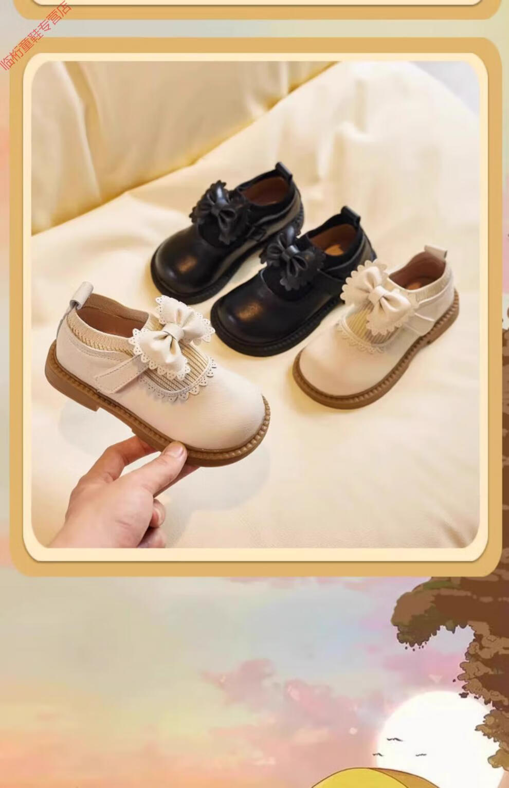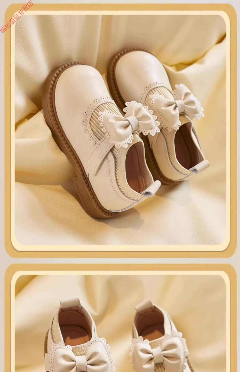 G.duck小黄鸭女童公主鞋皮鞋春秋款软底儿童小皮鞋女春季英伦风防滑单鞋 米白色 【现货秒发】 28 内长:17.2cm