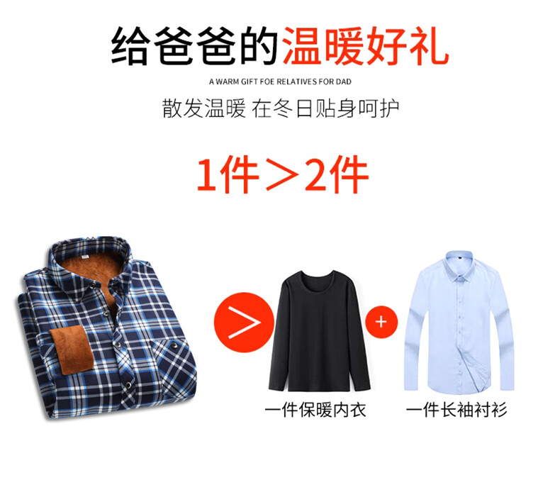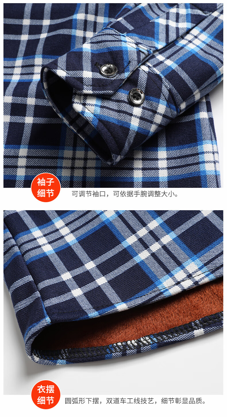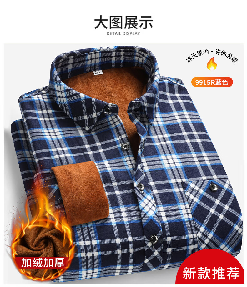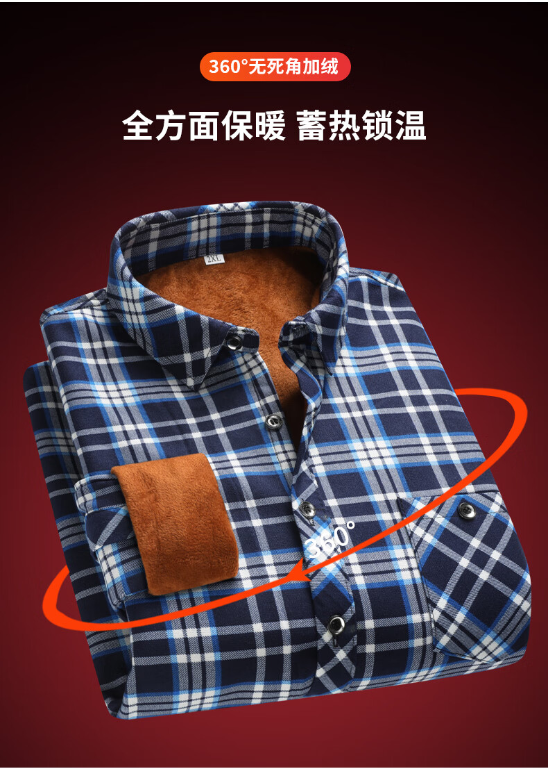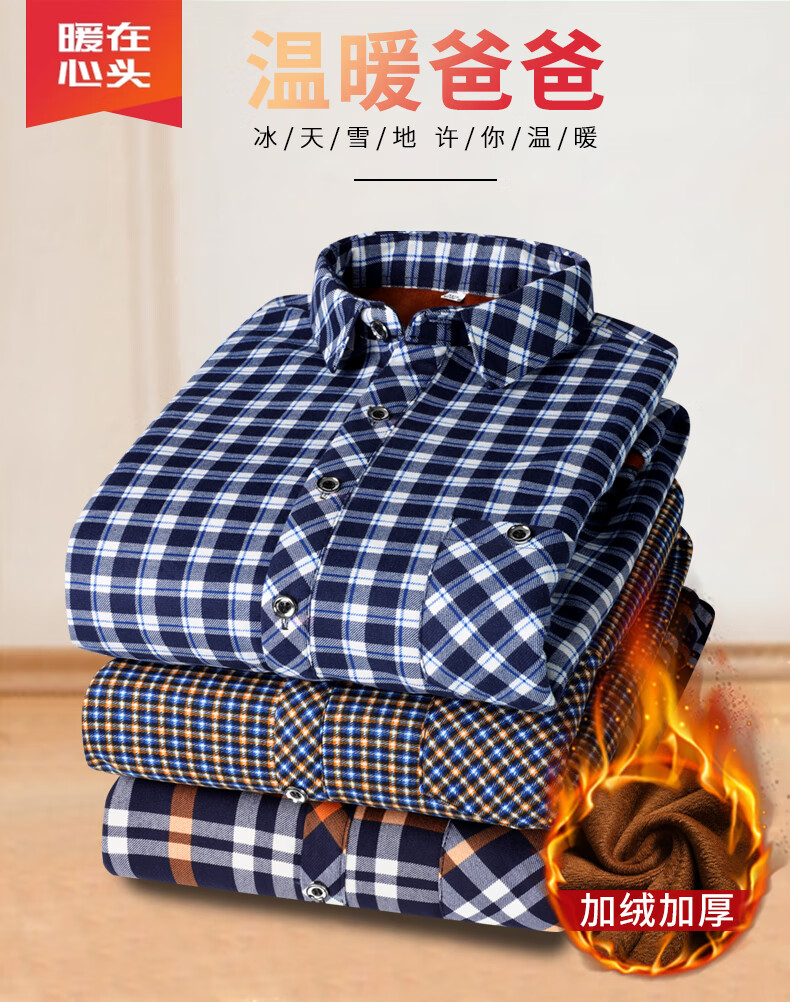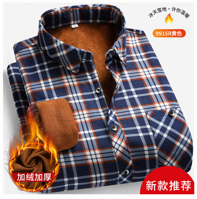 【秋冬加绒】冬季男士保暖衬衫加厚长袖中老年爸爸男装小格子衬衣 蓝色+黄色 【加绒加厚】 3XL 【建议130~140斤左右】