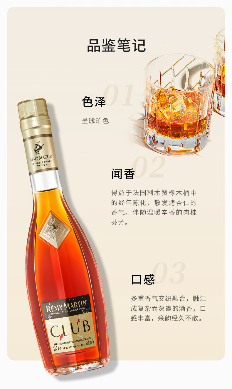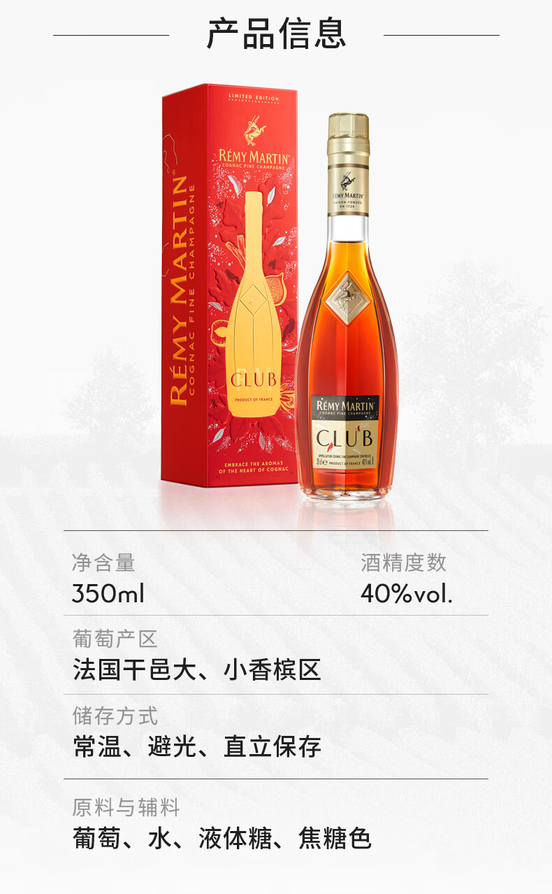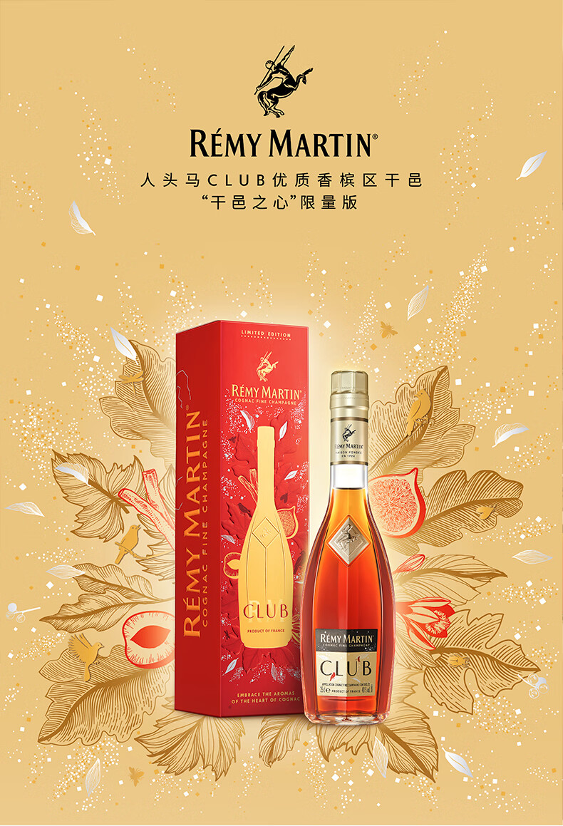 人头马(Remy Martin)优质香槟区干邑白兰地干邑之心 CLUB 350mL 1瓶