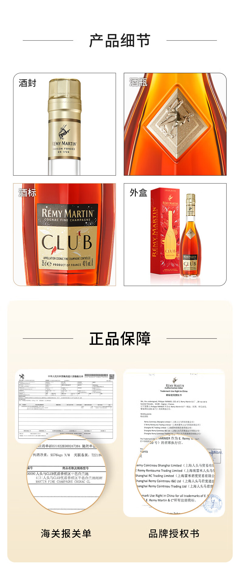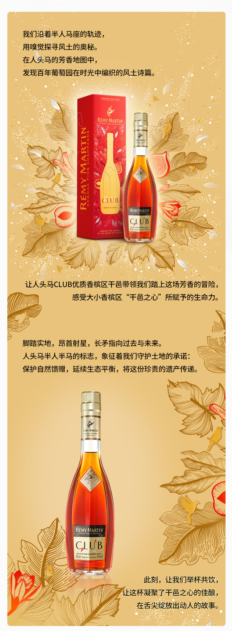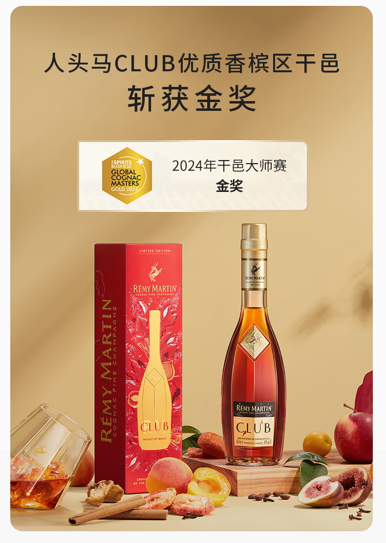 人头马(Remy Martin)优质香槟区干邑白兰地干邑之心 CLUB 350mL 1瓶