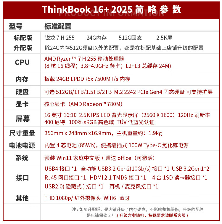 ThinkPad补贴20% 联想ThinkBook 16+ 2025小新款pro高性能游戏轻薄商务办公大学生笔记本电脑 锐龙7 H255 24G 1TB升配 Radeon 780M显卡 2.5K高清屏