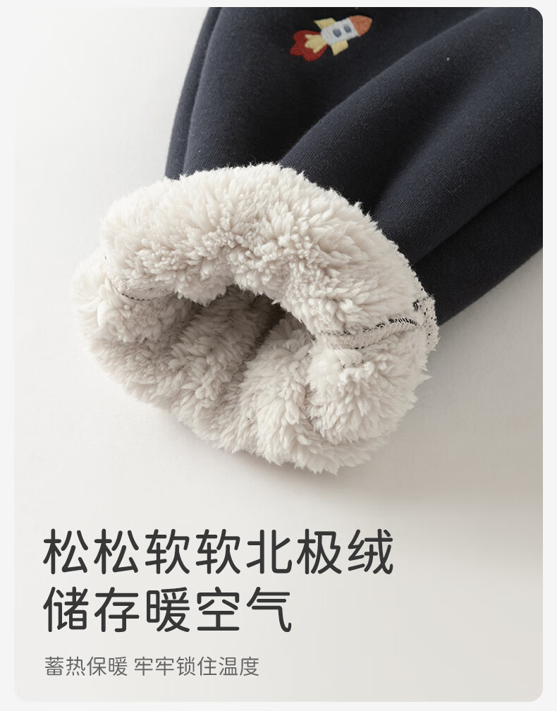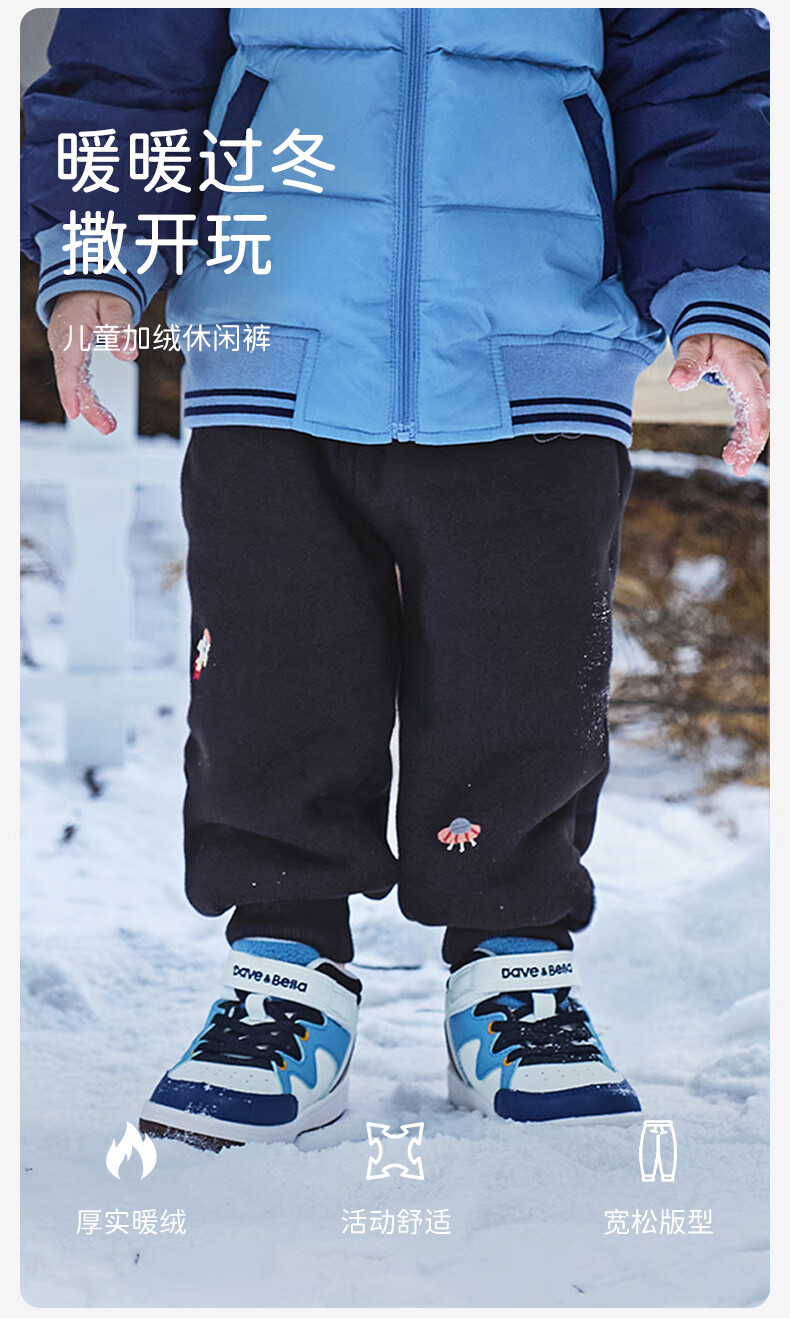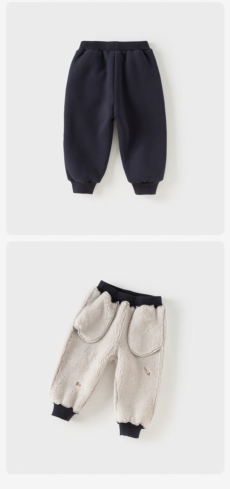 DAVE&BELLA boys' velvet pants 2025 autumn and winter new baby girl's leggings children's casual trousers children's trousers navy blue ready stock 100 cm (recommended height 90-100cm)