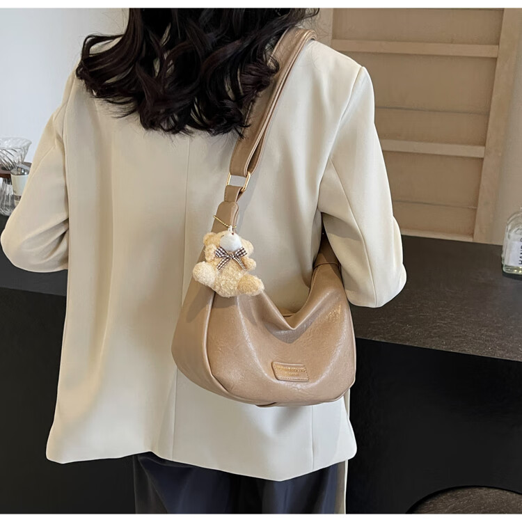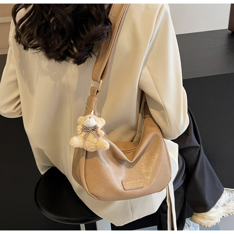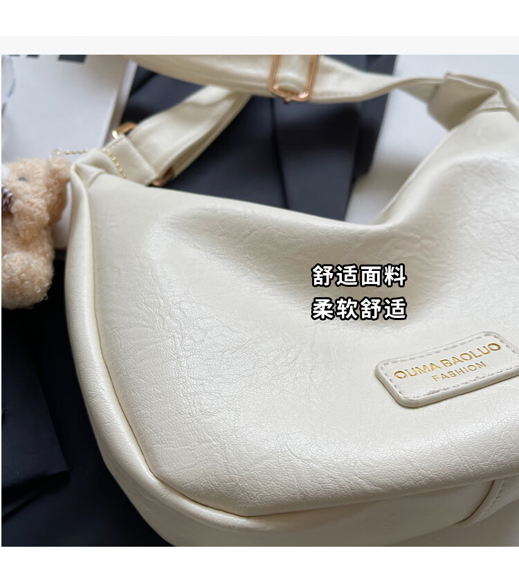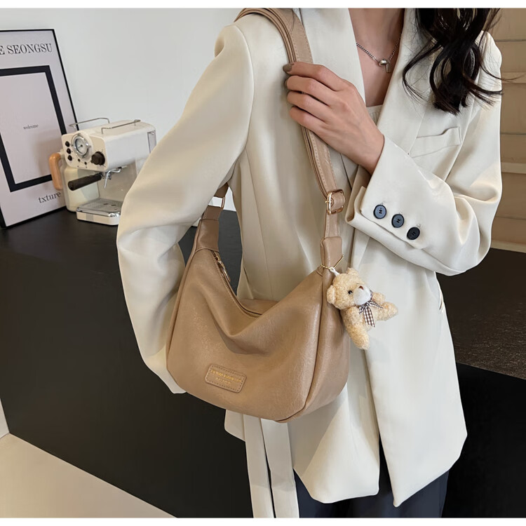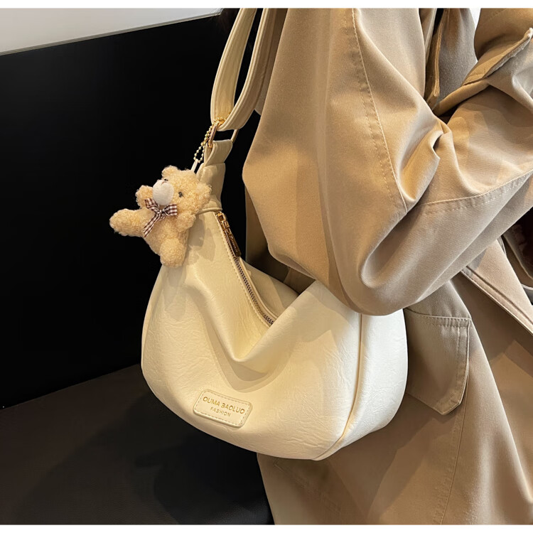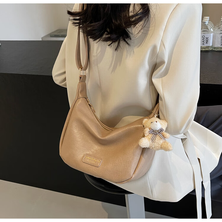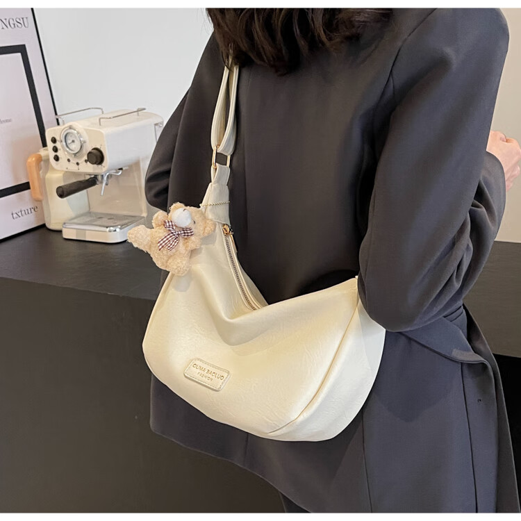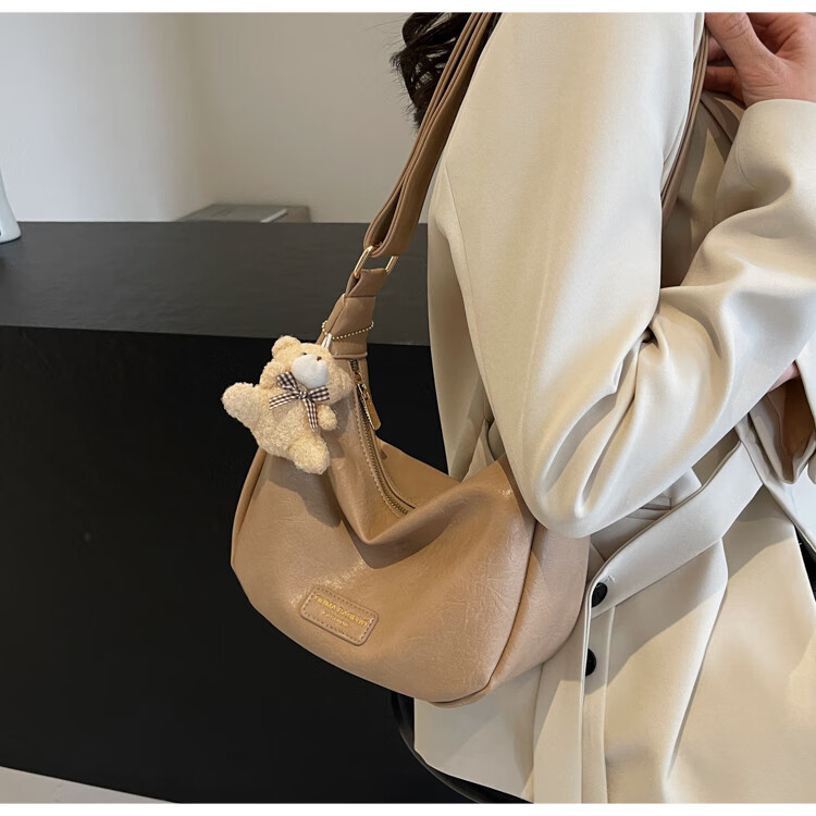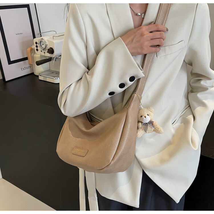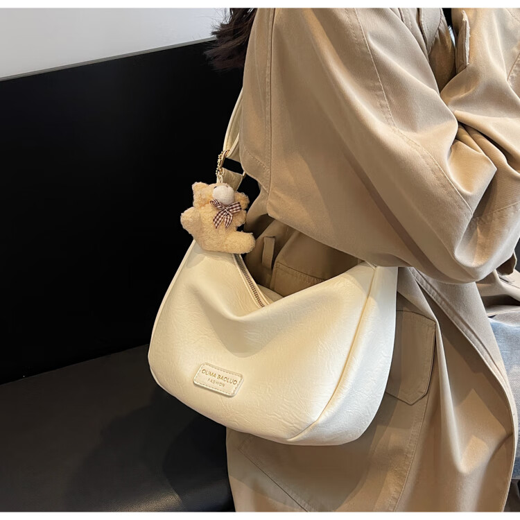 Yaying Fashion Commuting Shoulder Bag PU Soft Leather Bag Women's New Four Seasons Versatile Portable Simple Messenger Bag Korean Version Beige Pendant Log Letter Random