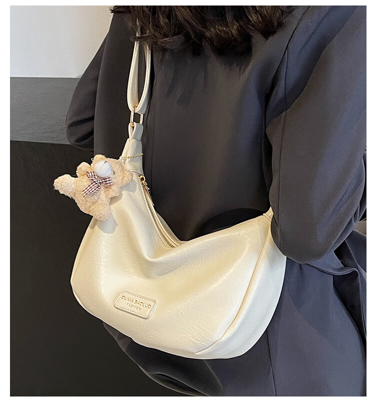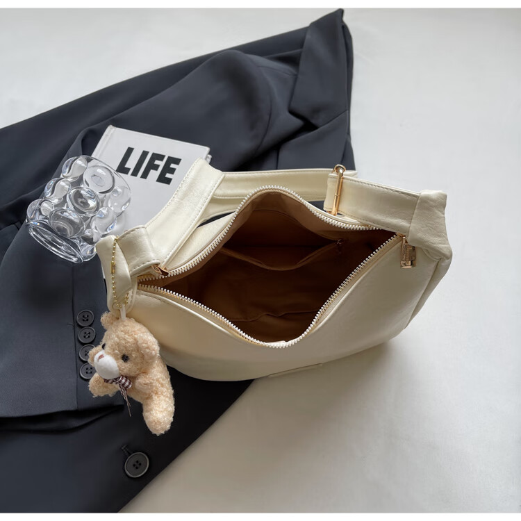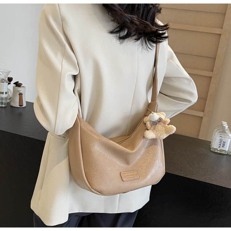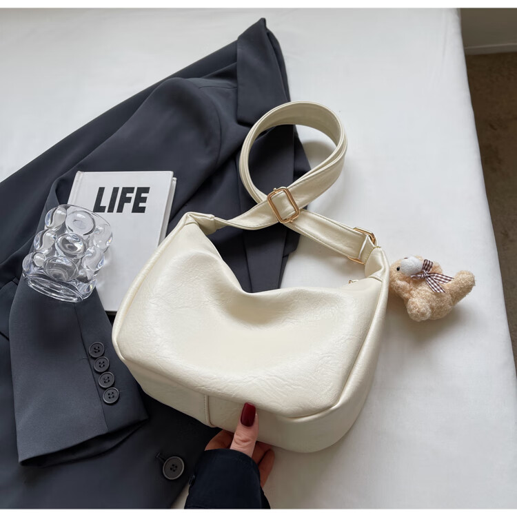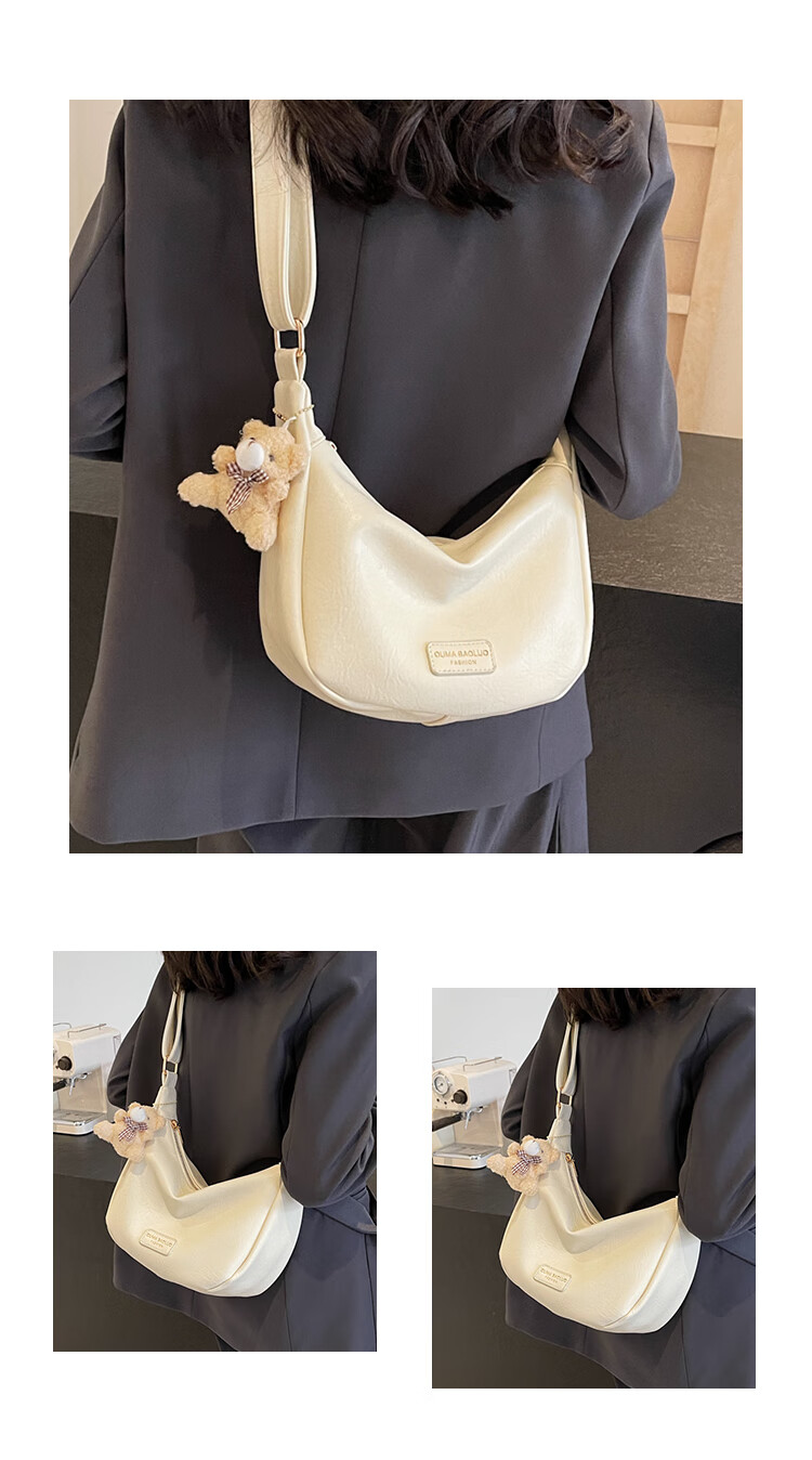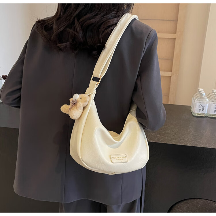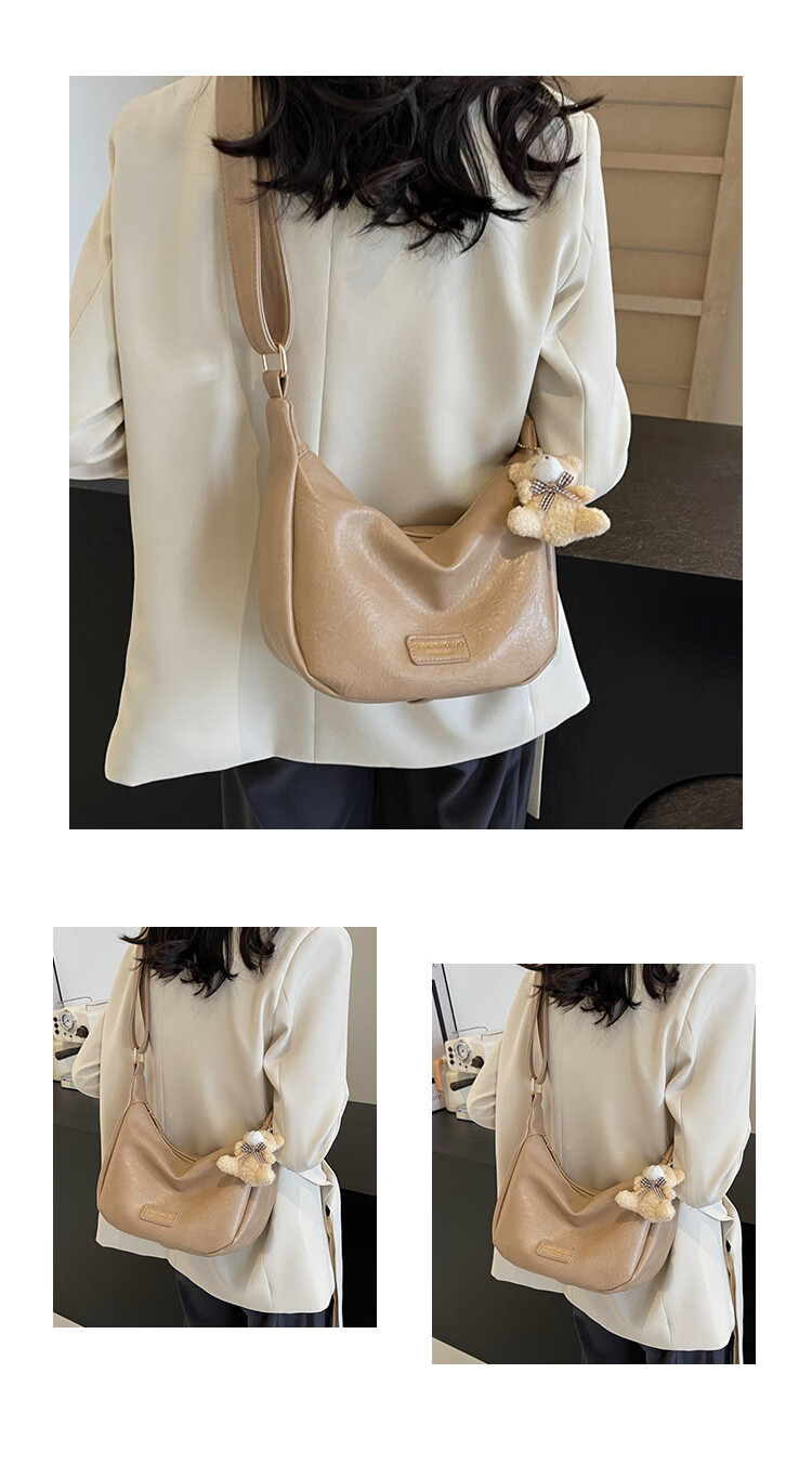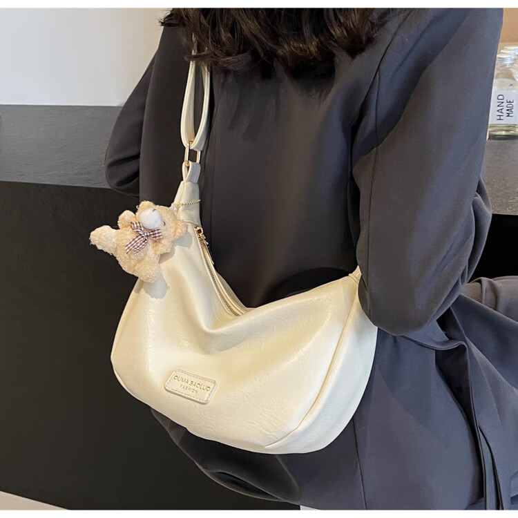 Yaying Fashion Commuting Shoulder Bag PU Soft Leather Bag Women's New Four Seasons Versatile Portable Simple Messenger Bag Korean Version Beige Pendant Log Letter Random