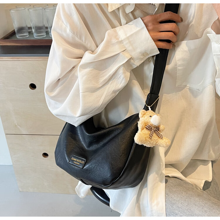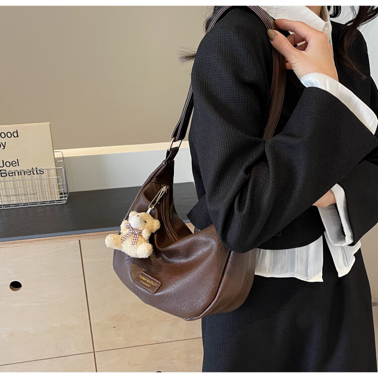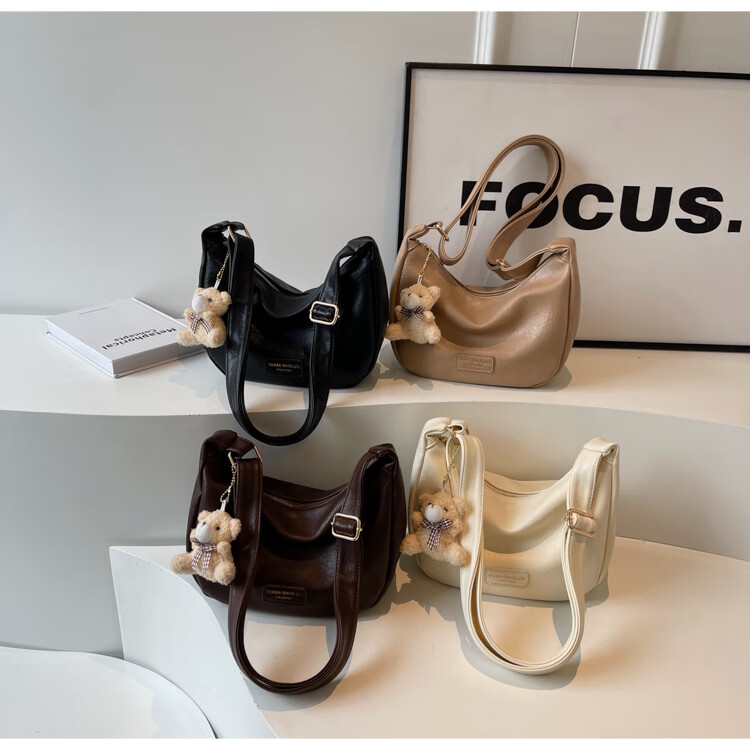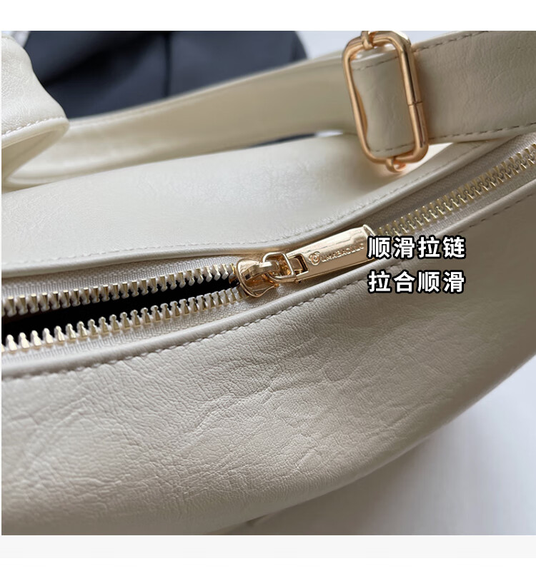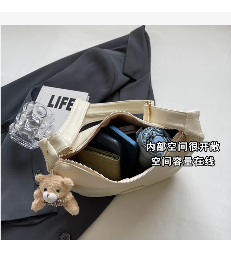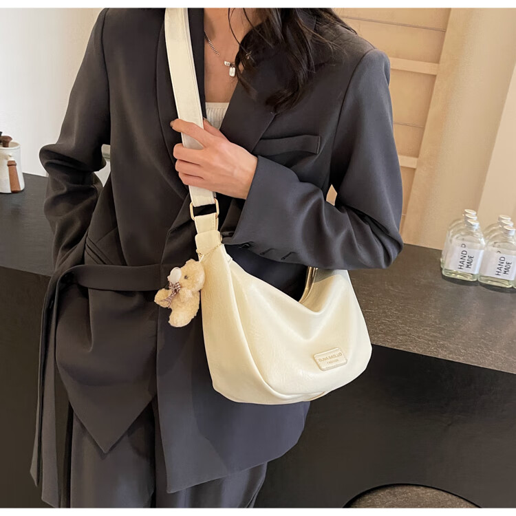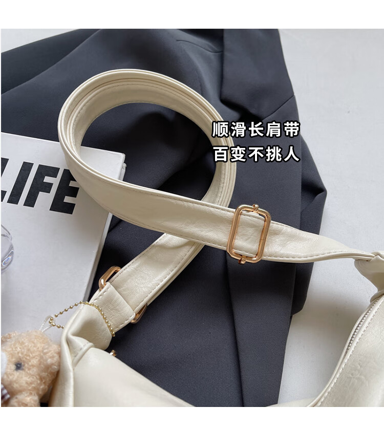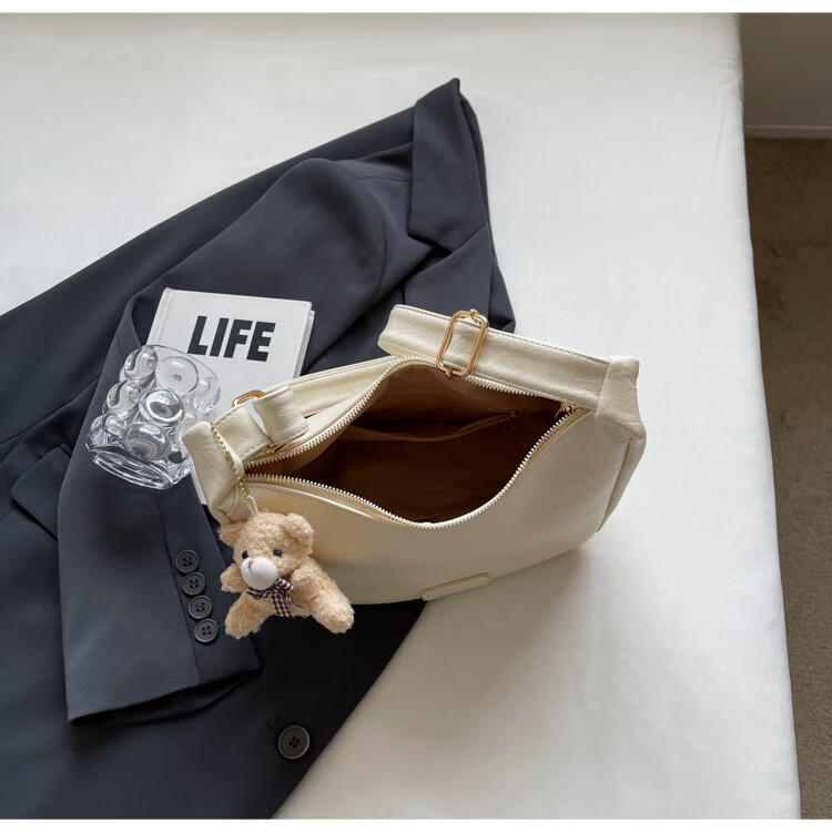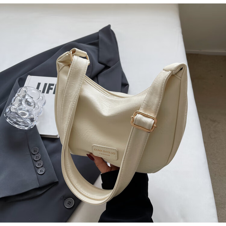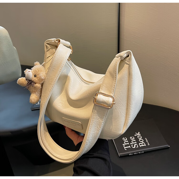 Yaying Fashion Commuting Shoulder Bag PU Soft Leather Bag Women's New Four Seasons Versatile Portable Simple Messenger Bag Korean Version Beige Pendant Log Letter Random