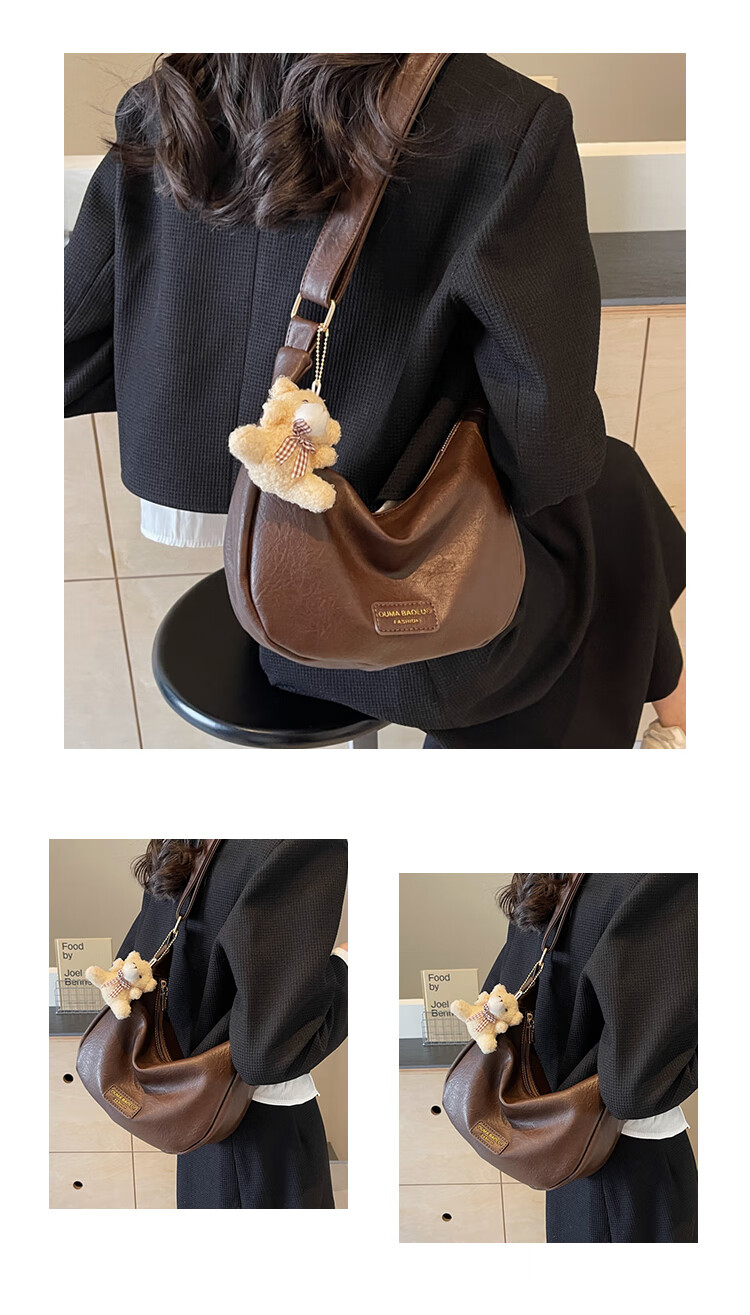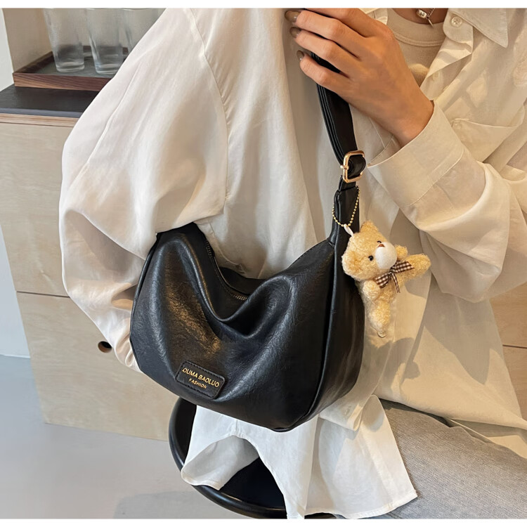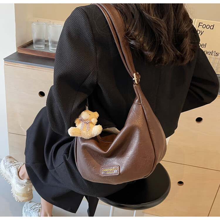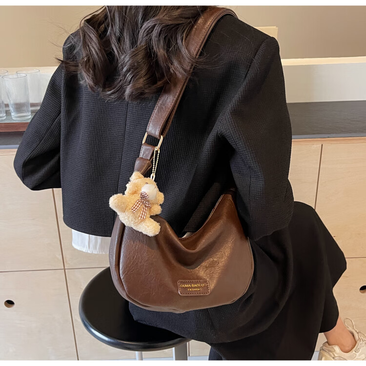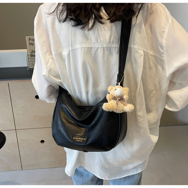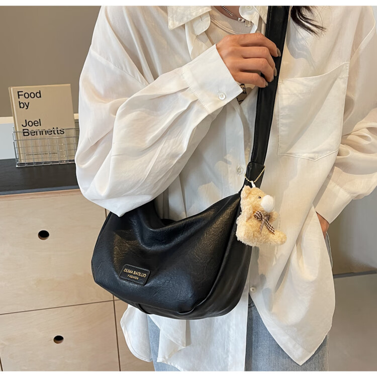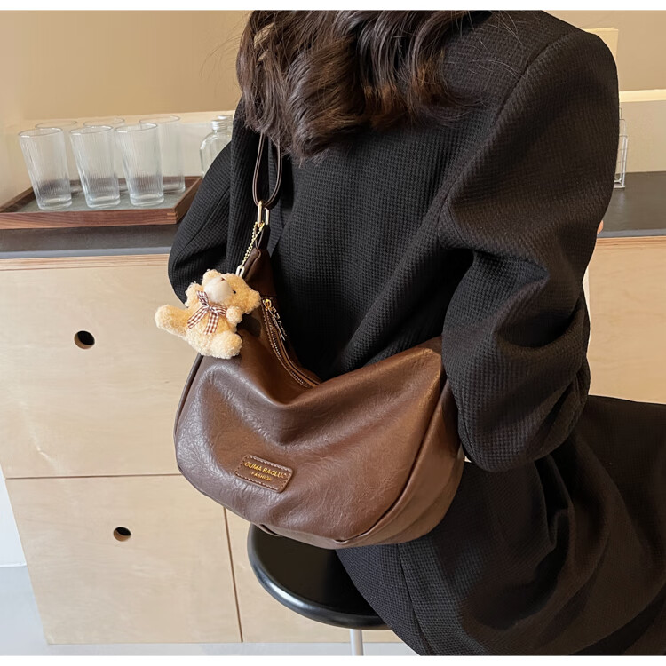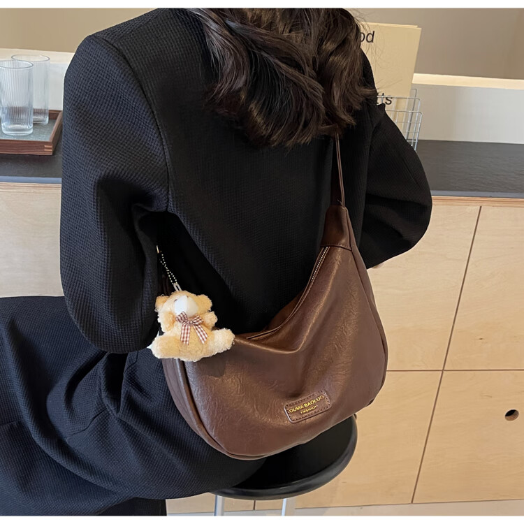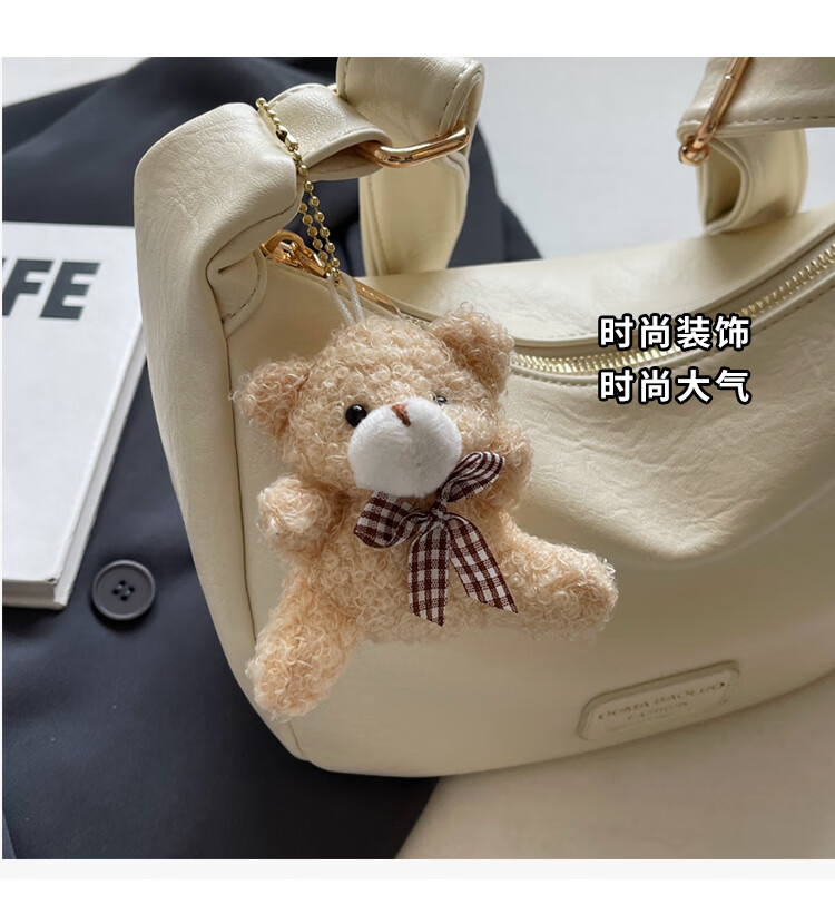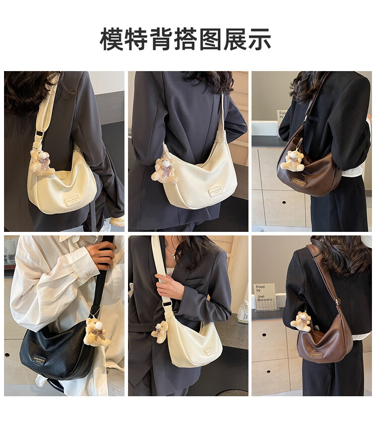 Yaying Fashion Commuting Shoulder Bag PU Soft Leather Bag Women's New Four Seasons Versatile Portable Simple Messenger Bag Korean Version Beige Pendant Log Letter Random