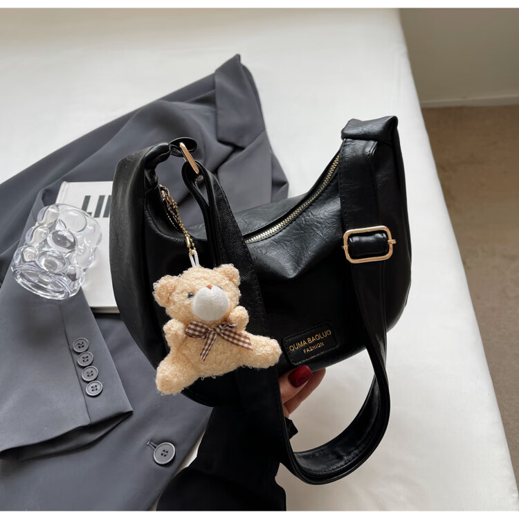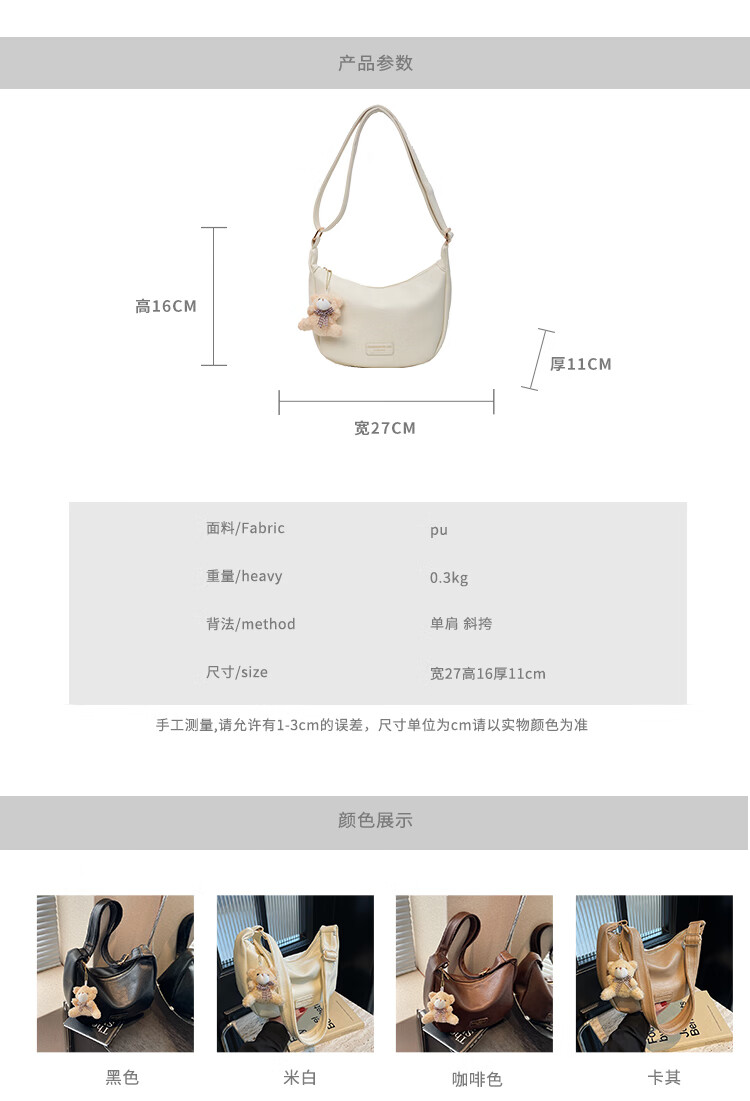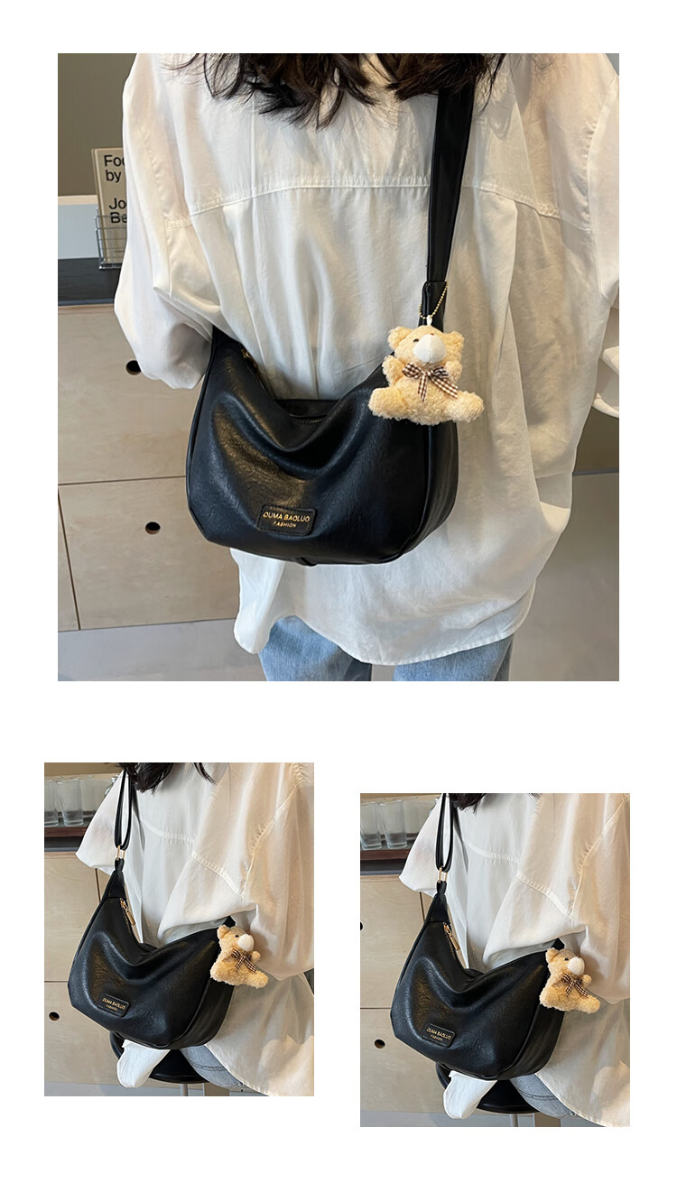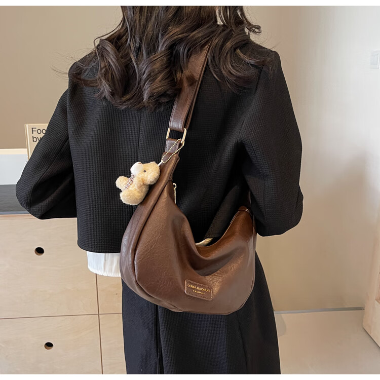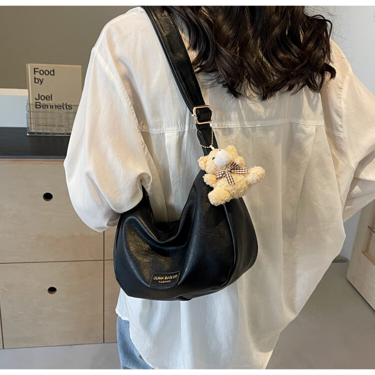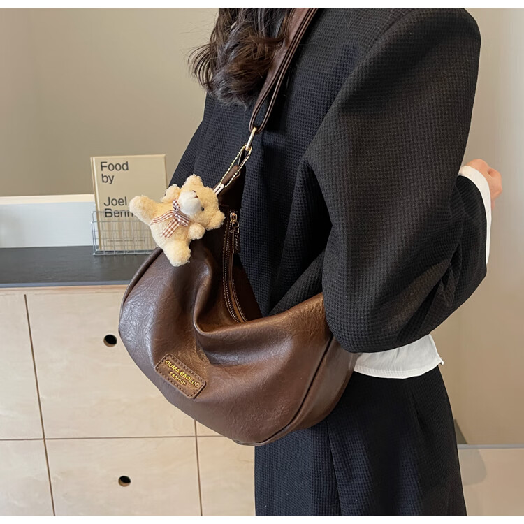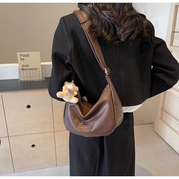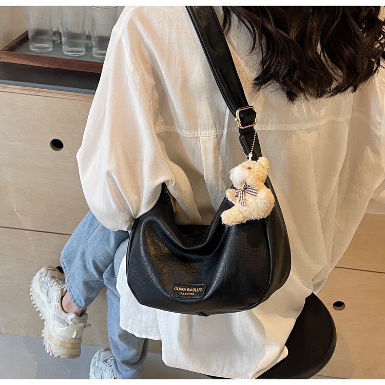Yaying Fashion Commuting Shoulder Bag PU Soft Leather Bag Women's New Four Seasons Versatile Portable Simple Messenger Bag Korean Version Beige Pendant Log Letter Random