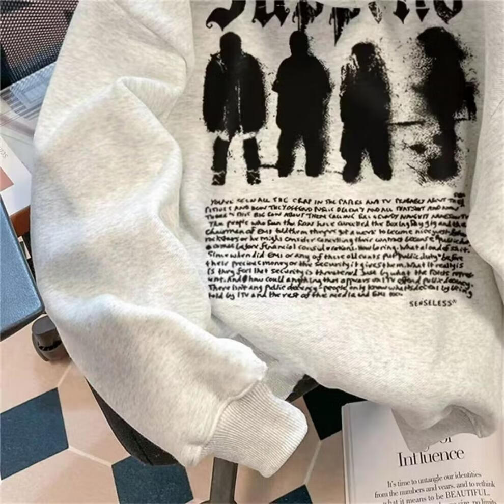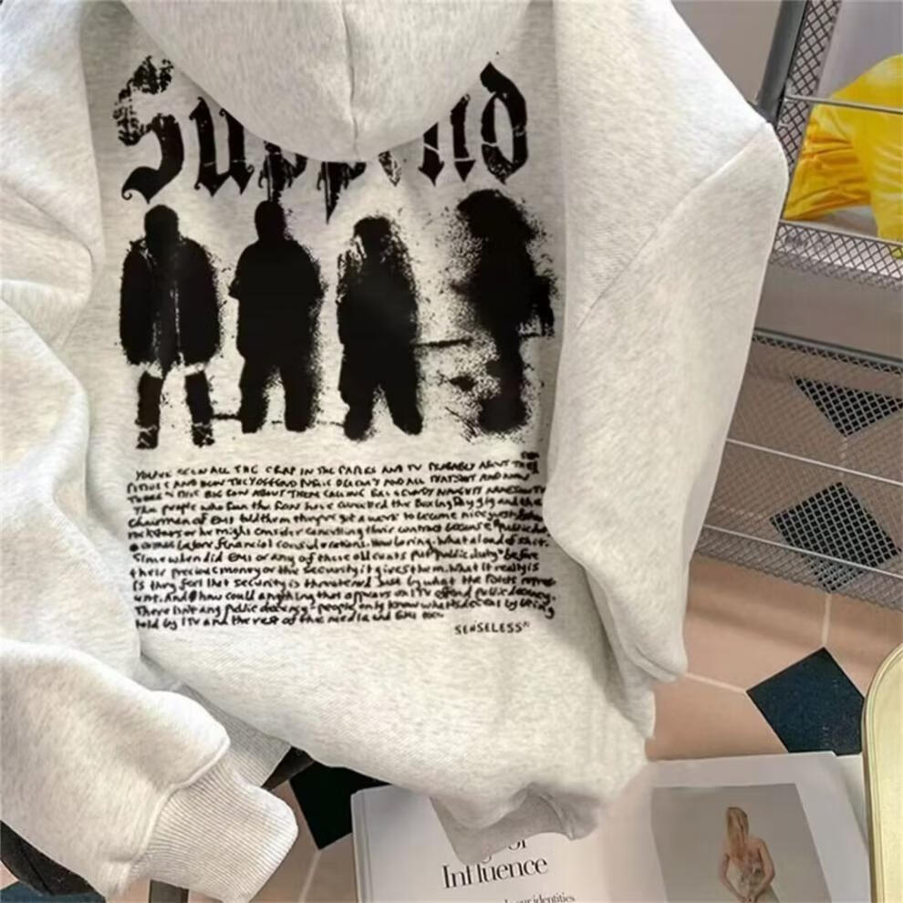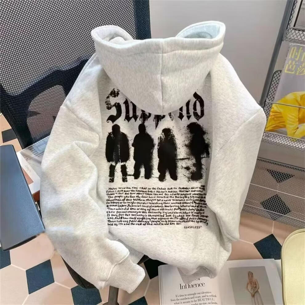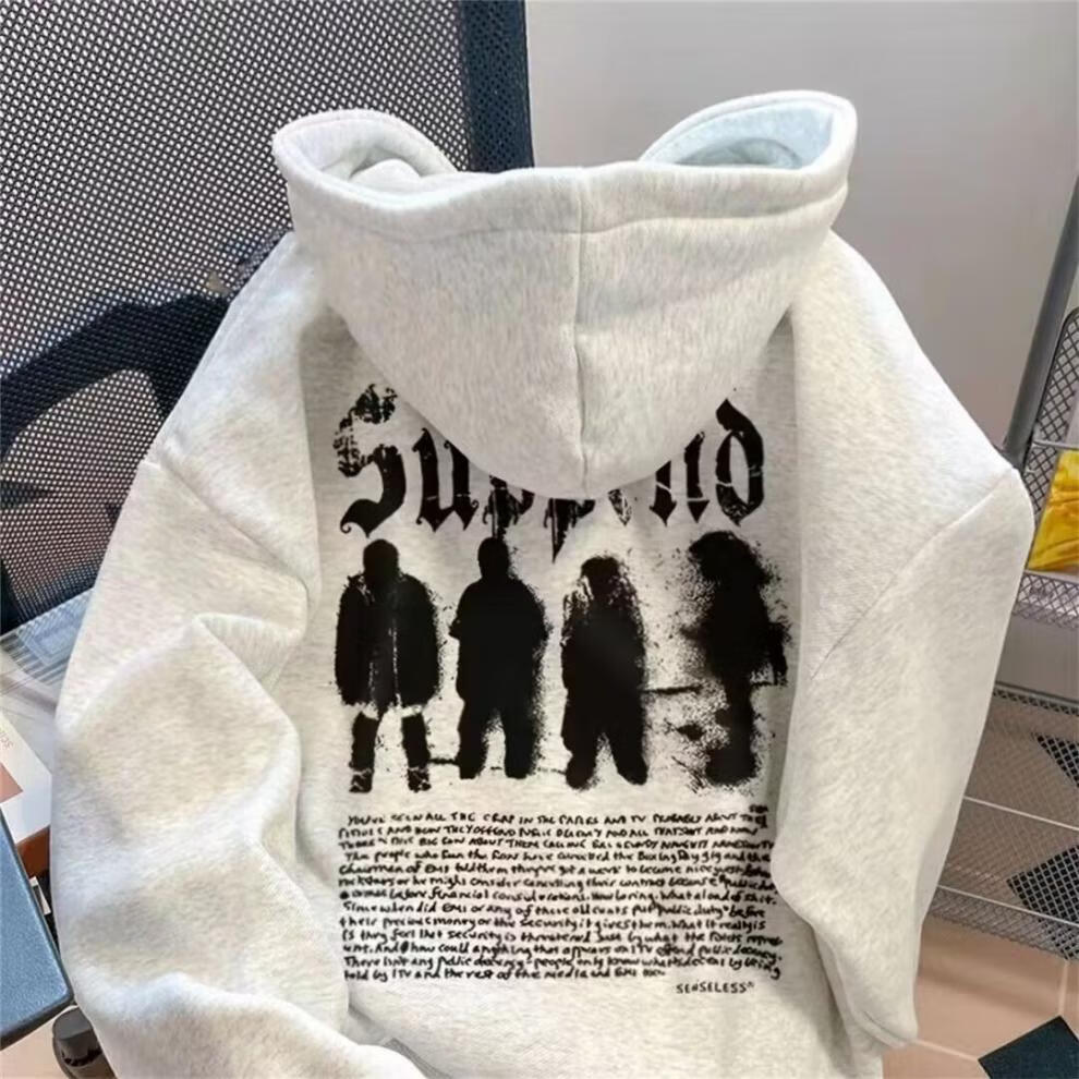 美式纯棉连帽卫衣男秋冬季宽松重磅加绒加厚秋冬oversize外套潮牌 灰色3201加绒 XL 120-140斤