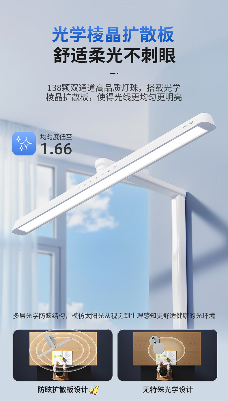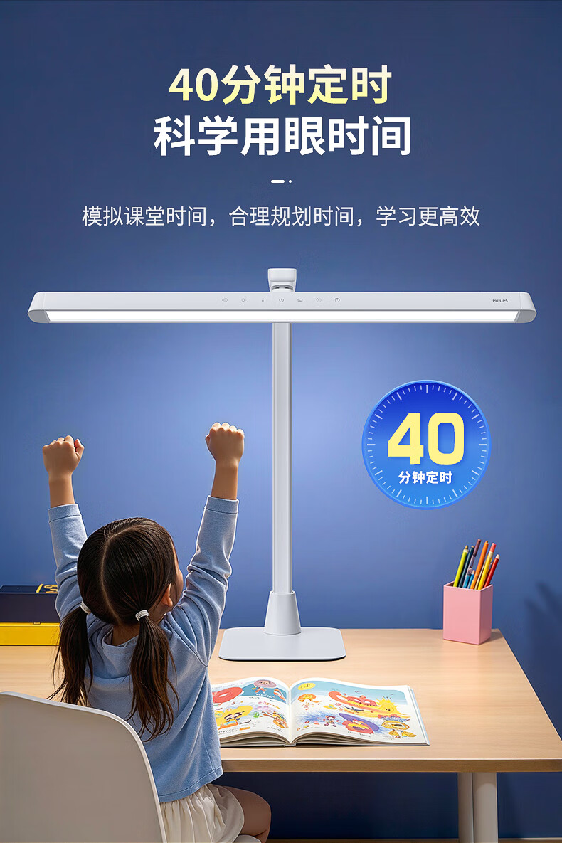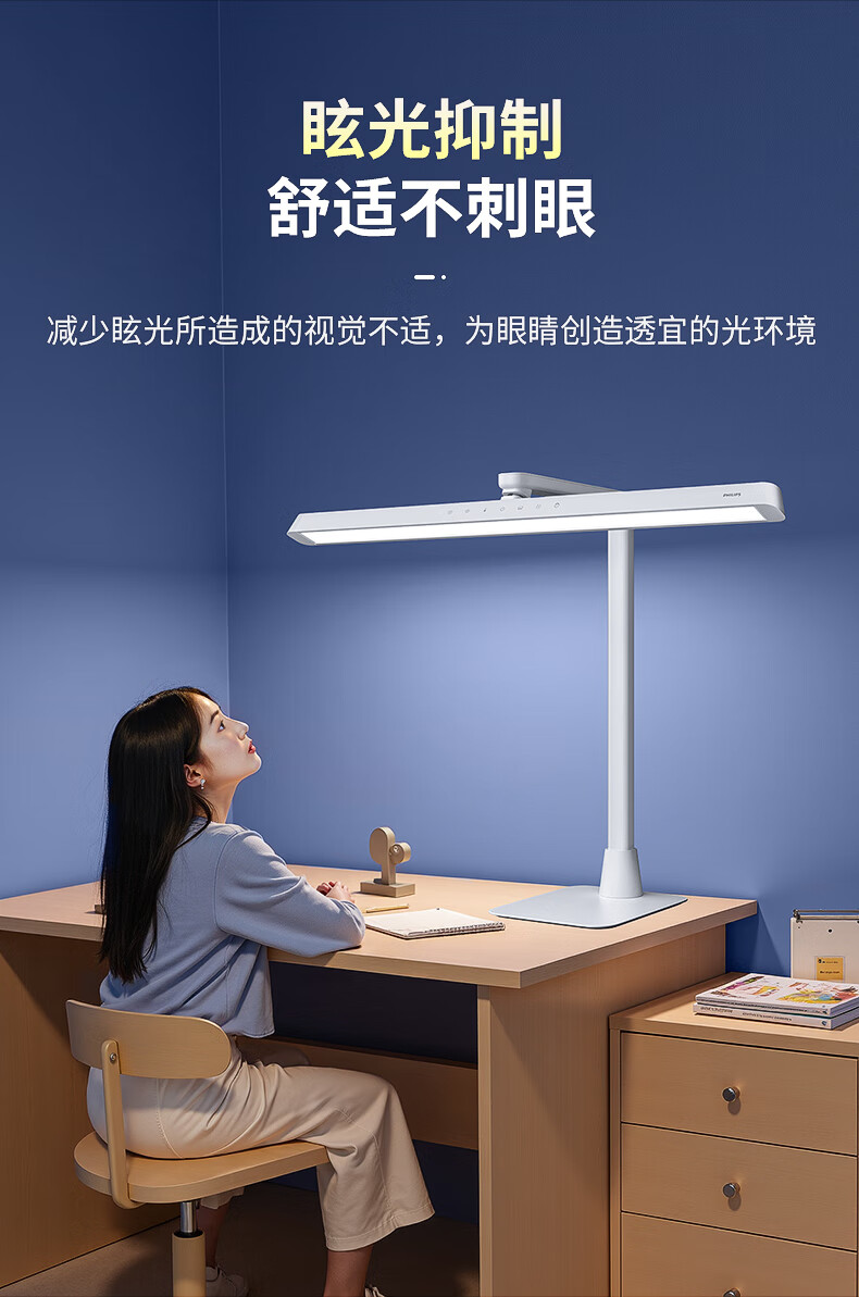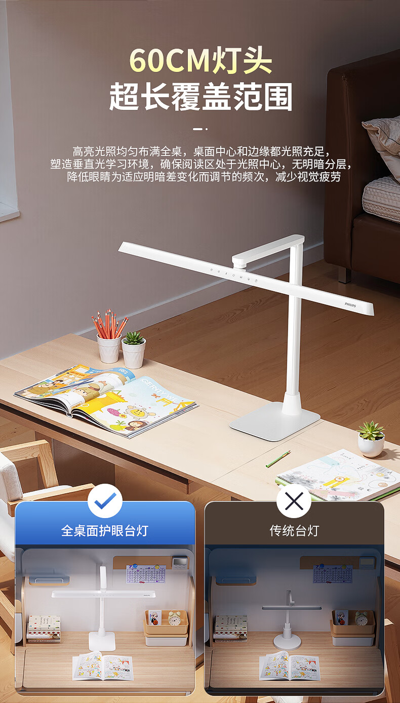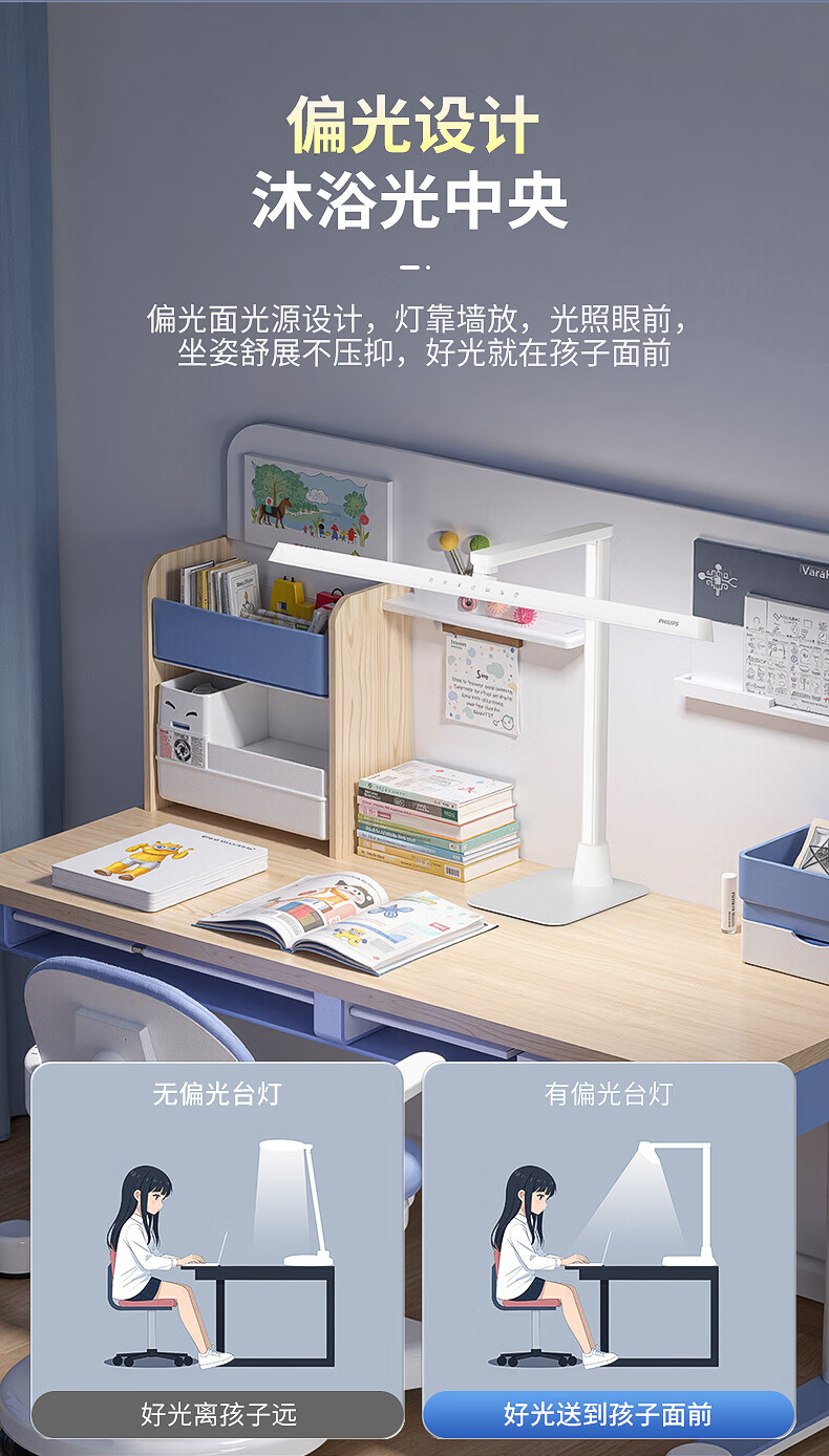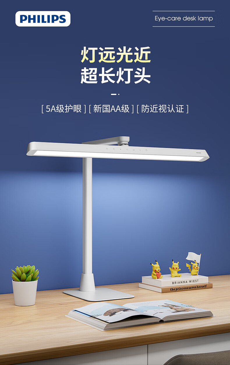 飞利浦护眼台灯 5A级学生儿童学习专用led阅读灯 全光谱高显色床头灯 【近视防控认证】 5A级护眼认证
