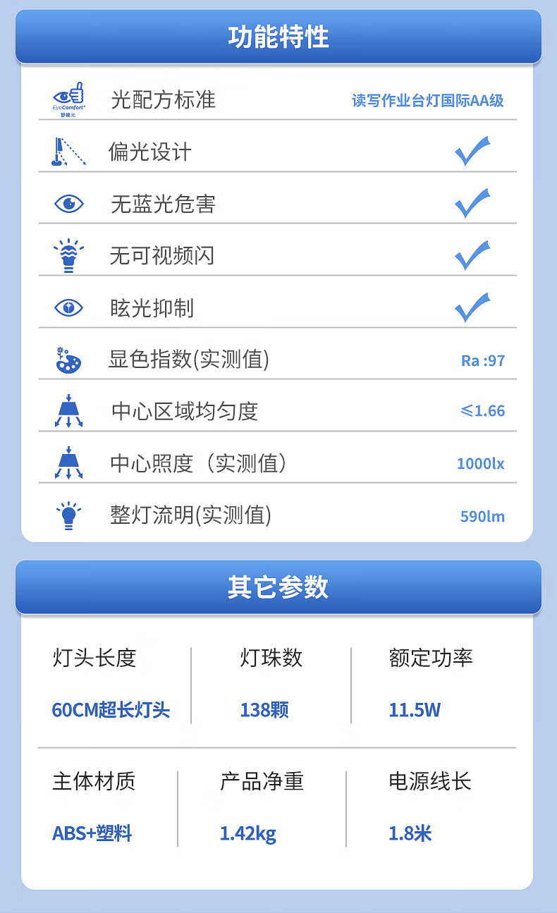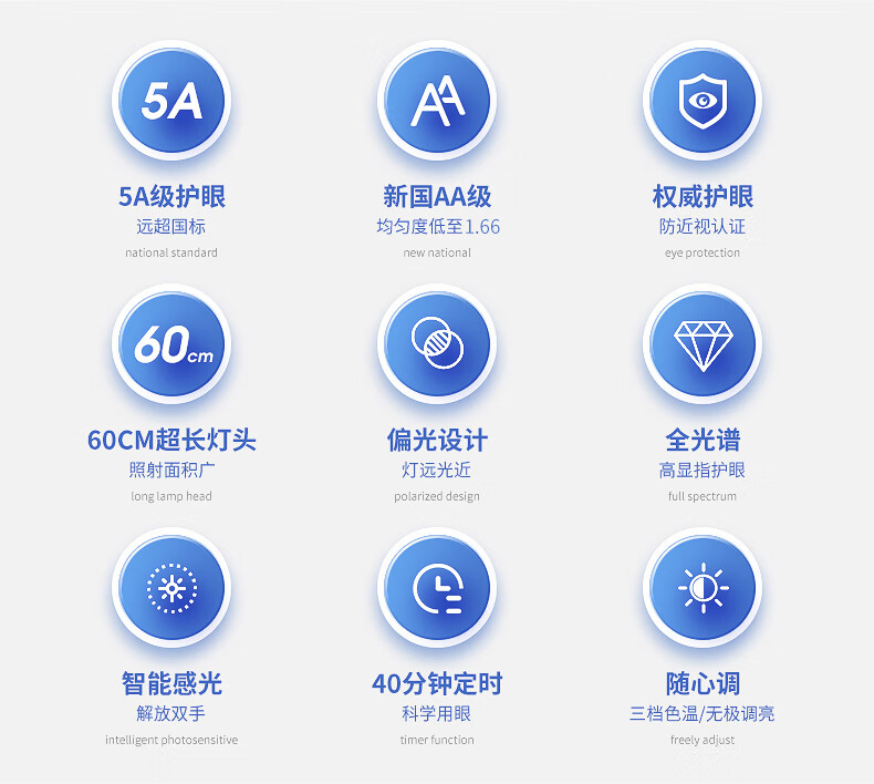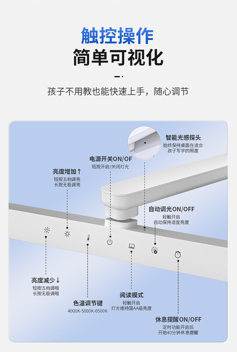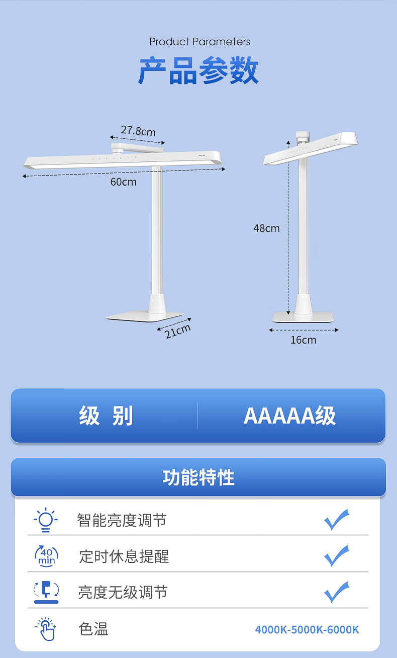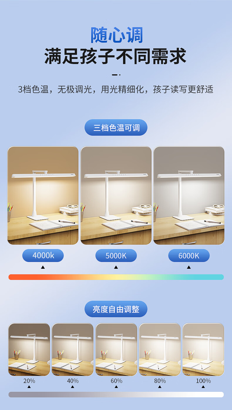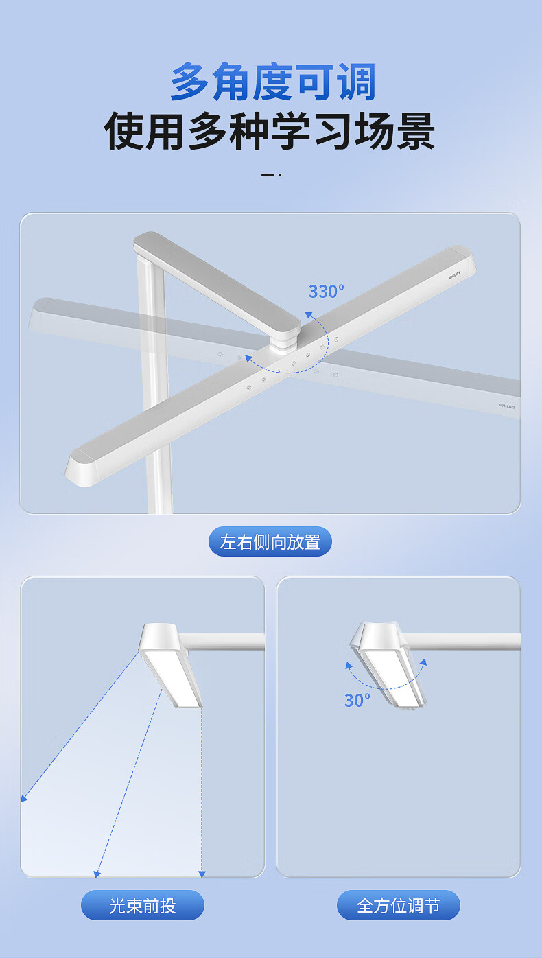 飞利浦护眼台灯 5A级学生儿童学习专用led阅读灯 全光谱高显色床头灯 【近视防控认证】 5A级护眼认证