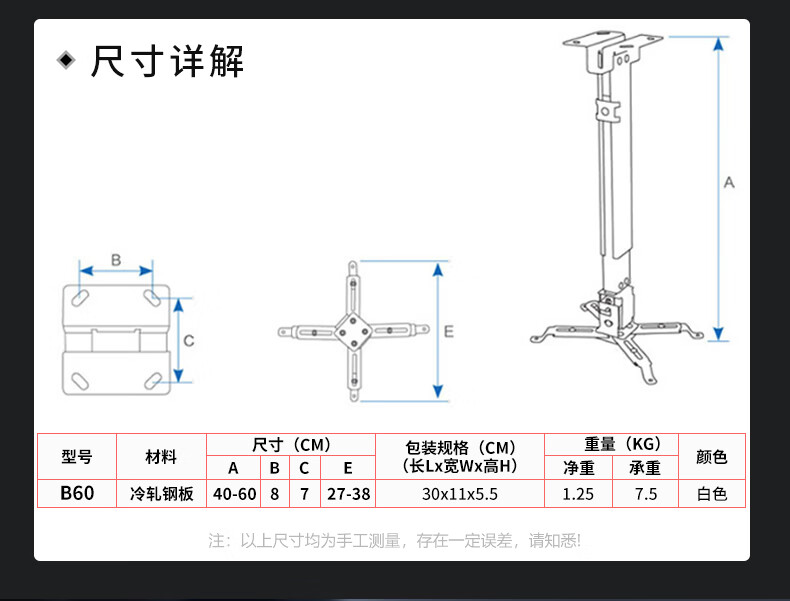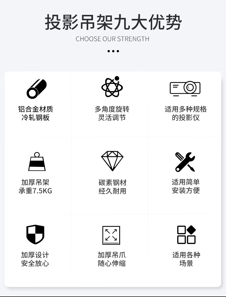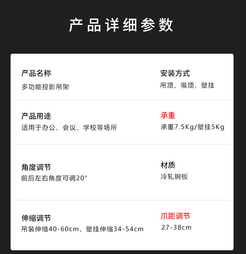 轰天炮投影仪吊架吸顶投影支架家用床头吊装可调节伸缩微型壁挂四爪架办公多功能 投影仪四爪吊架