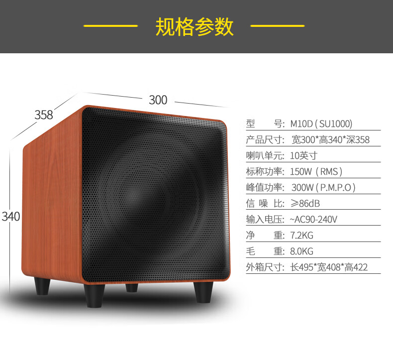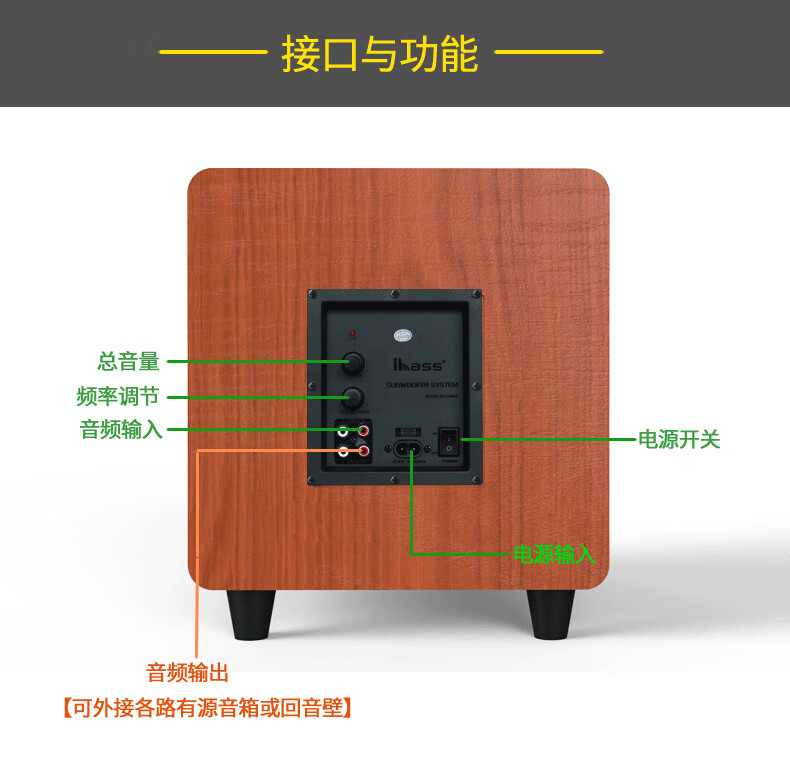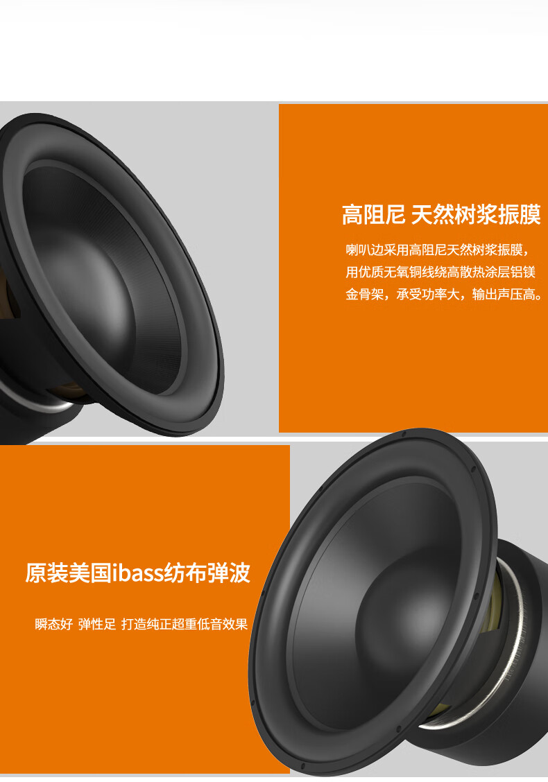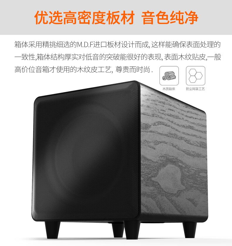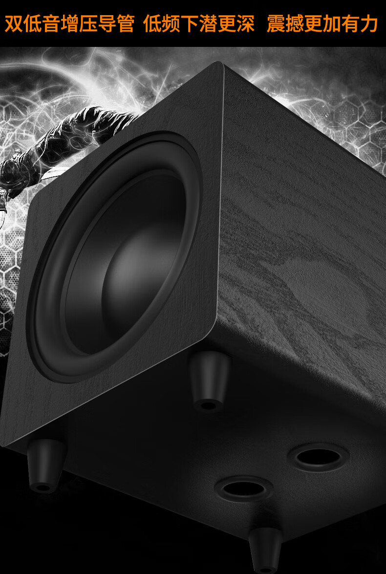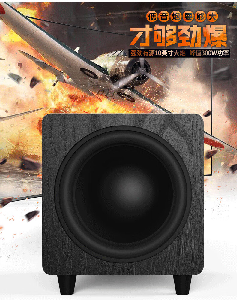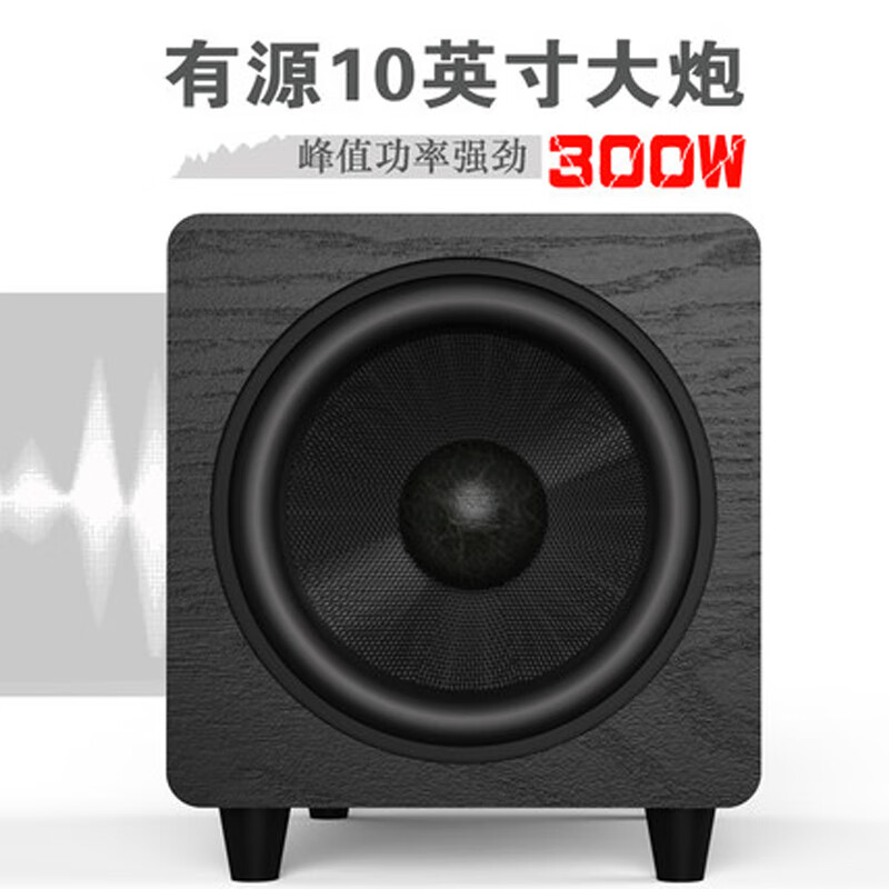 KUIEET6.5寸10寸有源超重纯低音炮音箱重低音大功率木质音响电视客厅家用配套回音壁有源音箱功放低音炮 黑木色6.5寸有源 100W