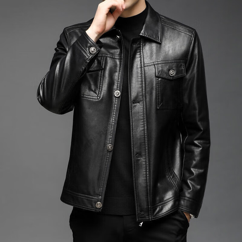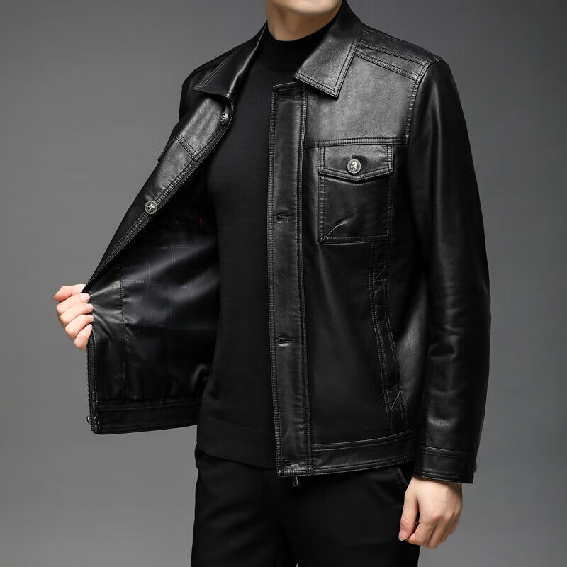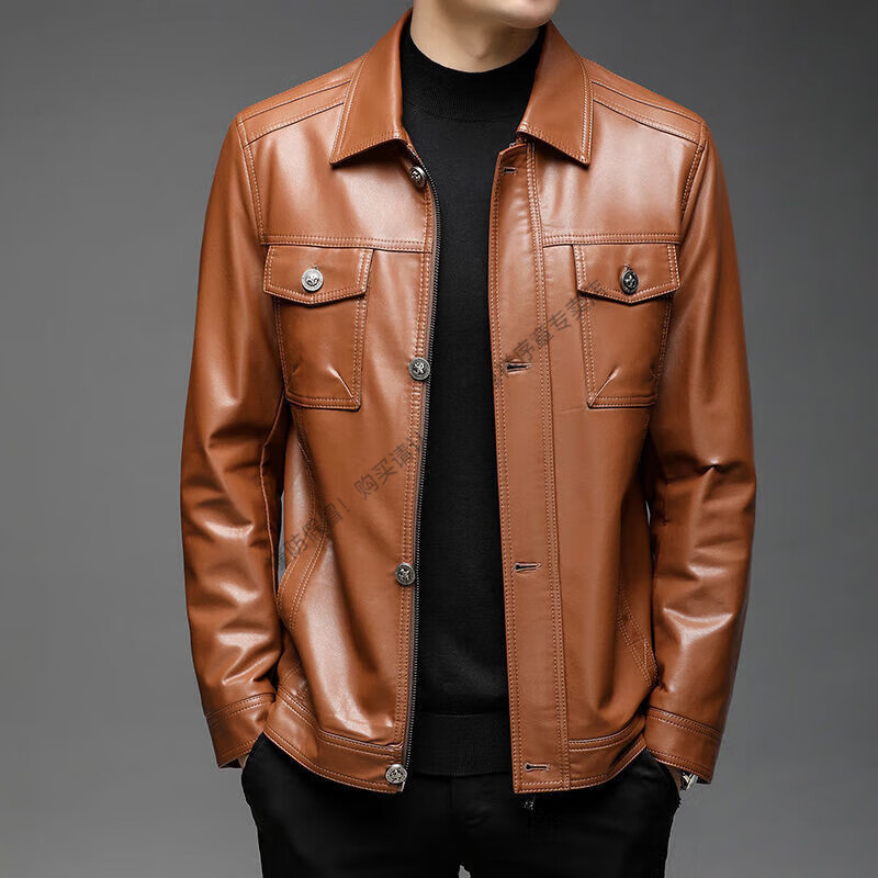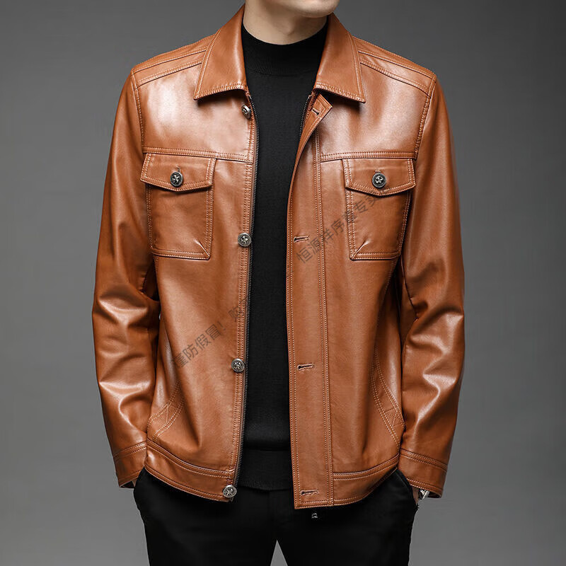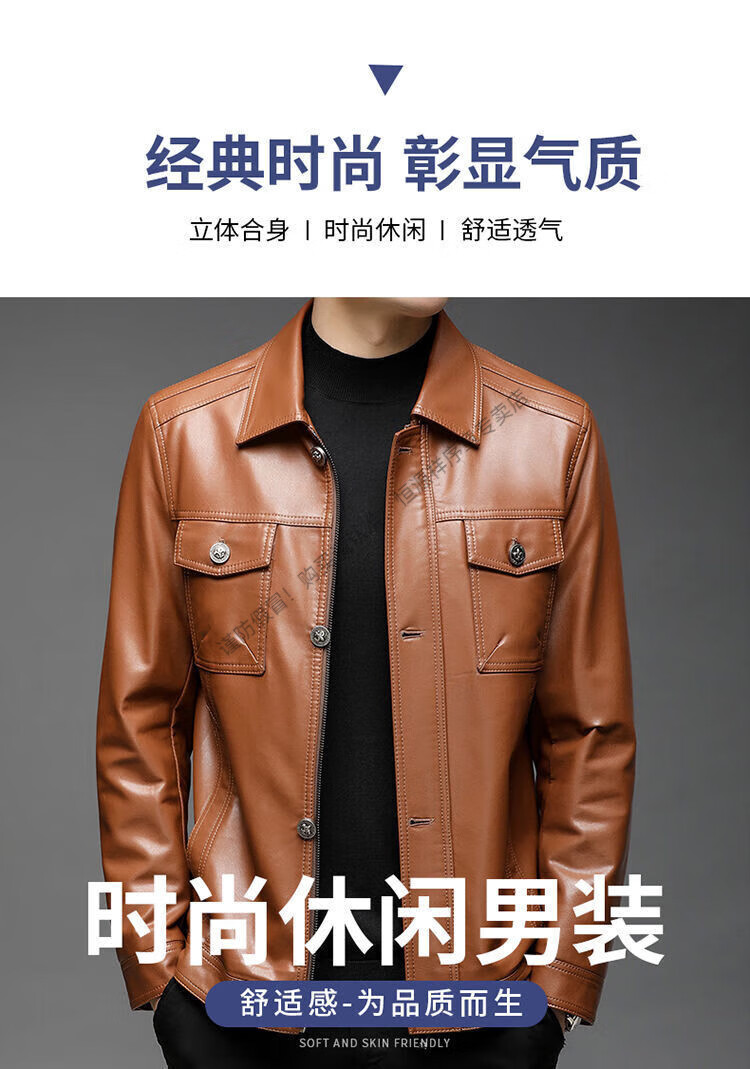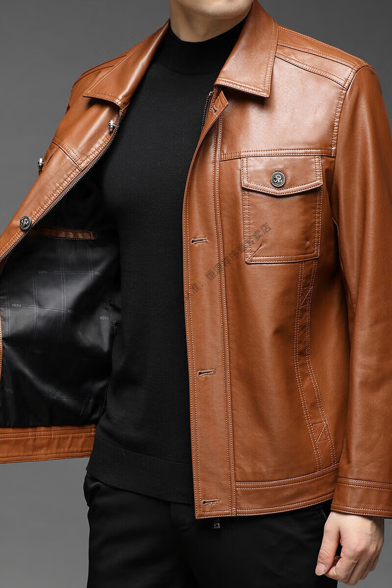 Hengyuanxiang high-end Haining sheepskin leather jacket men's leather casual lapel special clearance slimming genuine leather jacket plus velvet black autumn and winter style high-end quality men's clothing thickened XL recommended 140-155 Jin Jin equals 0.5 kg