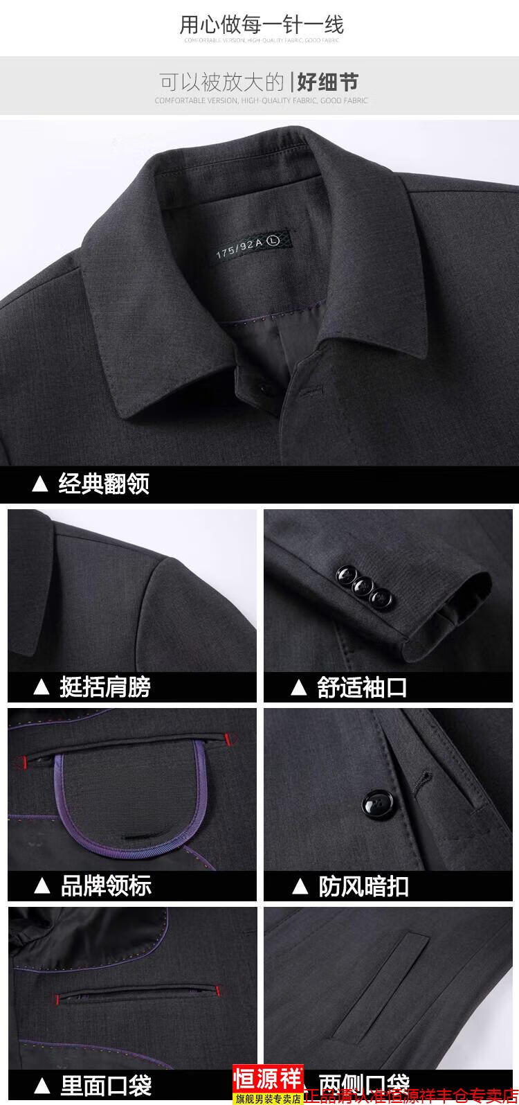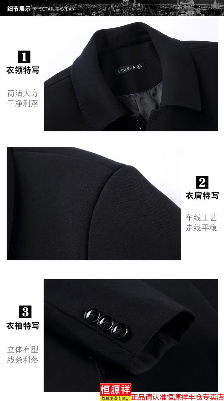Hengyuanxiang мужская ветровка весной и осенью средней длины, высококачественное шерстяное пальто для среднего и пожилого возраста, повседневное пальто с лацканами, новый стиль, темно-синий, средней длины. Стиль М 170/88А