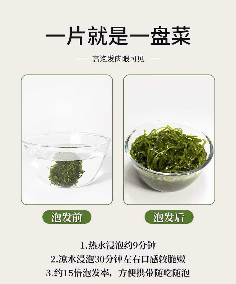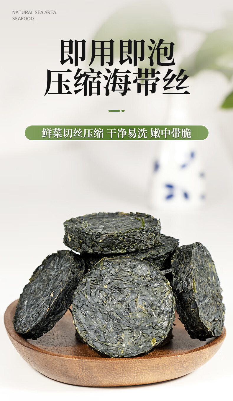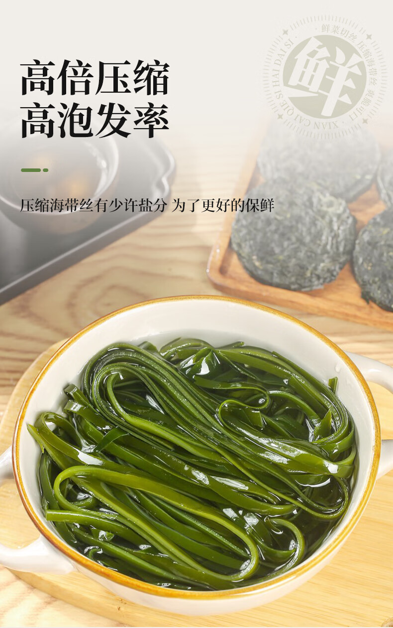 鲸甘郎压缩海带丝干货圆饼昆布即食海洋蔬菜凉拌海带苗嫩特级下饭菜批发 压缩海带丝 尝鲜22g*5片