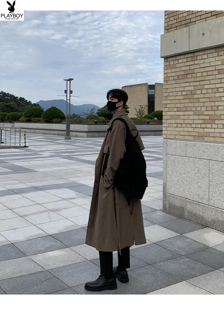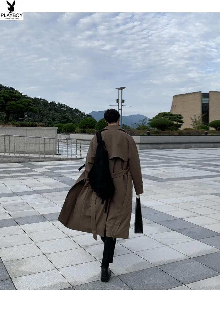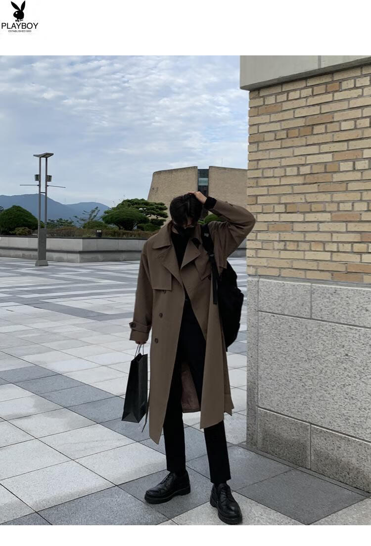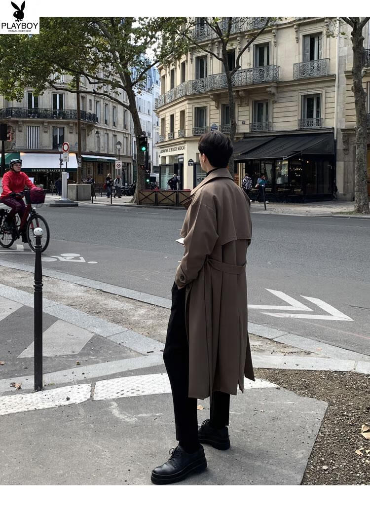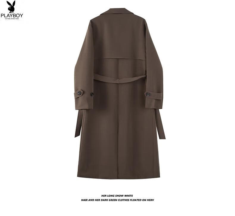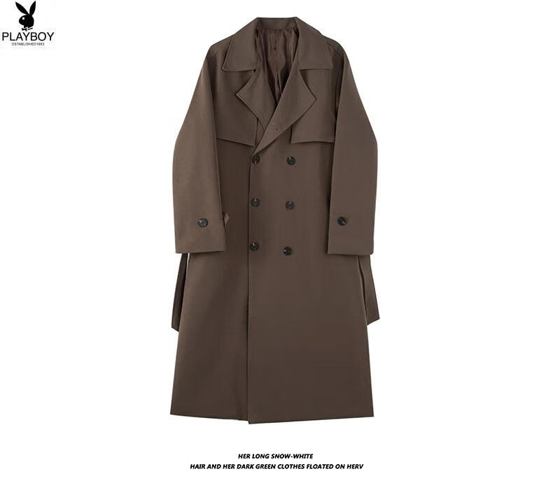 Playboy (PLAYBOY) British style windbreaker drapey mid-length coat men's spring and autumn thin coffee color Crusu coat coffee color S