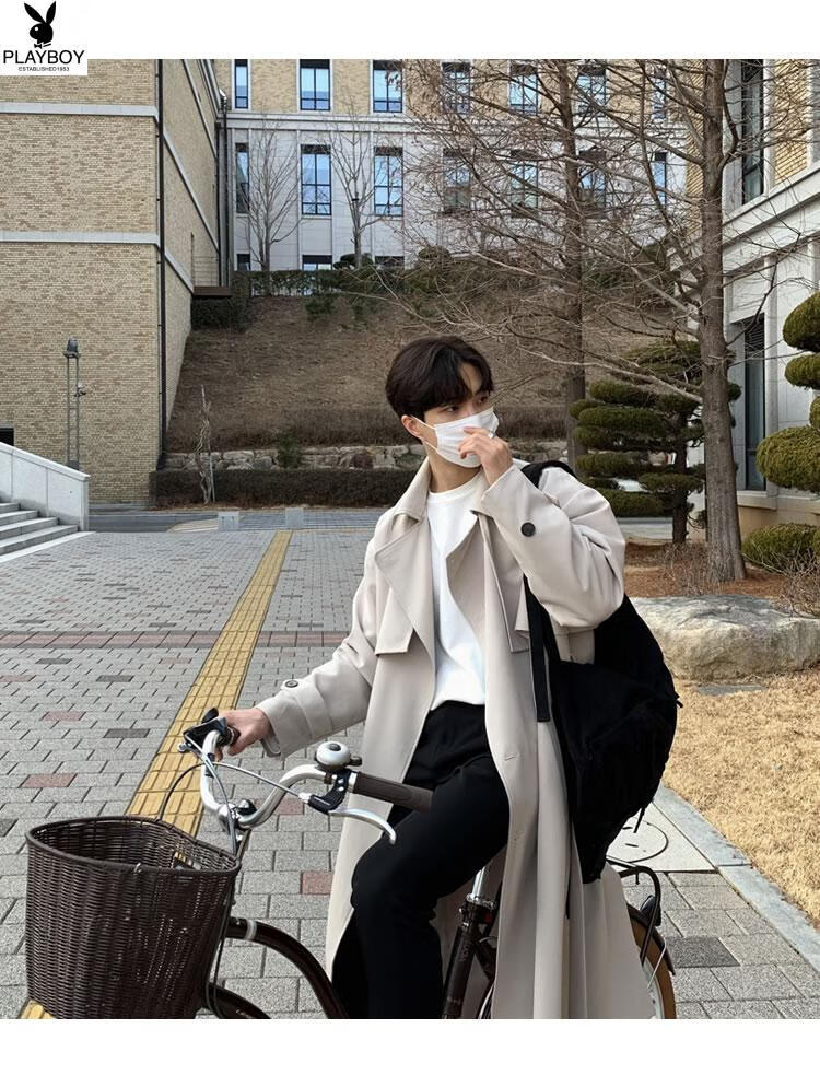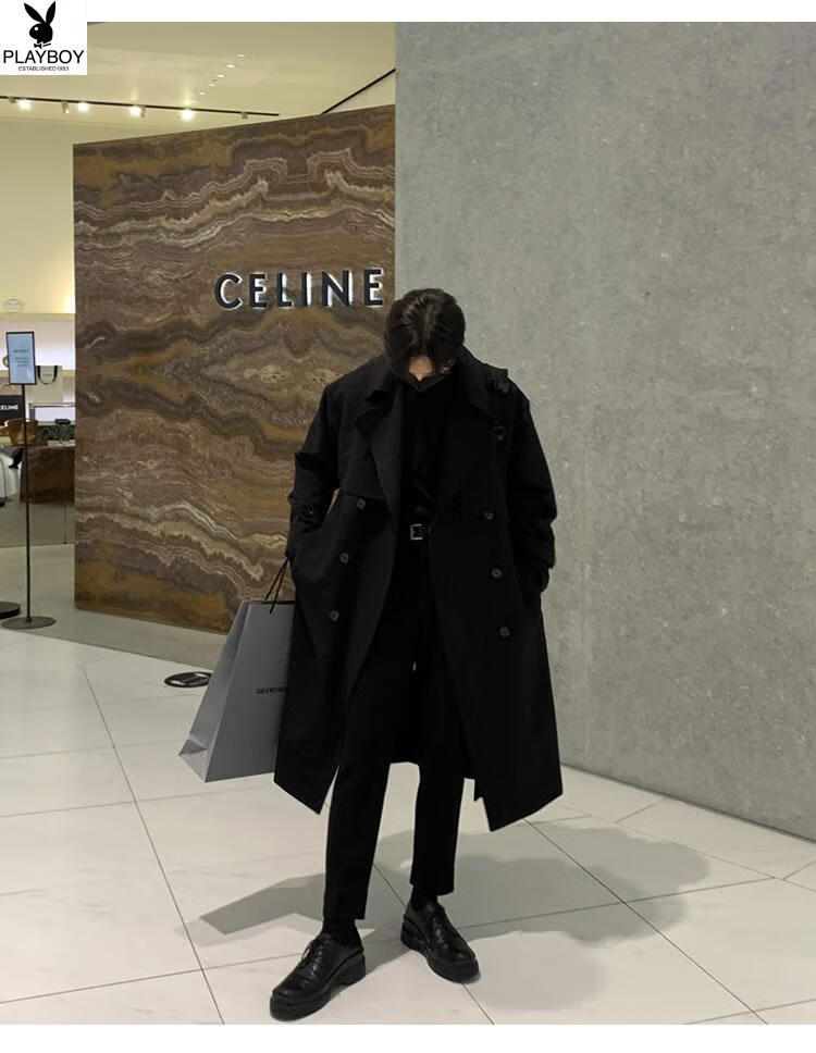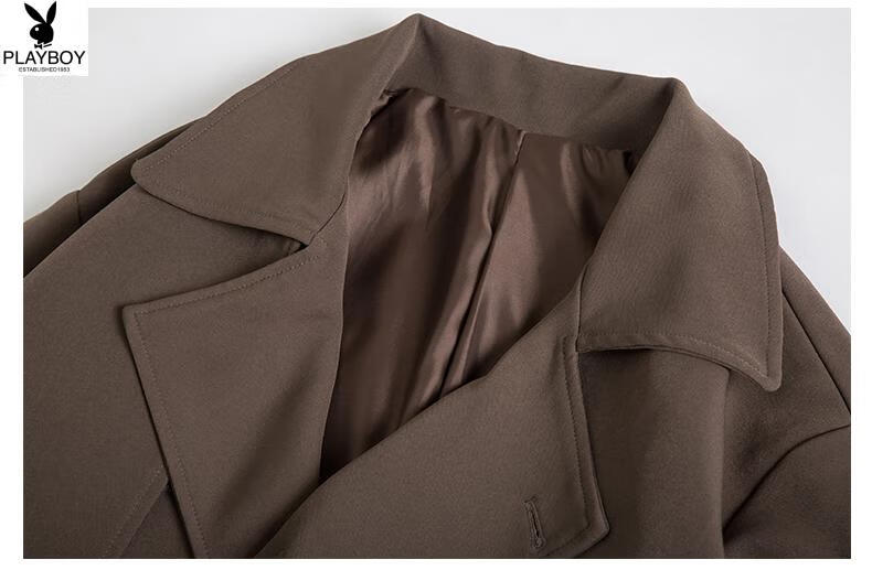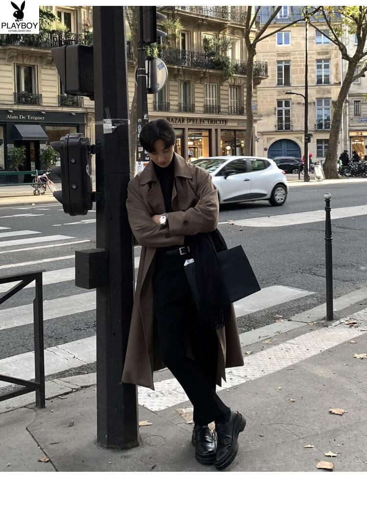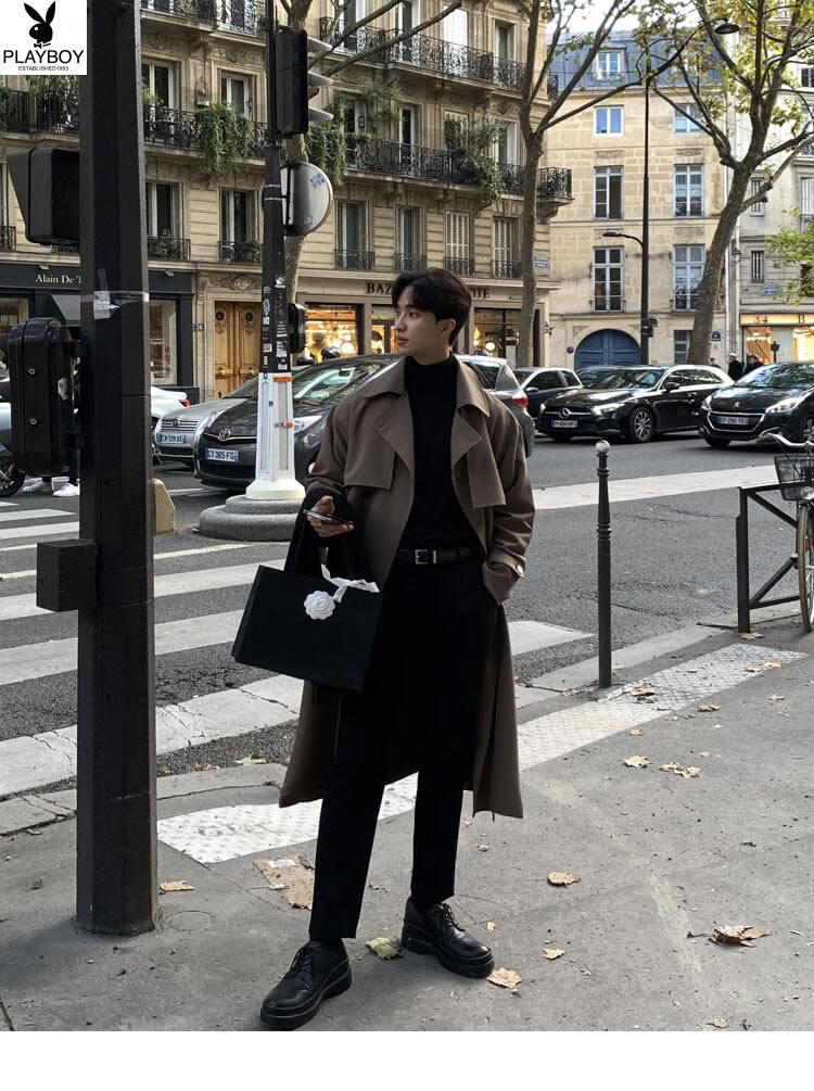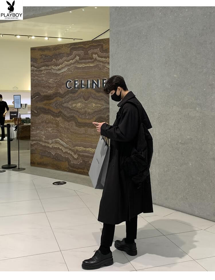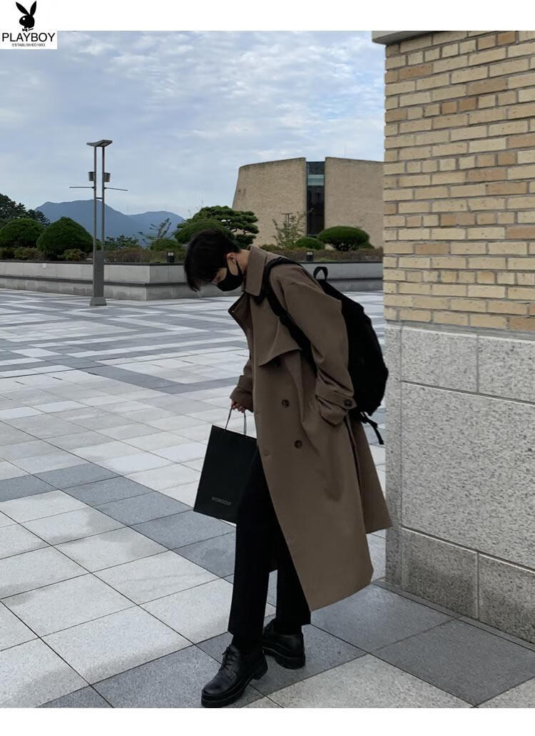 Playboy (PLAYBOY) British style windbreaker drapey mid-length coat men's spring and autumn thin coffee color Crusu coat coffee color S