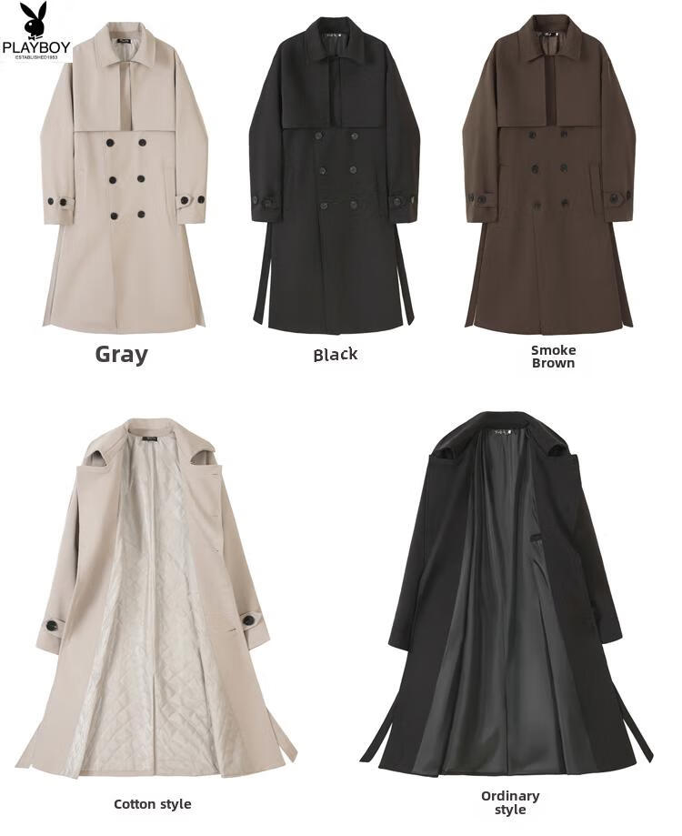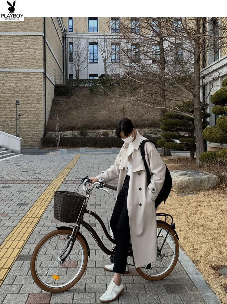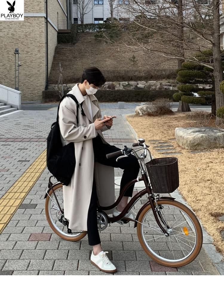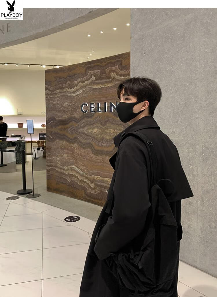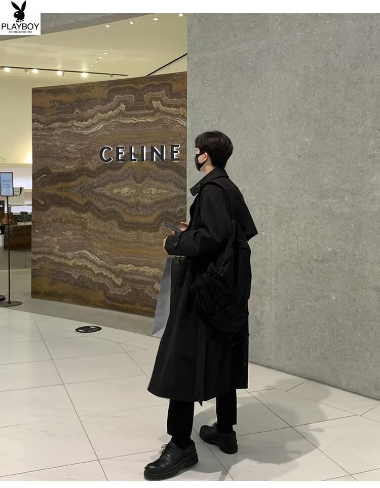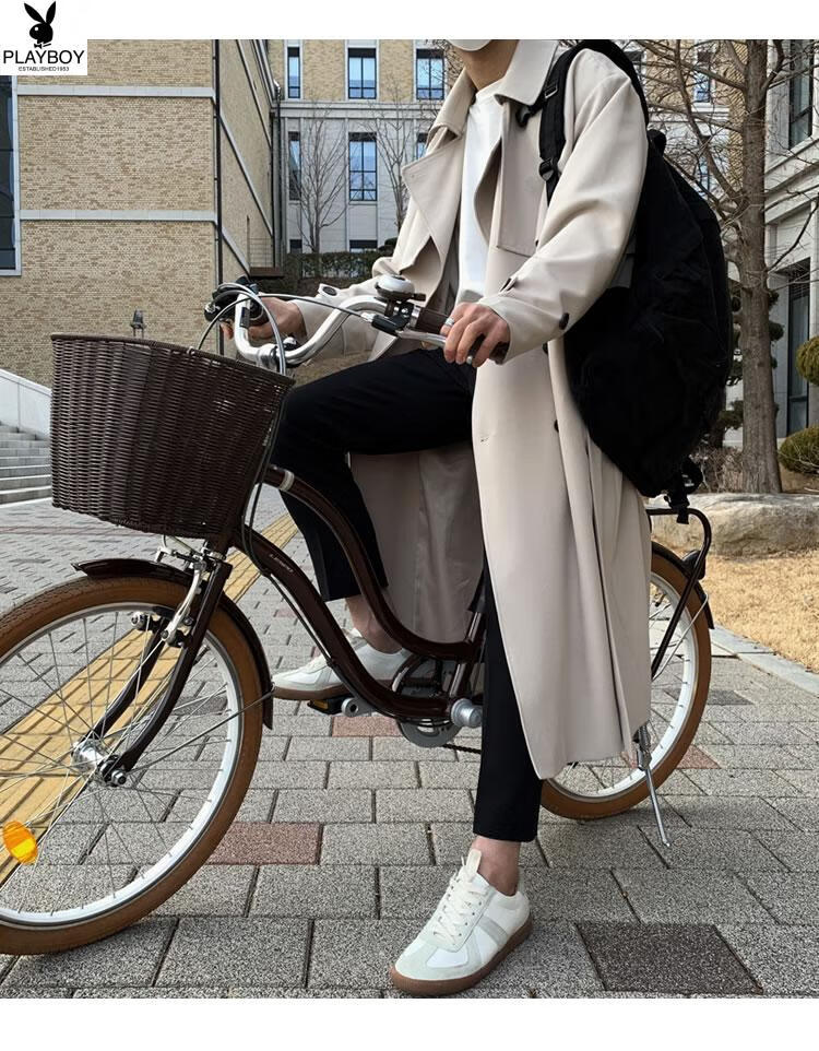 Playboy (PLAYBOY) British style windbreaker drapey mid-length coat men's spring and autumn thin coffee color Crusu coat coffee color S
