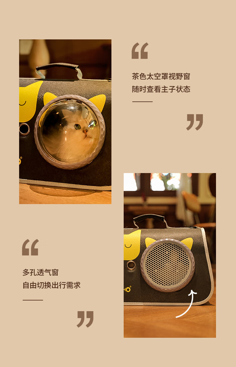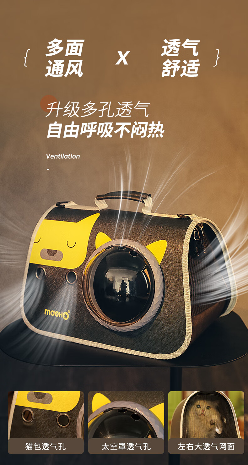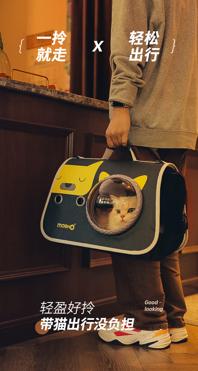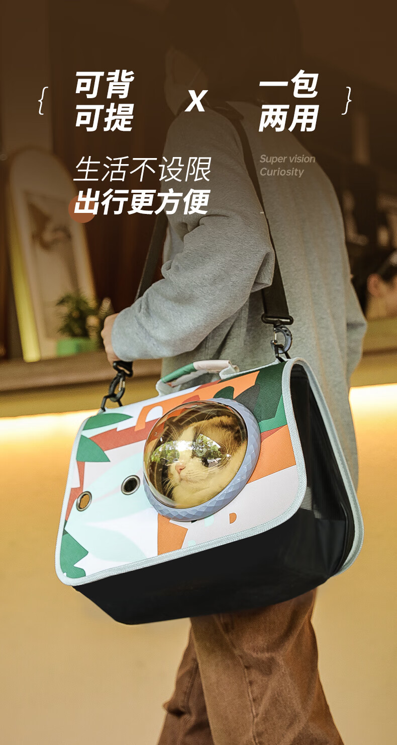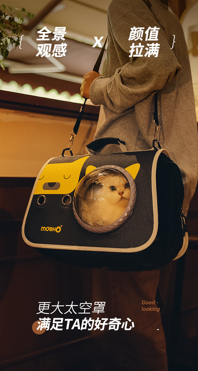 JCZS German brand pet bag cat backpack Teddy outing cat cage dog bag cat bag cat school bag portable breathable space bag-Hanhan Bear 40*27*27CM