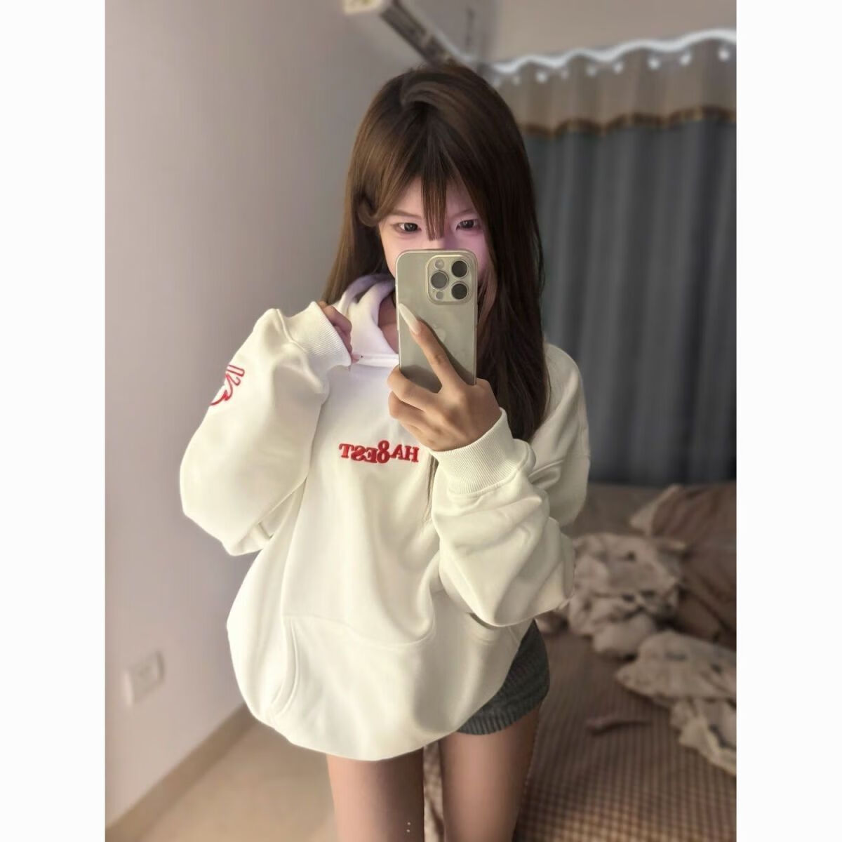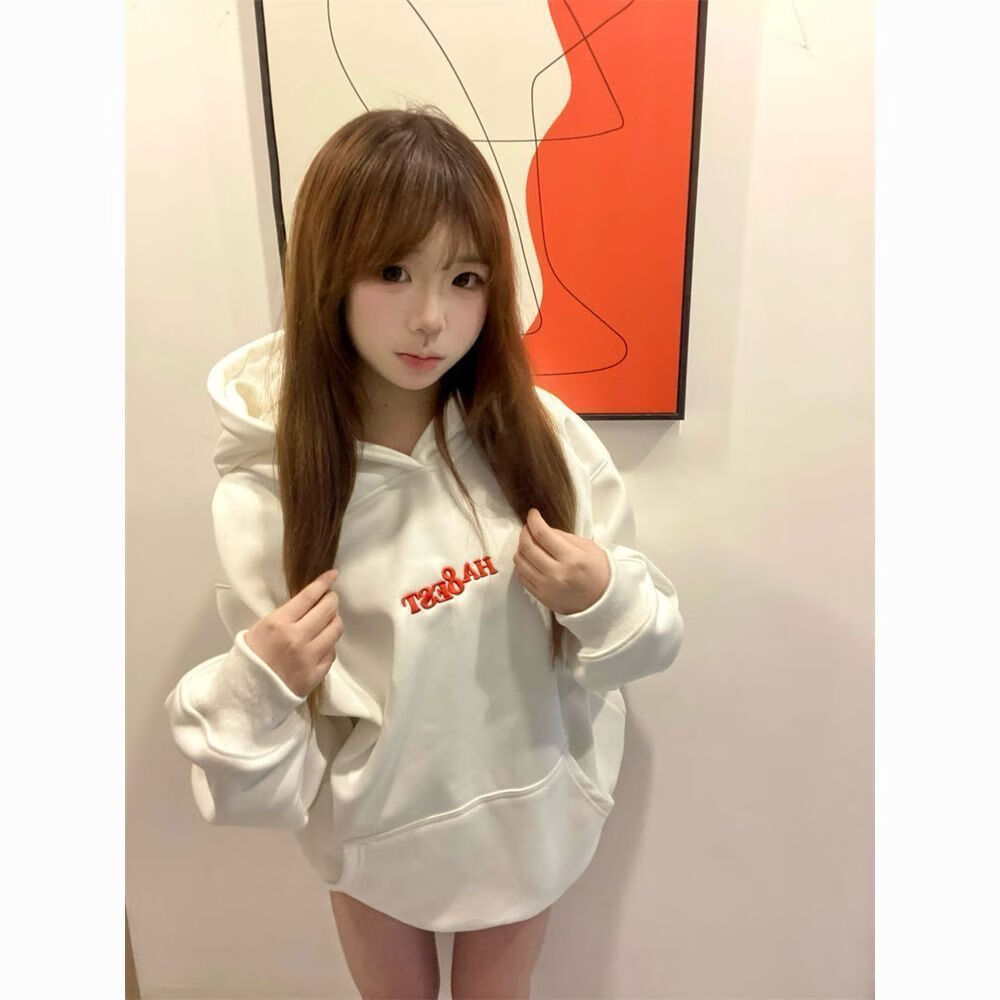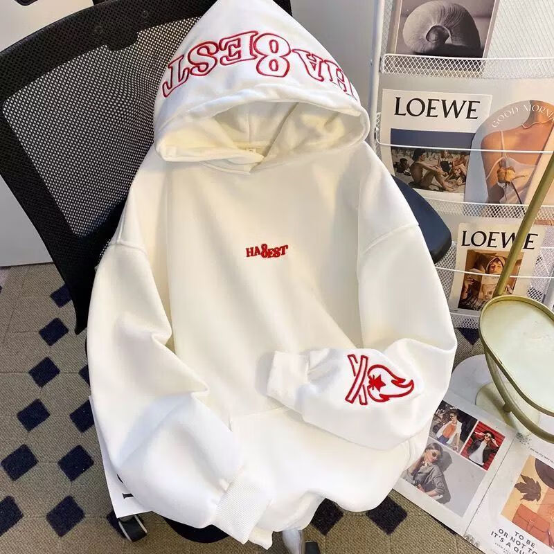 灿图美式加绒字母火焰刺绣连帽卫衣男秋冬季潮牌重磅上衣百搭外套情侣 白色 加绒 L 建议100斤到120斤