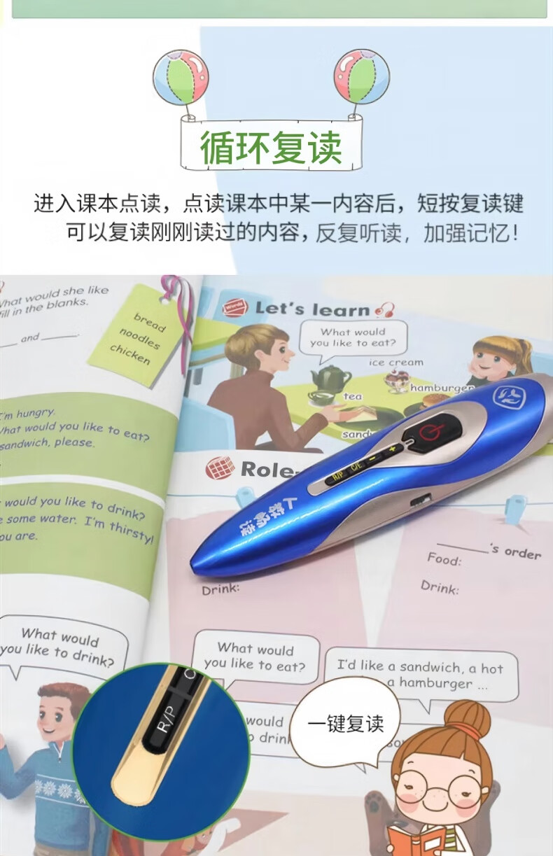 快译通人教畅读学生英语点读笔三四五六年级专用英语辅导神器老师推荐人教版小学课本同步点读机学习机 RJ-60B 点读笔+3456年级英语点读课本上下册