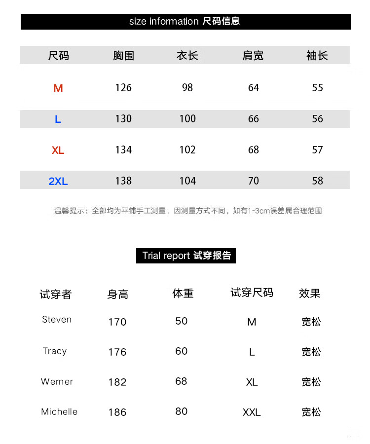China (cm) 160-165/84-86 165-170 / 88-90 167-172 / 92-96 168-173 / 98-102 170-176 / 106-110