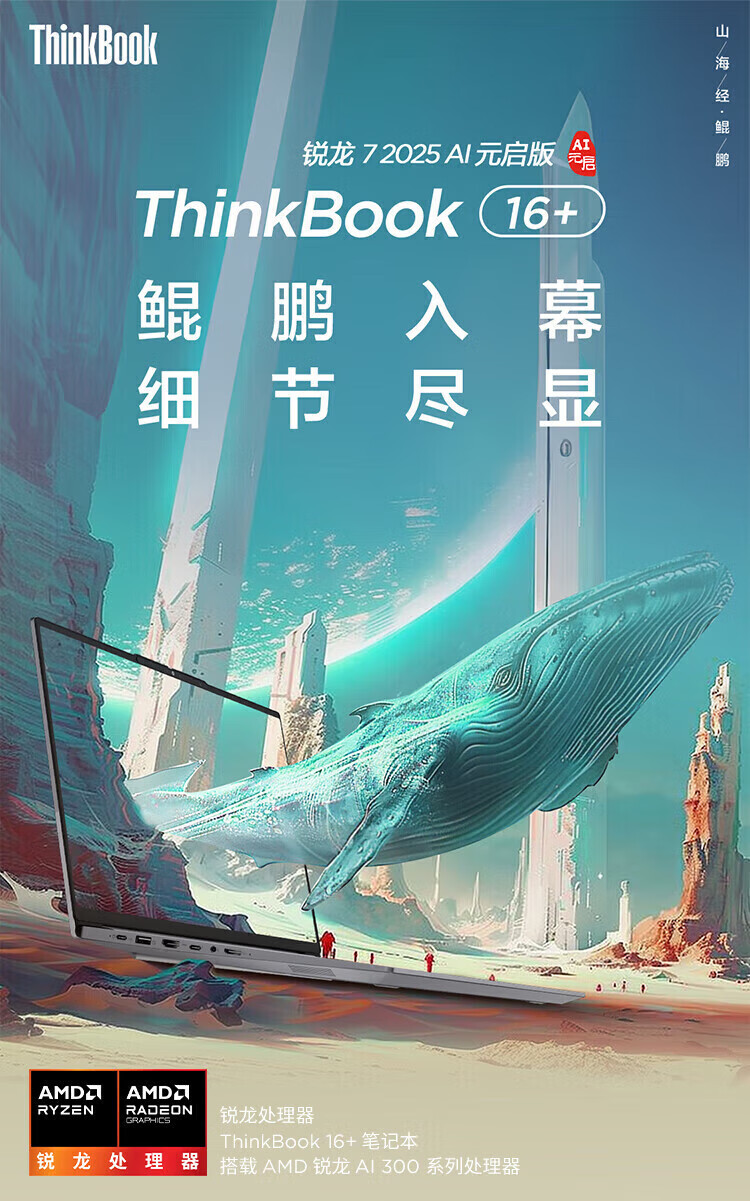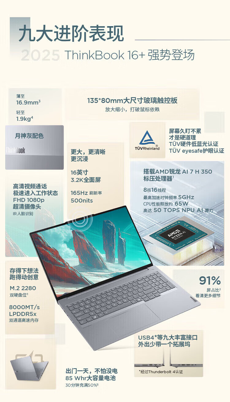 ThinkPad Lenovo ThinkBook16+ laptop government subsidized Ryzen high-performance 16-inch AI super designer business office game college student thin and light all-round notebook R7-8745H 32G 1T 2.5K screen high brush