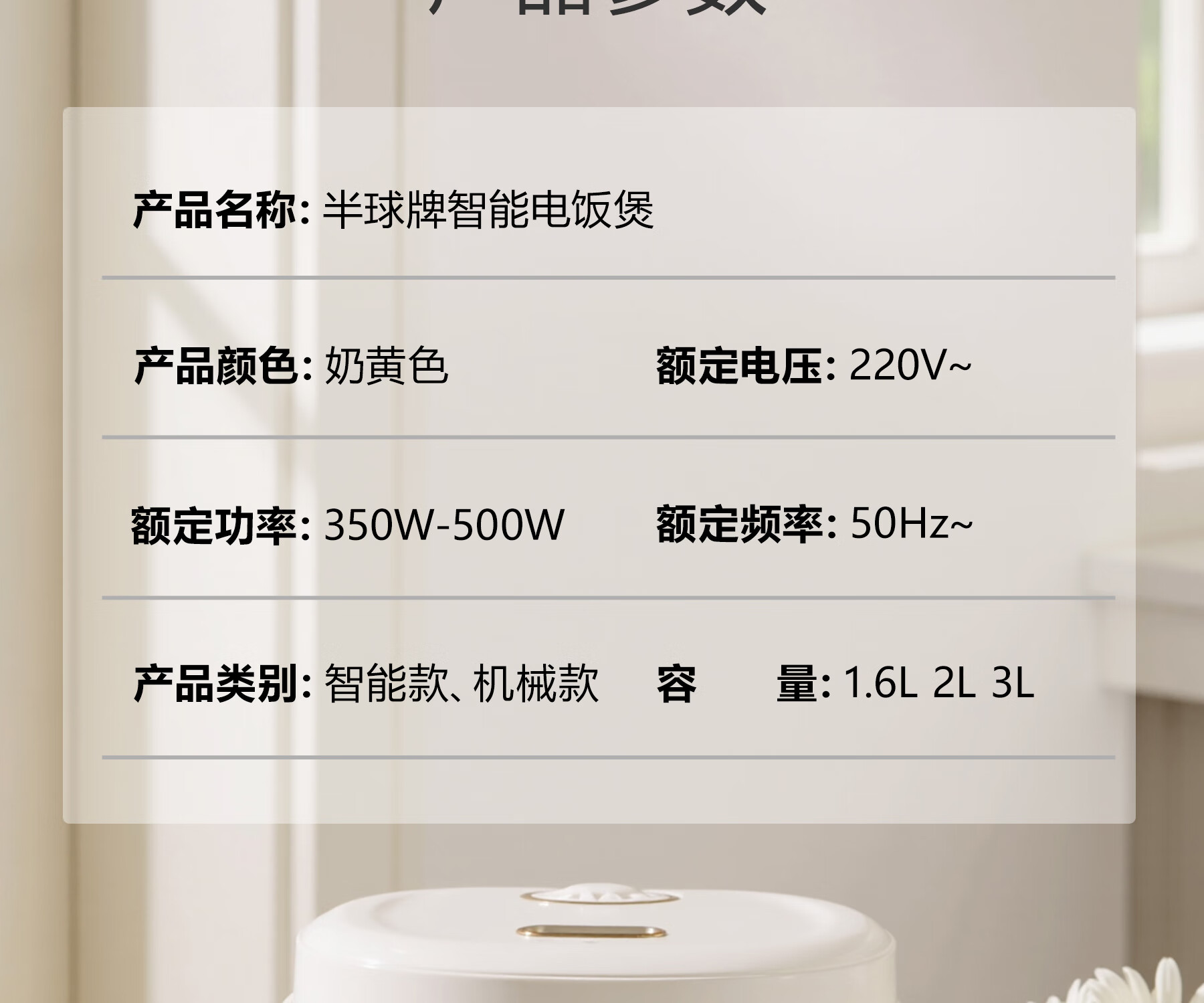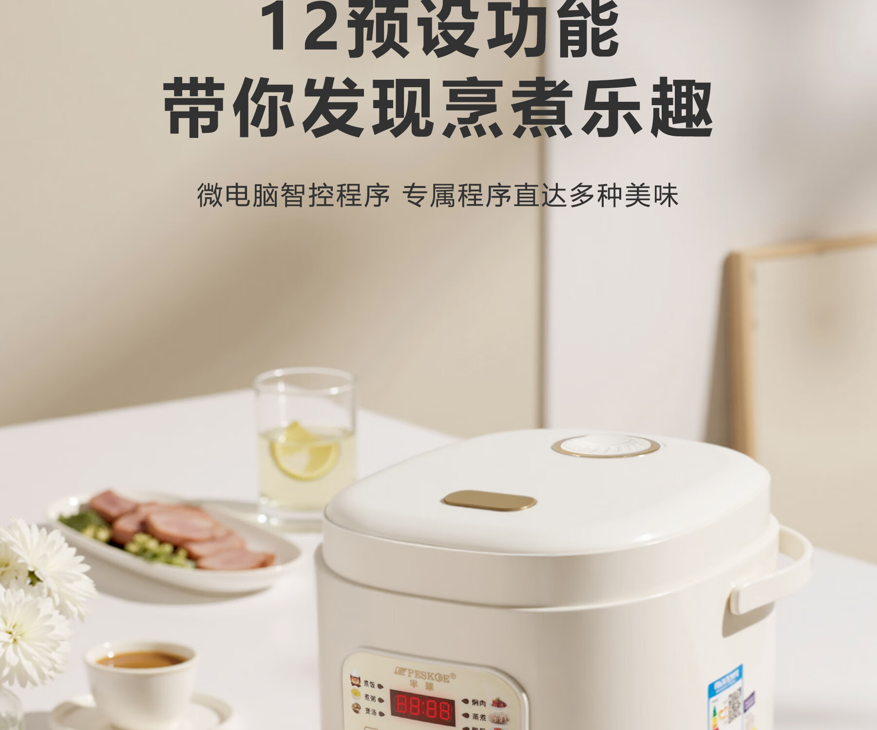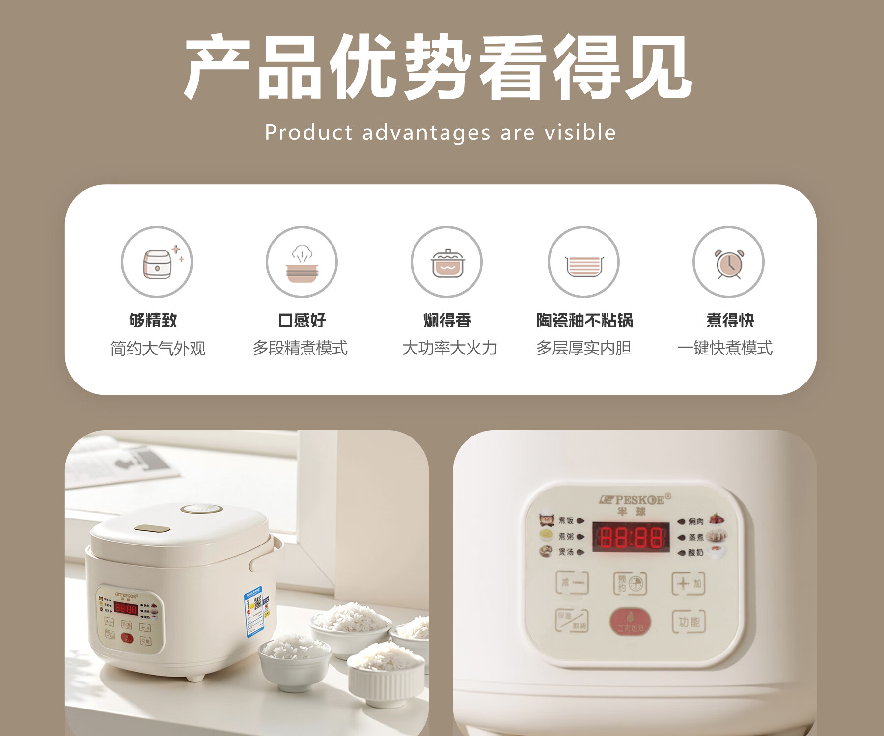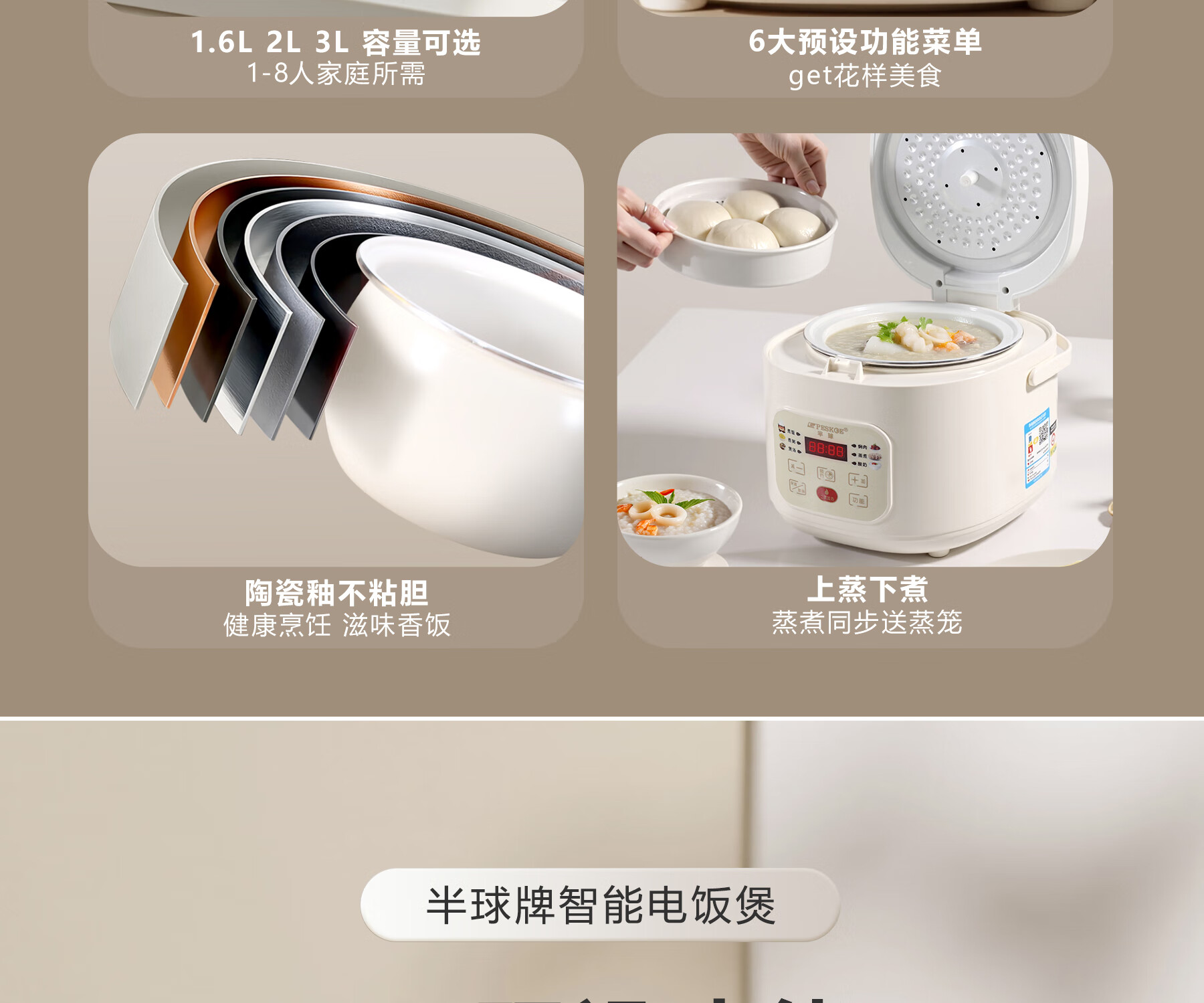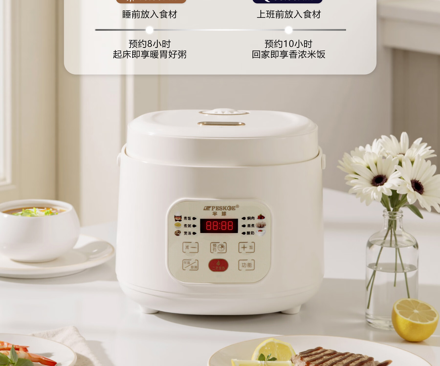 Hemisphere (PESKOE) rice cooker household mini small 1-2 people multi-functional intelligent reservation rice cooker steaming one-piece 1-2 people 3L mini rice cooker reservation steaming one 2L 1-2 people high-end ceramic glaze bladder