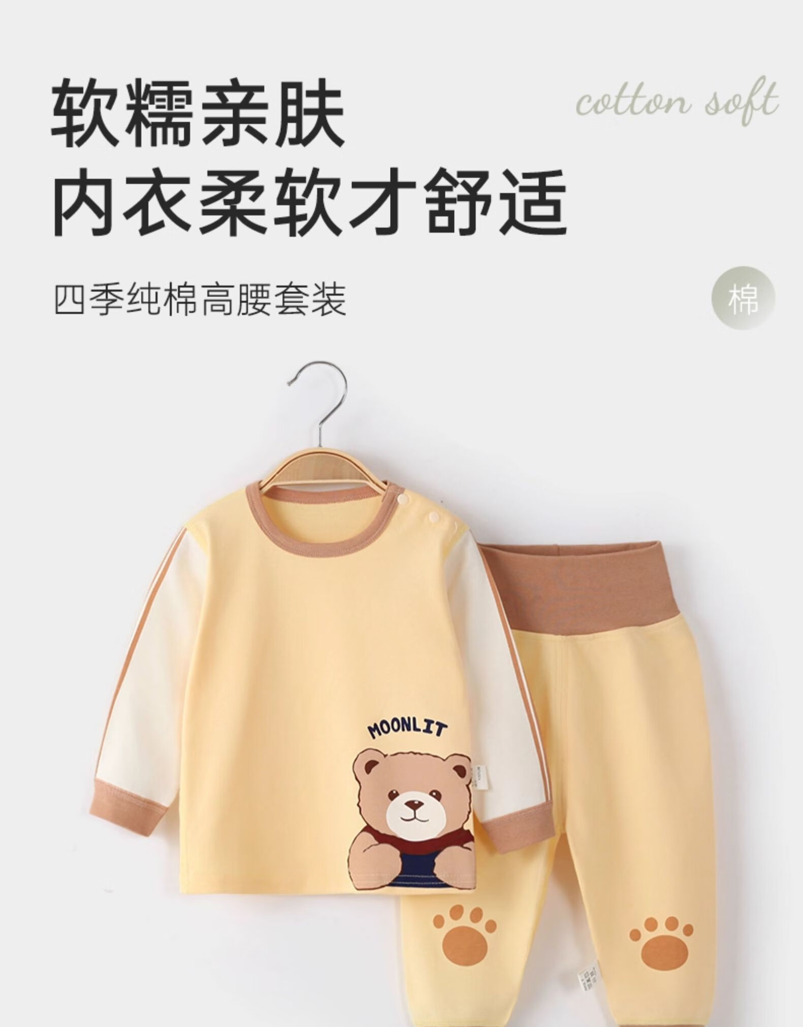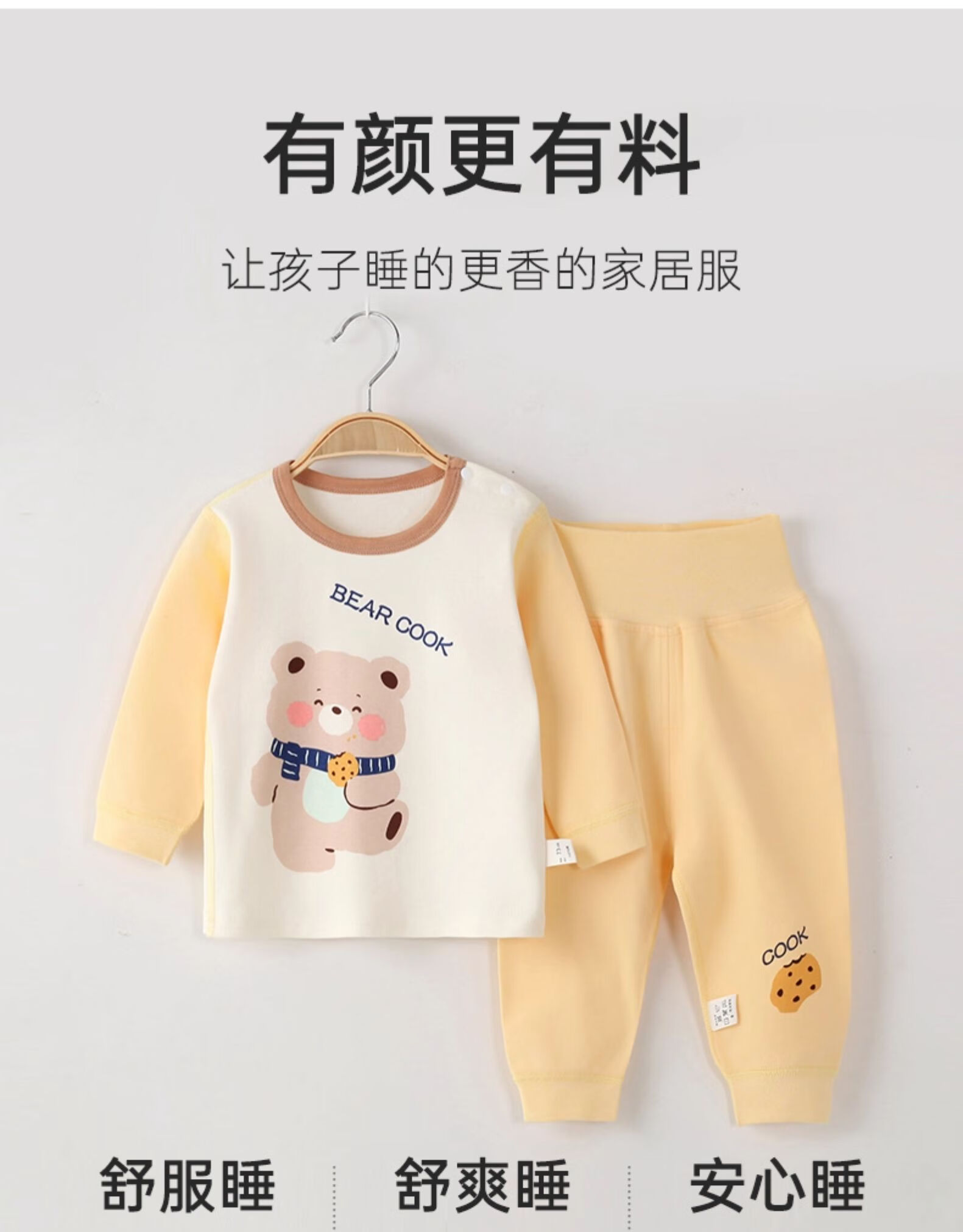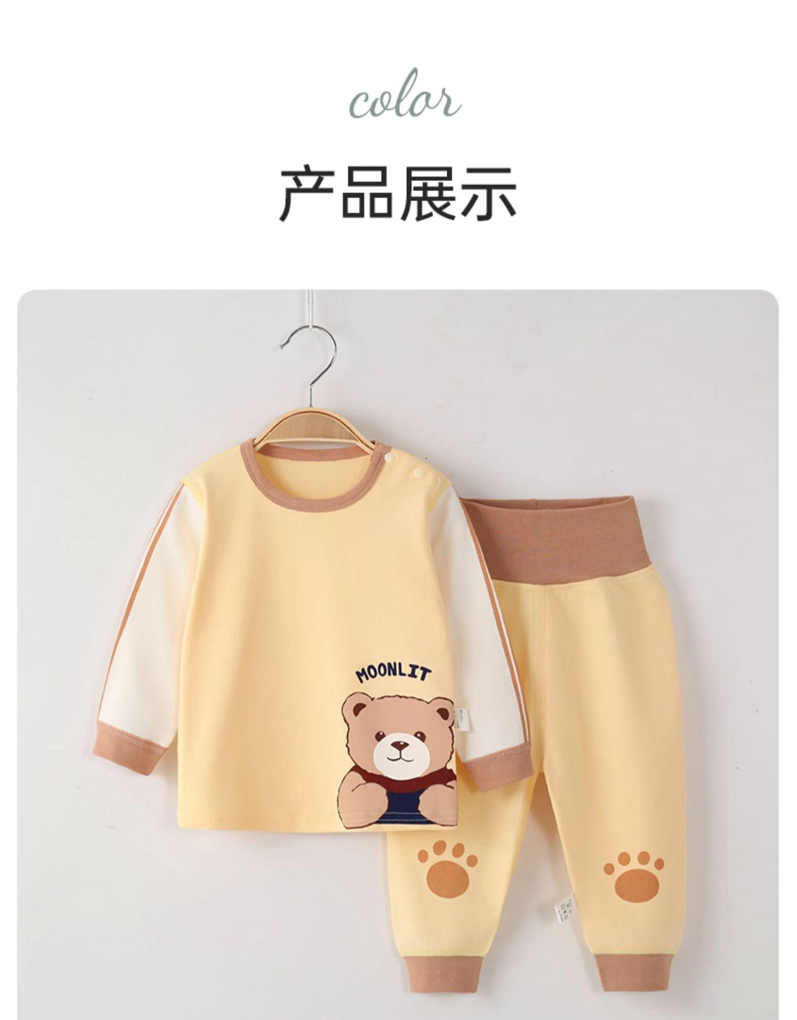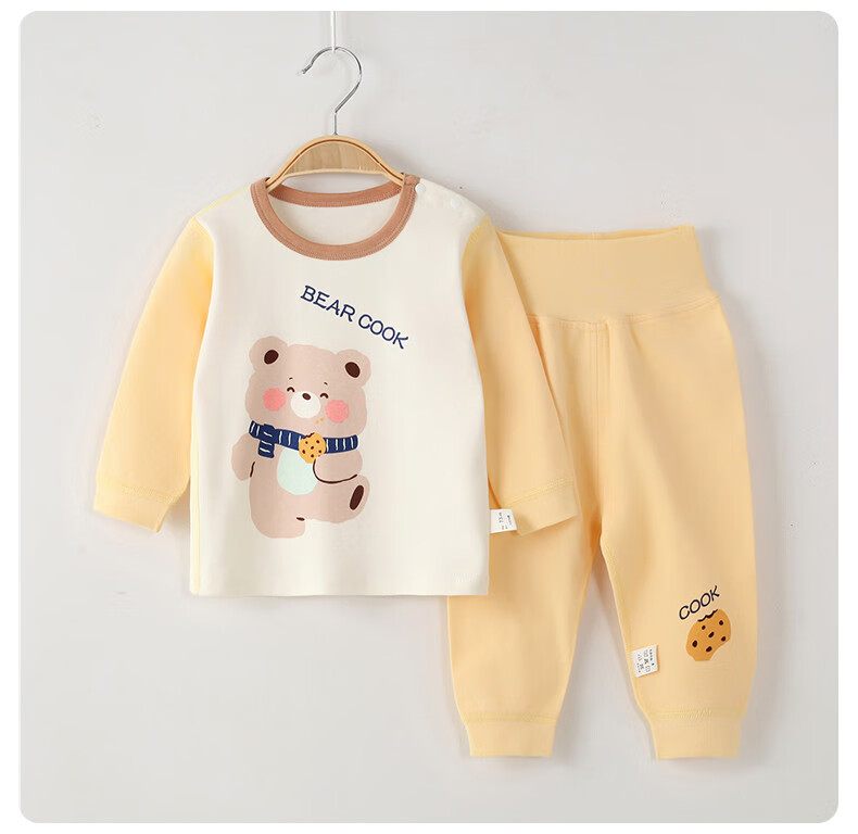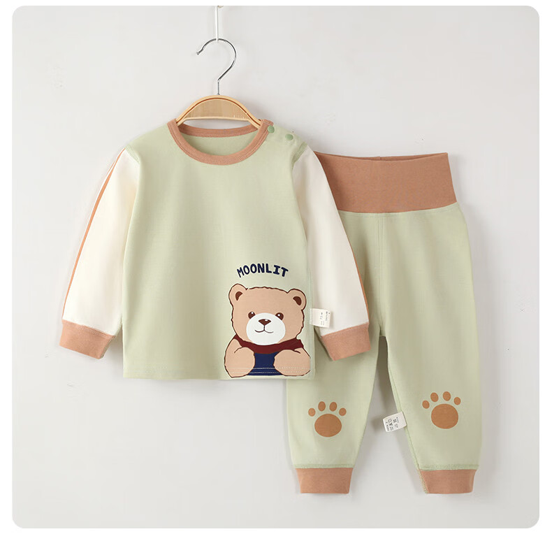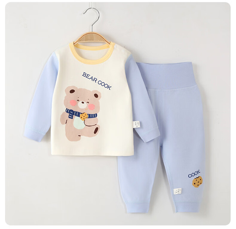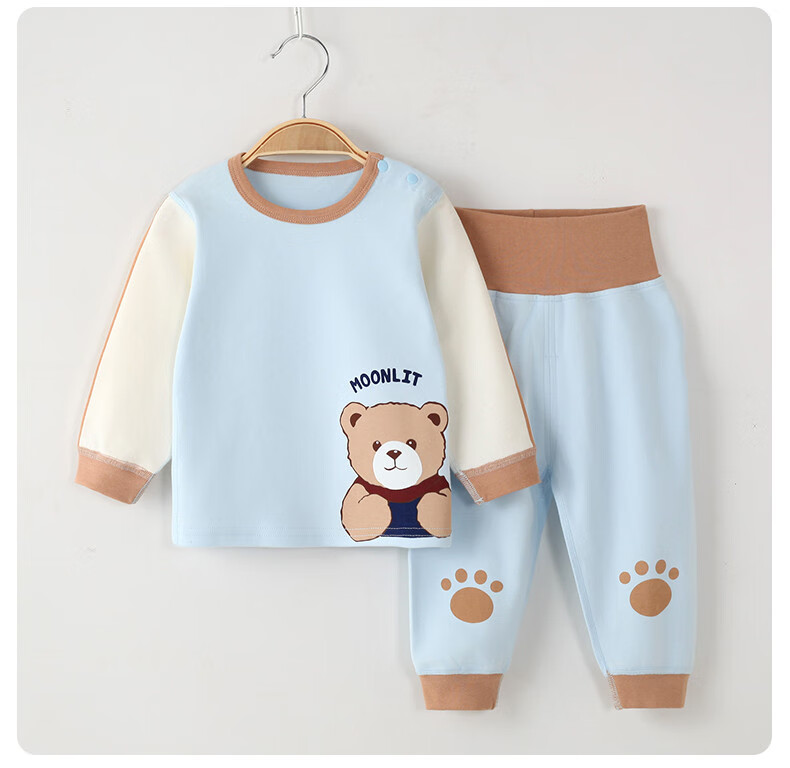 JOYNCLEON Conjuntos de Ropa y Pantalones de Otoño para Niños Conjuntos para Bebés Ropa Interior Térmica de Algodón Puro para Niños y Niñas Pijamas Tipo A Azul Lindo Oso 90 cm