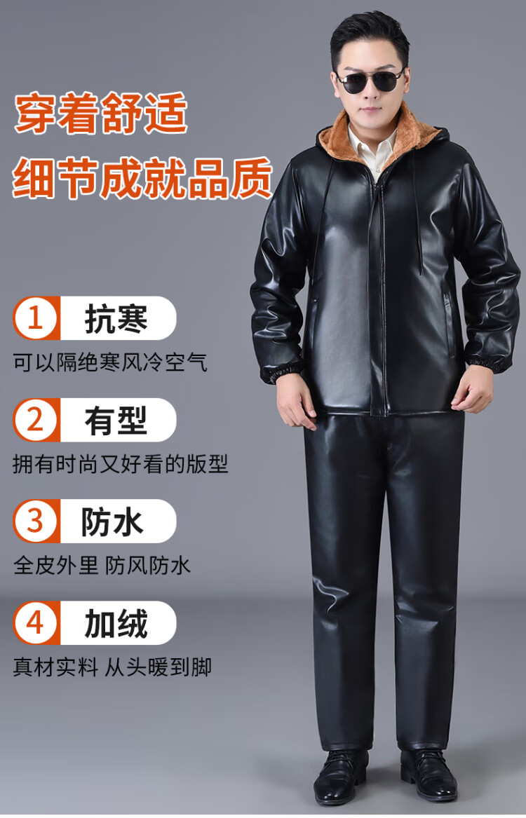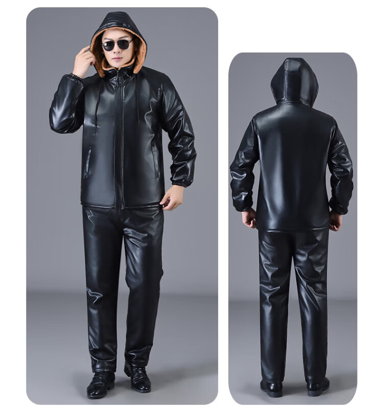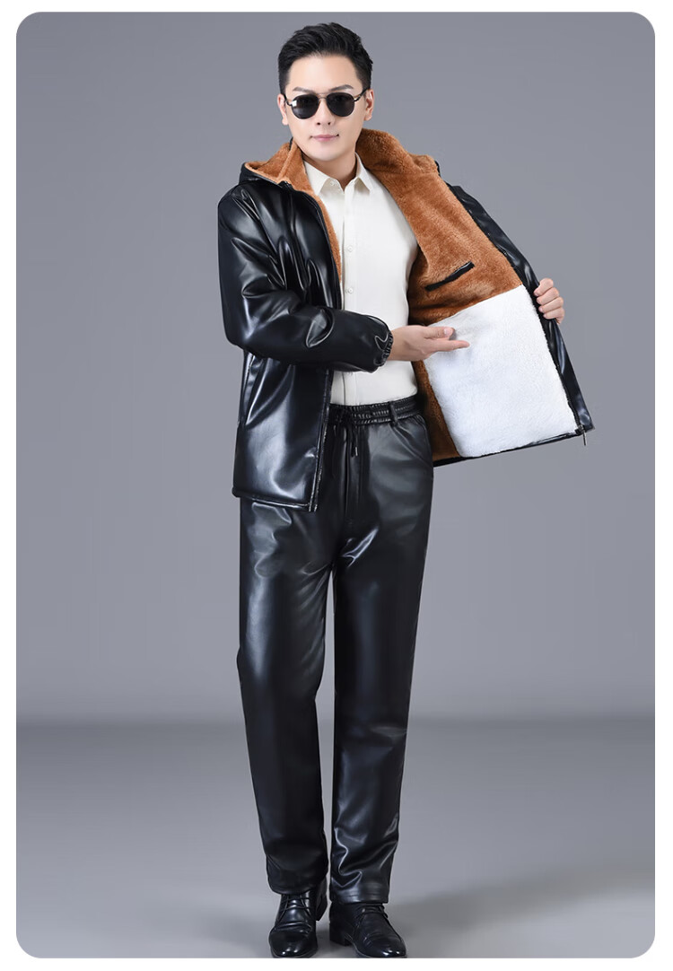 Liyang Chaqueta de cuero de invierno para hombre y traje de pantalón de cuero más terciopelo engrosado a prueba de viento e impermeable Motocicleta Ciclismo Conducción para llevar Chaqueta cálida Protector de hombro Protector de vientre Top 3XL 140-150 Jin Jin es igual a 0,5 kg