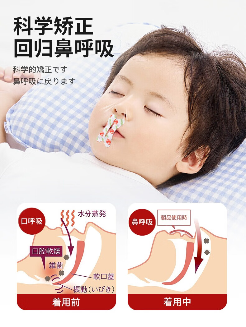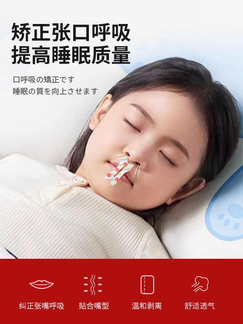 迈想日本口呼吸矫正器封口贴闭嘴神器睡觉防止张嘴巴嘴唇闭合儿童成人 闭口贴-儿童款【无纺透气】30只装