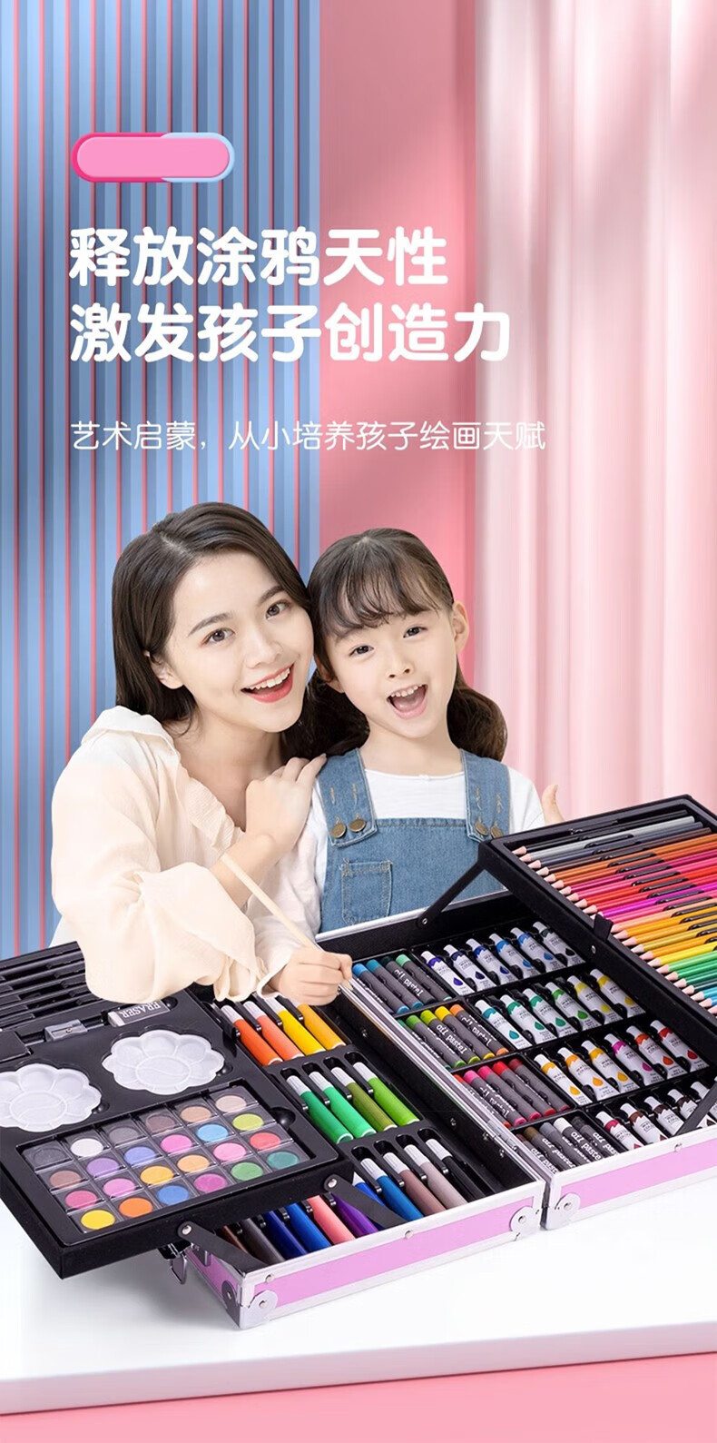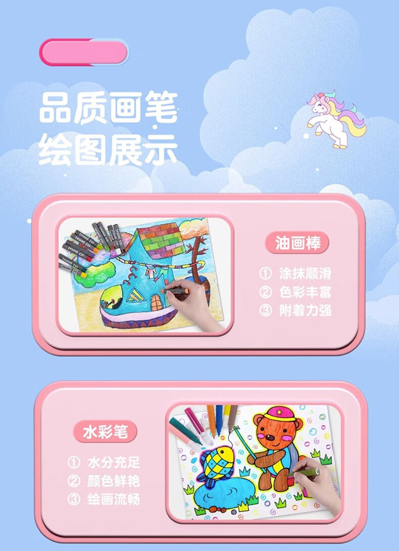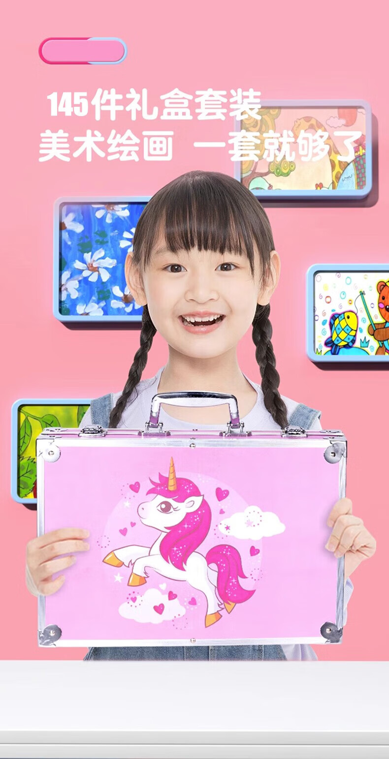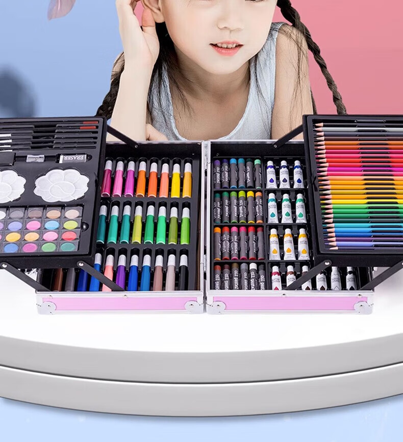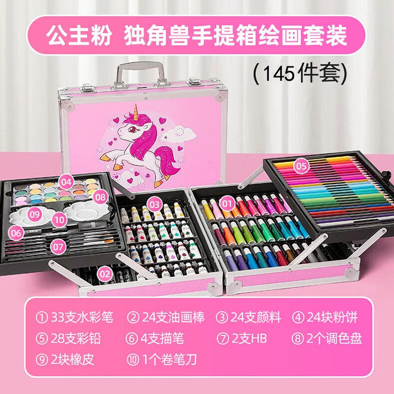 Haofanjie Brush Set Painting Gift Box 5 Painting 10 Children's Educational 9 Toys 6-12 Years Old 9 Girls and Boys Birthday Gifts 7 Deluxe Edition Set with Easel Toys for Girls Washable Toddler Coloring Pens