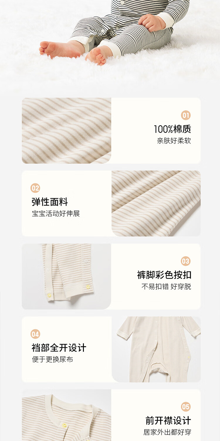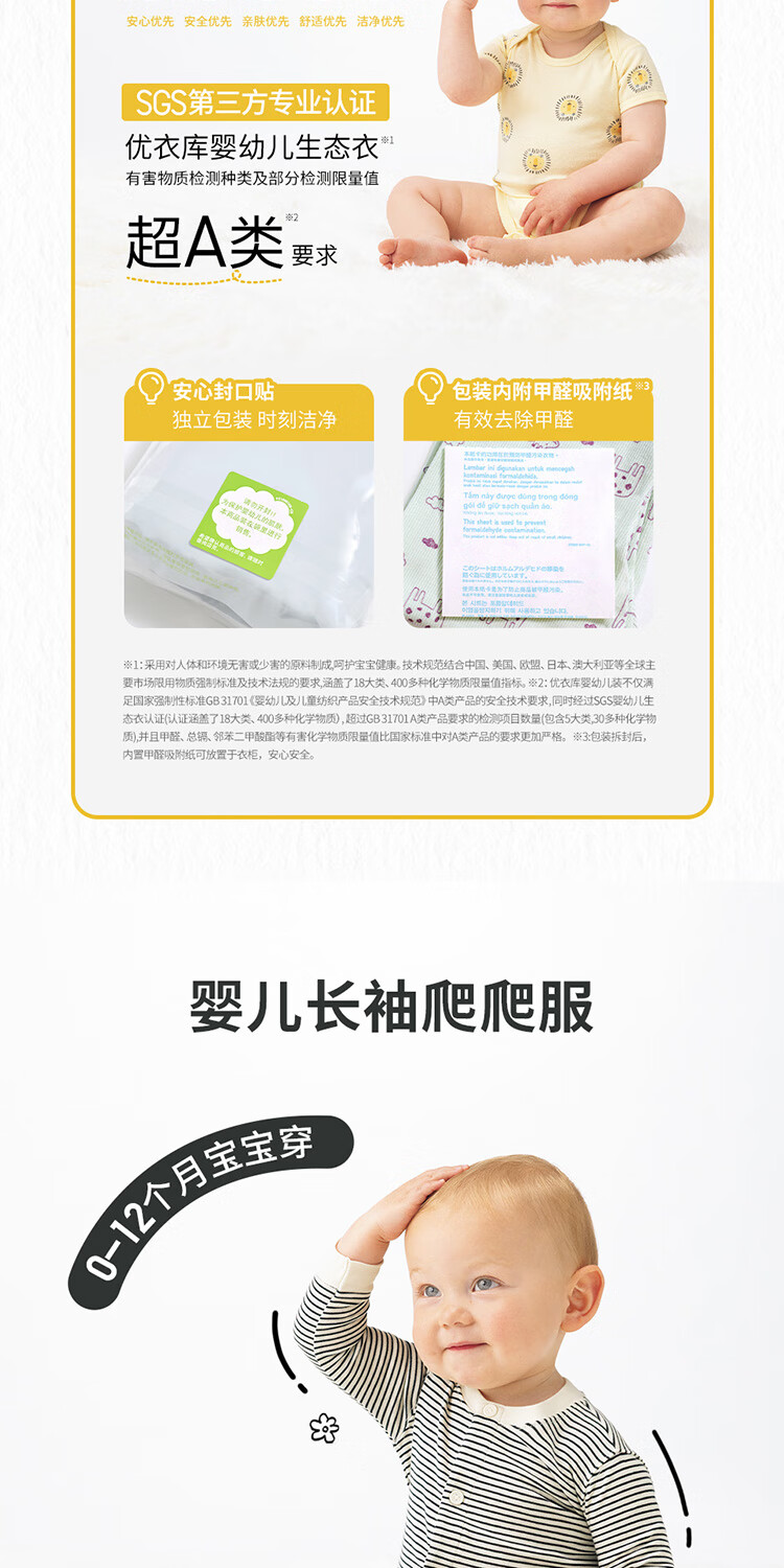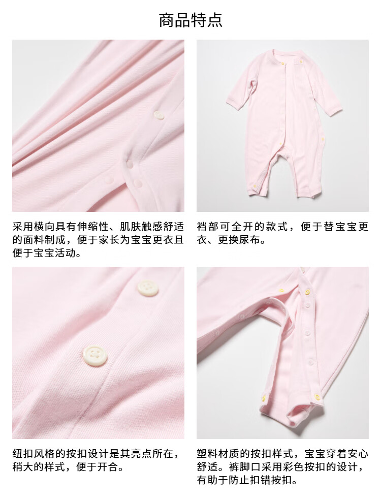 优衣库婴幼儿宝宝爬爬服/长袖婴儿衣服连体衣25秋冬新款478345 00 白色 60cm
