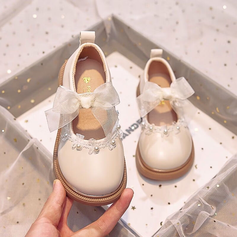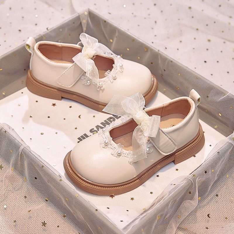 G.DUCKKIDS Kinder-Lederschuhe 2025 Herbst, neue Mädchen-Einzelschuhe, quadratische Zehen, flacher Mund, kleine Prinzessinnenschuhe, weiche Sohle, Kinderschuhe, A, Beige, Weiß, 26, Innenlänge 16 cm
