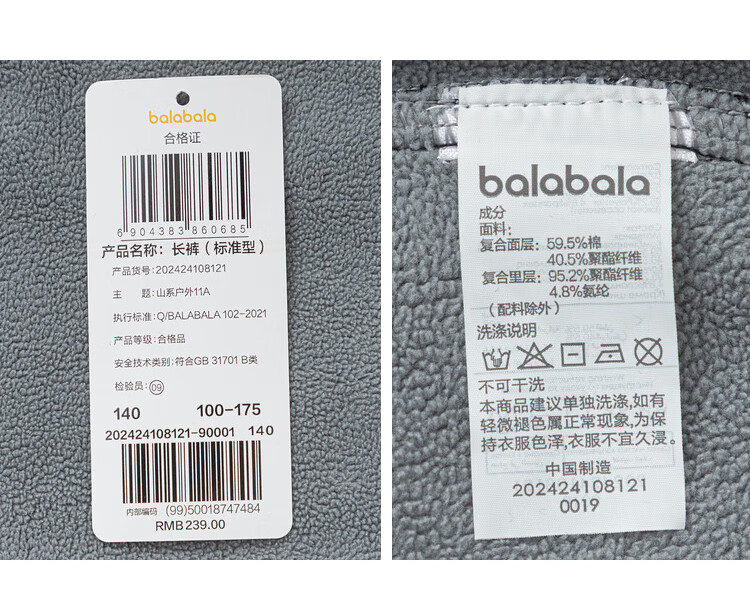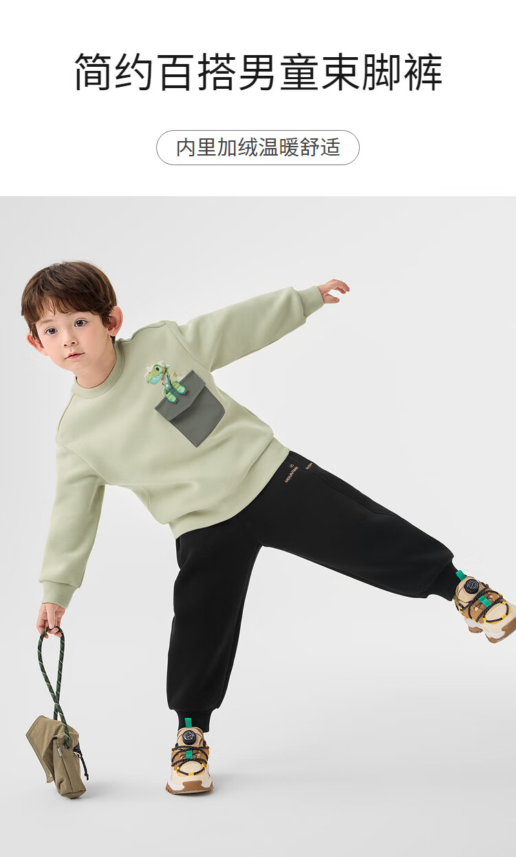 巴拉巴拉童装儿童长裤男童秋冬保暖加绒裤子洋气时尚休闲大童运动 黑色90001 140