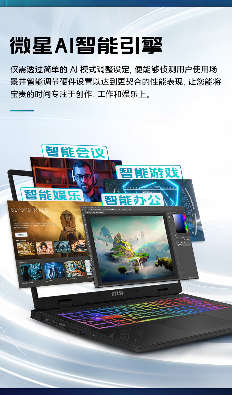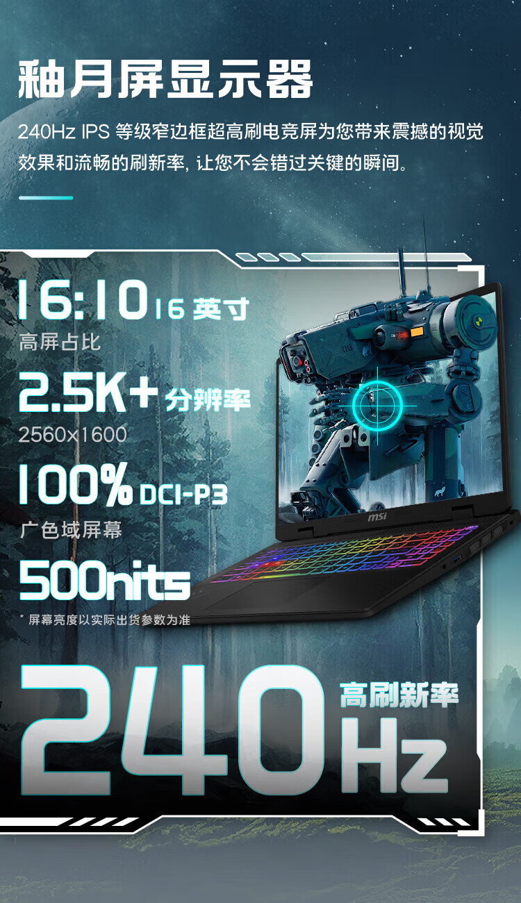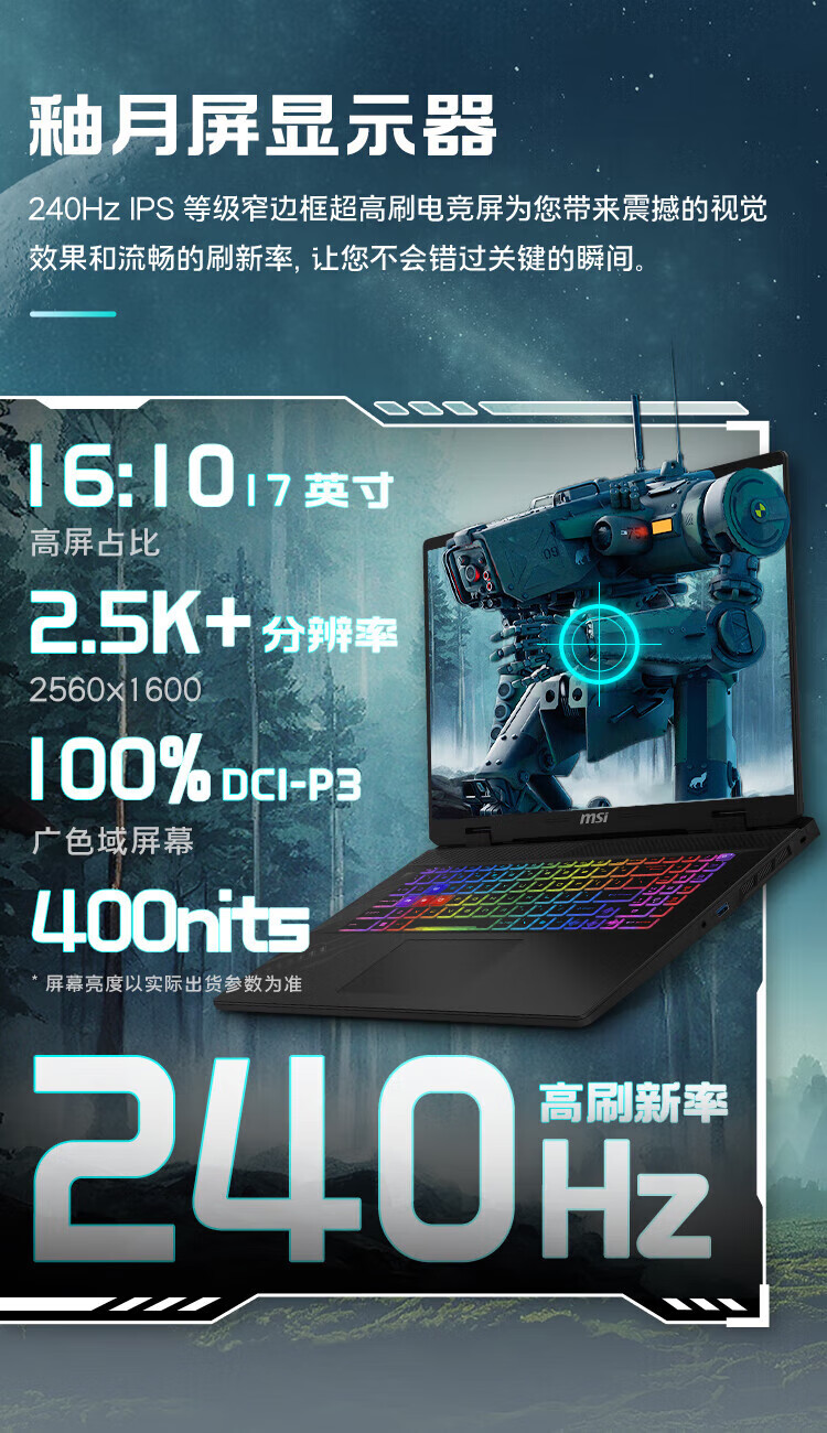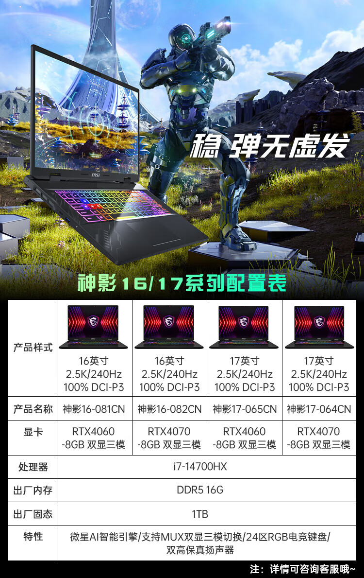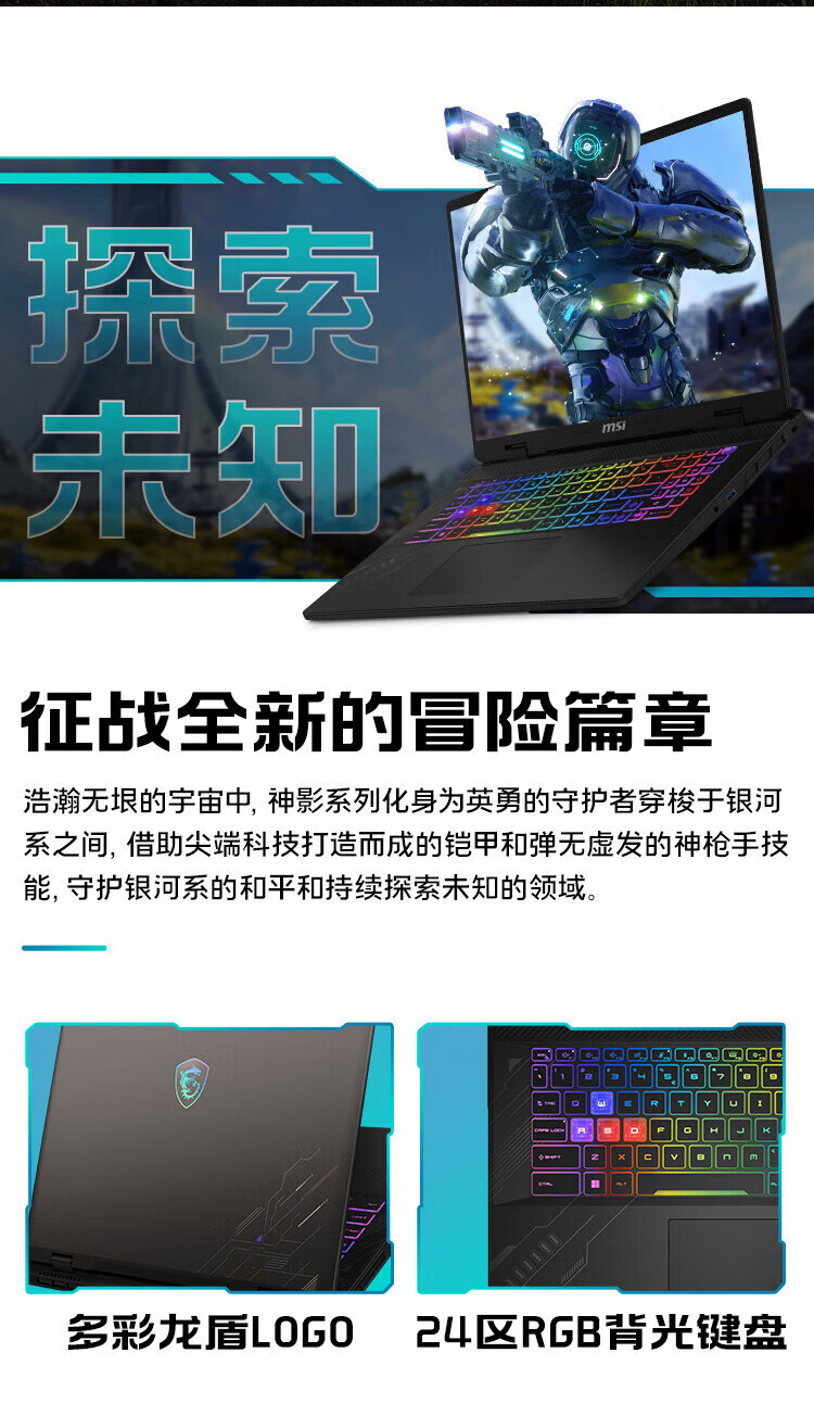 MSI Shenying 16丨Shenying 17 gaming notebook RTX5060丨5070 laptop independent display 2.5K 240H student computer 17 inches丨R7-8840HX RTX5060 16G memory 1TB solid state 2-year on-site service