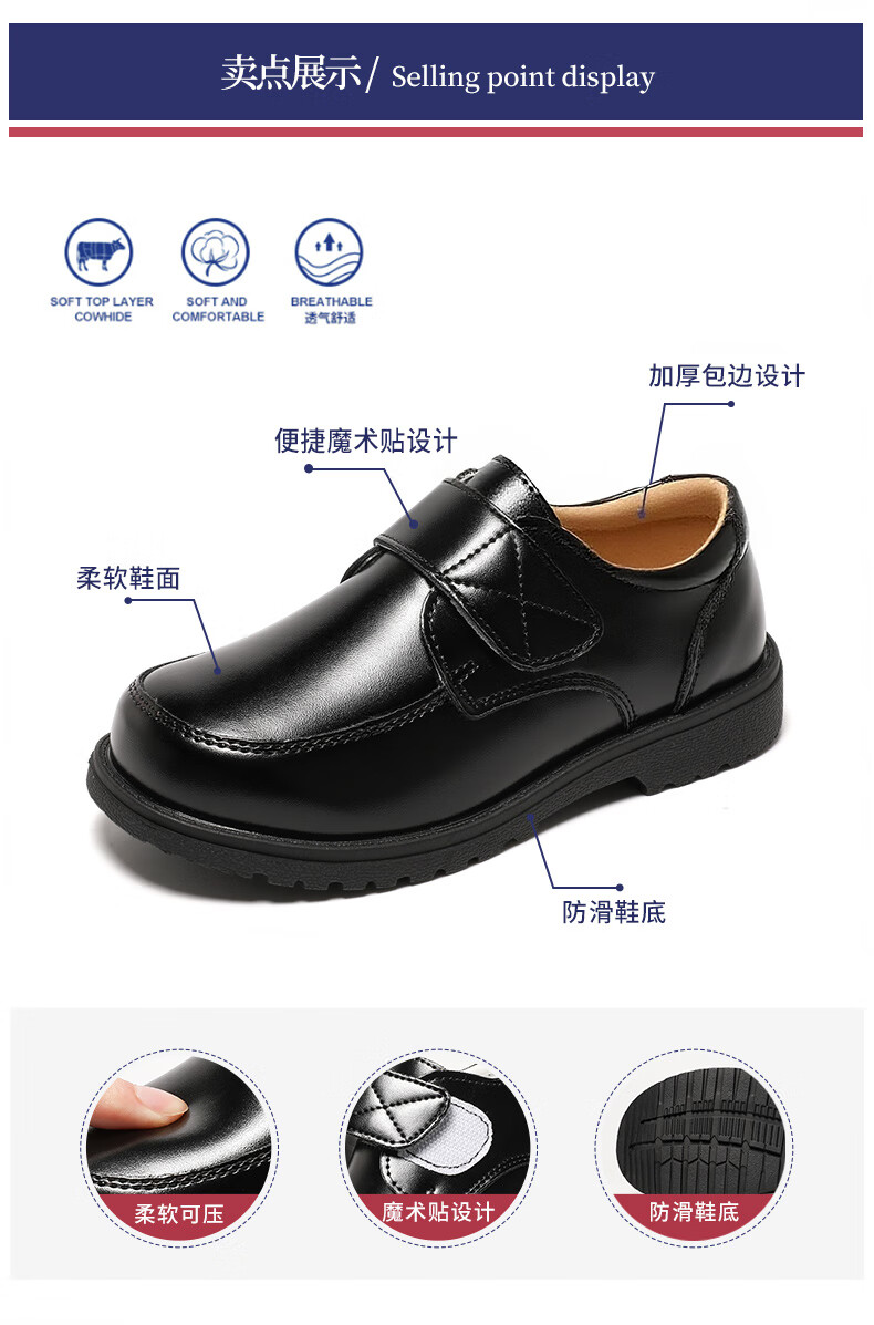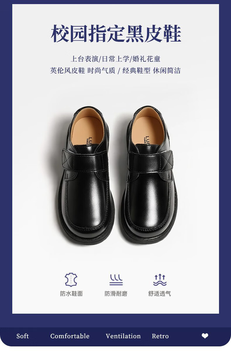 OLOEY男童皮鞋黑色正装鞋小学生校园礼仪软底儿童英伦风演出表演鞋春秋 【黑色】老师推荐款 幼儿园主持人小皮鞋 31 码内长约19.5cm/推荐脚长18.5cm