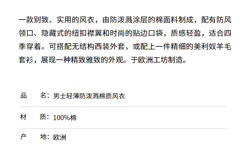 SUNSPEL【特享7折】男士秋冬全棉经典MAC款风衣 英伦廓形风衣外套 海军蓝 M