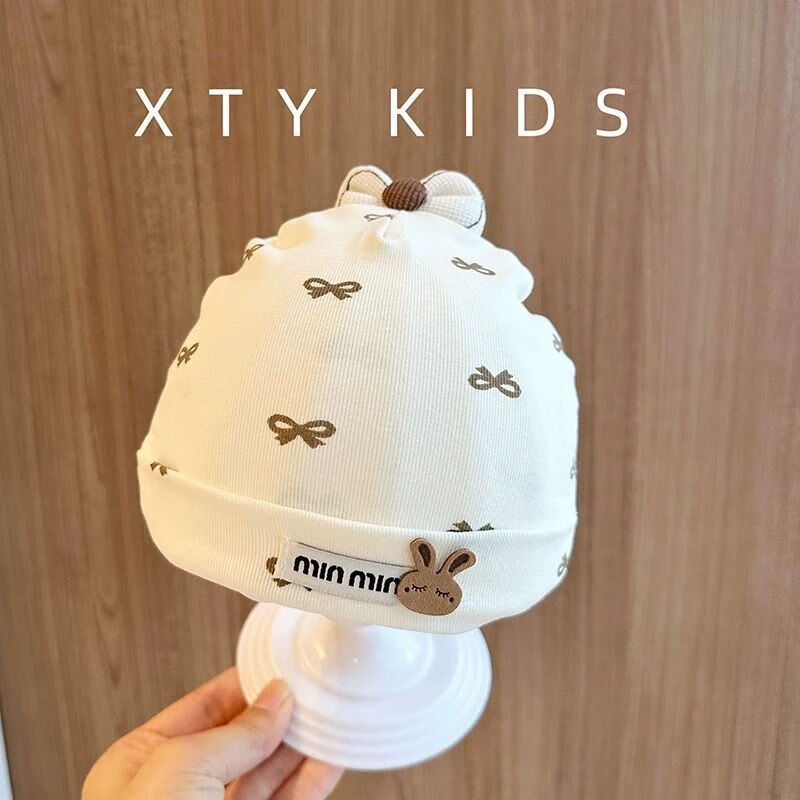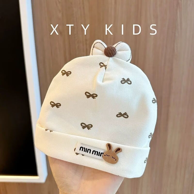 Шапочка для плода из чистого хлопка для новорожденных, тонкая детская шапочка на весну и осень с бантом в горошек, бескостная шапочка для головы ребенка и родничка, рекомендуется для детей 0–6 месяцев (высокая эластичность).
