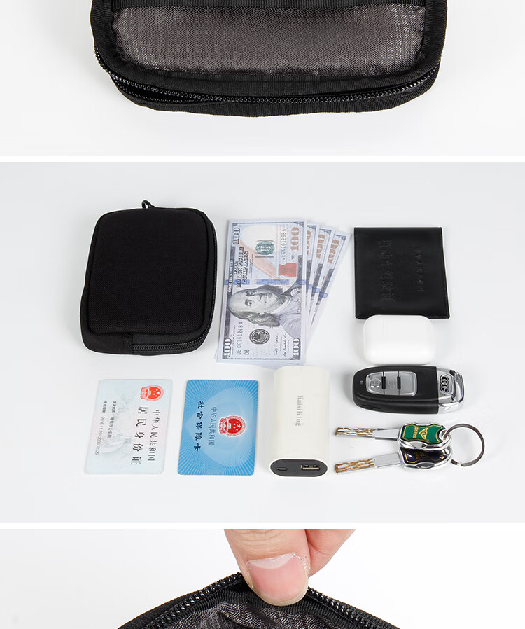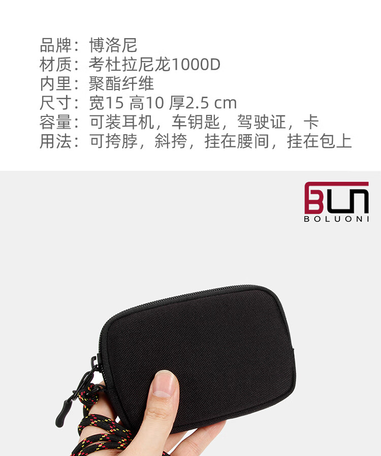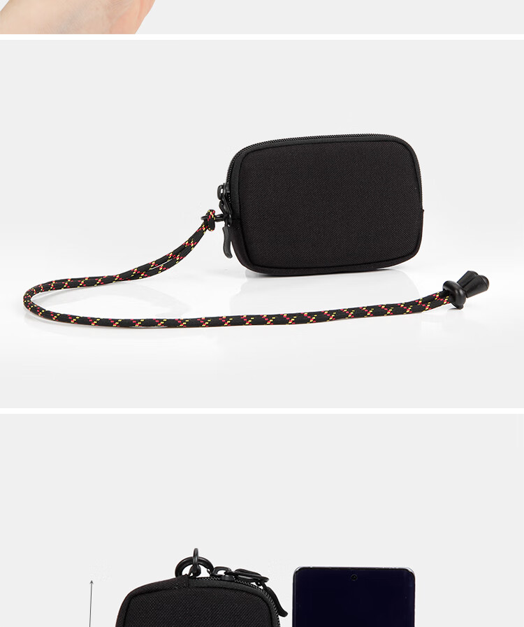 考杜拉弹道尼龙迷你手包男士零钱包硬币挂脖耳机包日系车钥匙卡包 黑色
