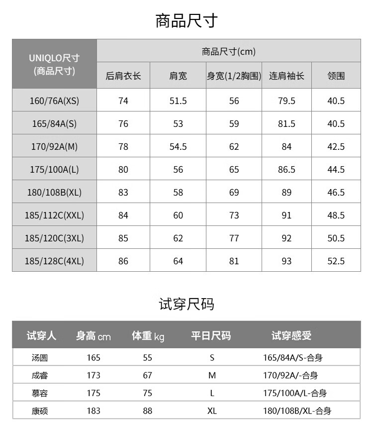 China (cm) 160-165/84-86 165-170 / 88-90 167-172 / 92-96 168-173 / 98-102 170-176 / 106-110