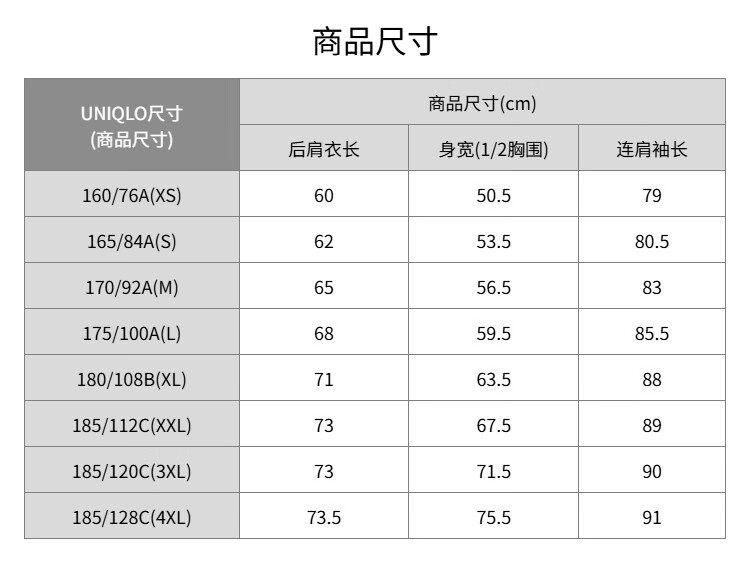 China (cm) 160-165/84-86 165-170 / 88-90 167-172 / 92-96 168-173 / 98-102 170-176 / 106-110
