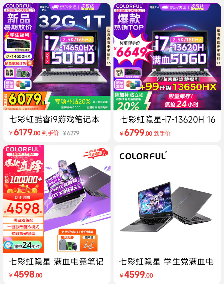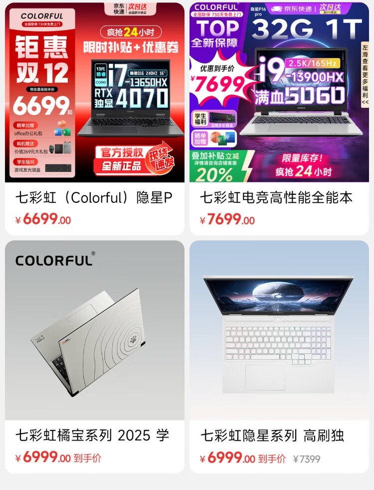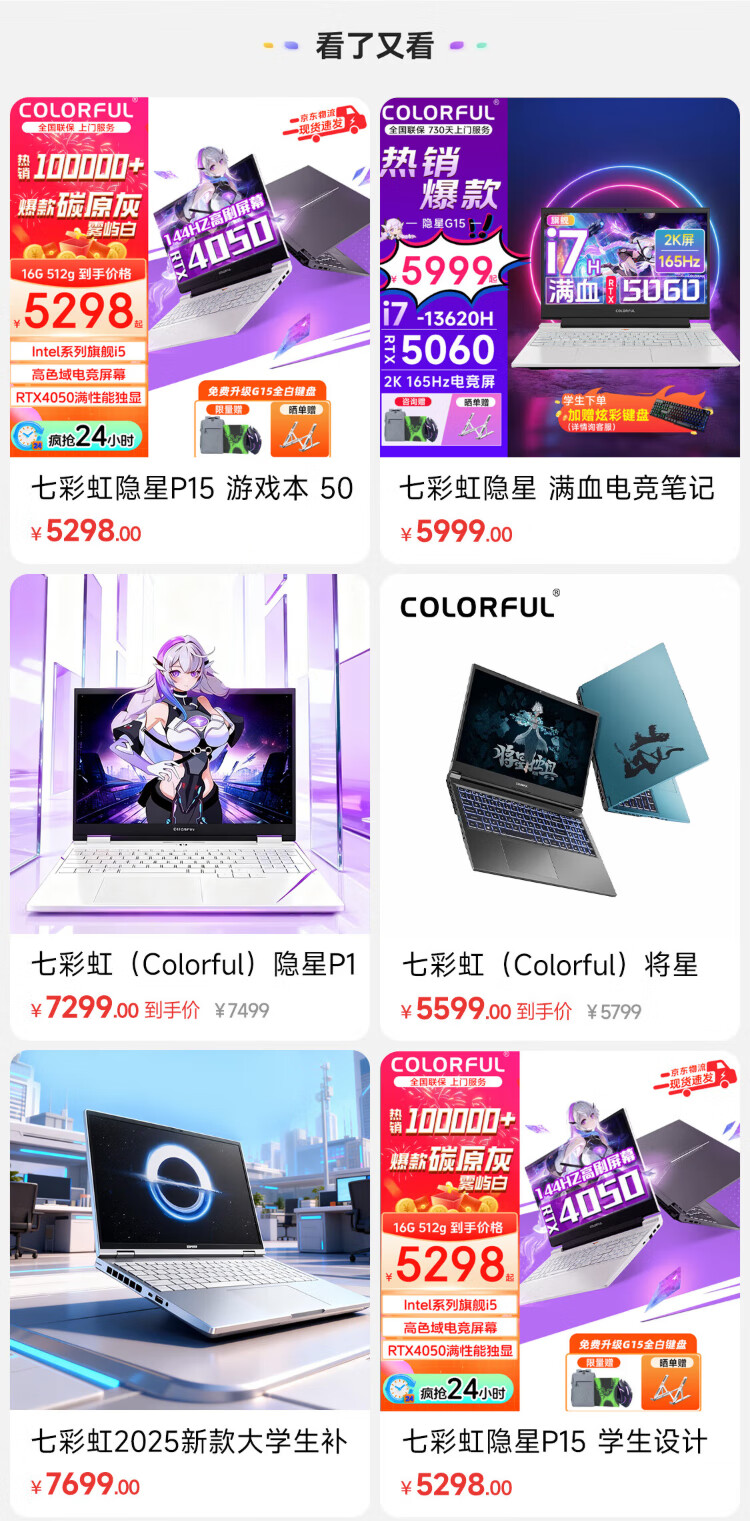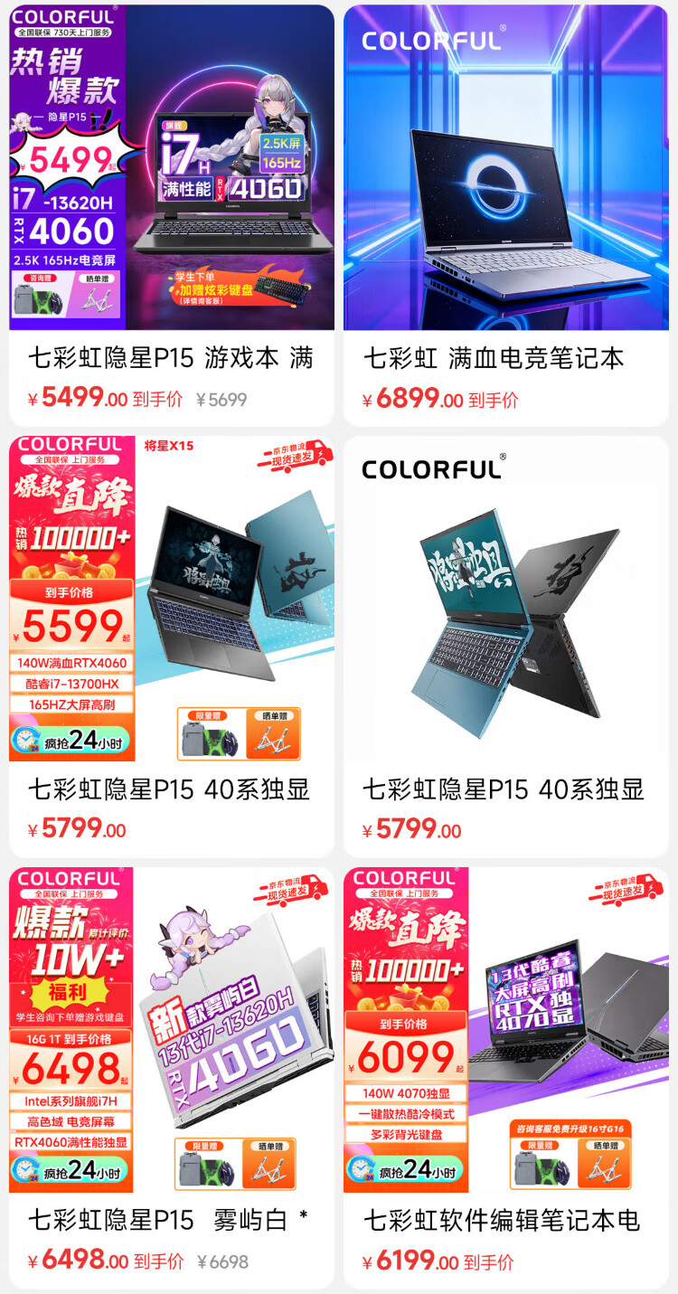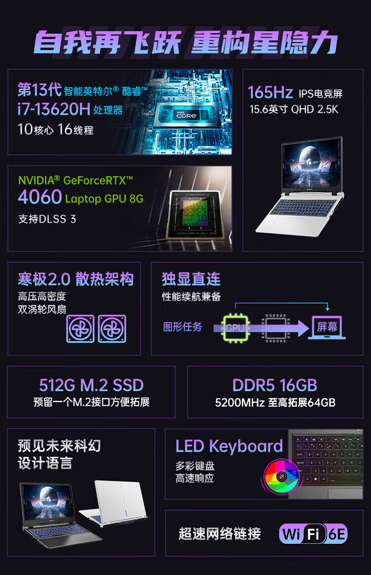 Colorful Hidden Star P15 gaming laptop 50 series full performance independent graphics 40 series independent graphics direct connection high brush student design software editing laptop full blood e-sports notebook Core-I5-13420H/RTX5050 white *enhanced and upgraded version 16G memory 1TB solid state