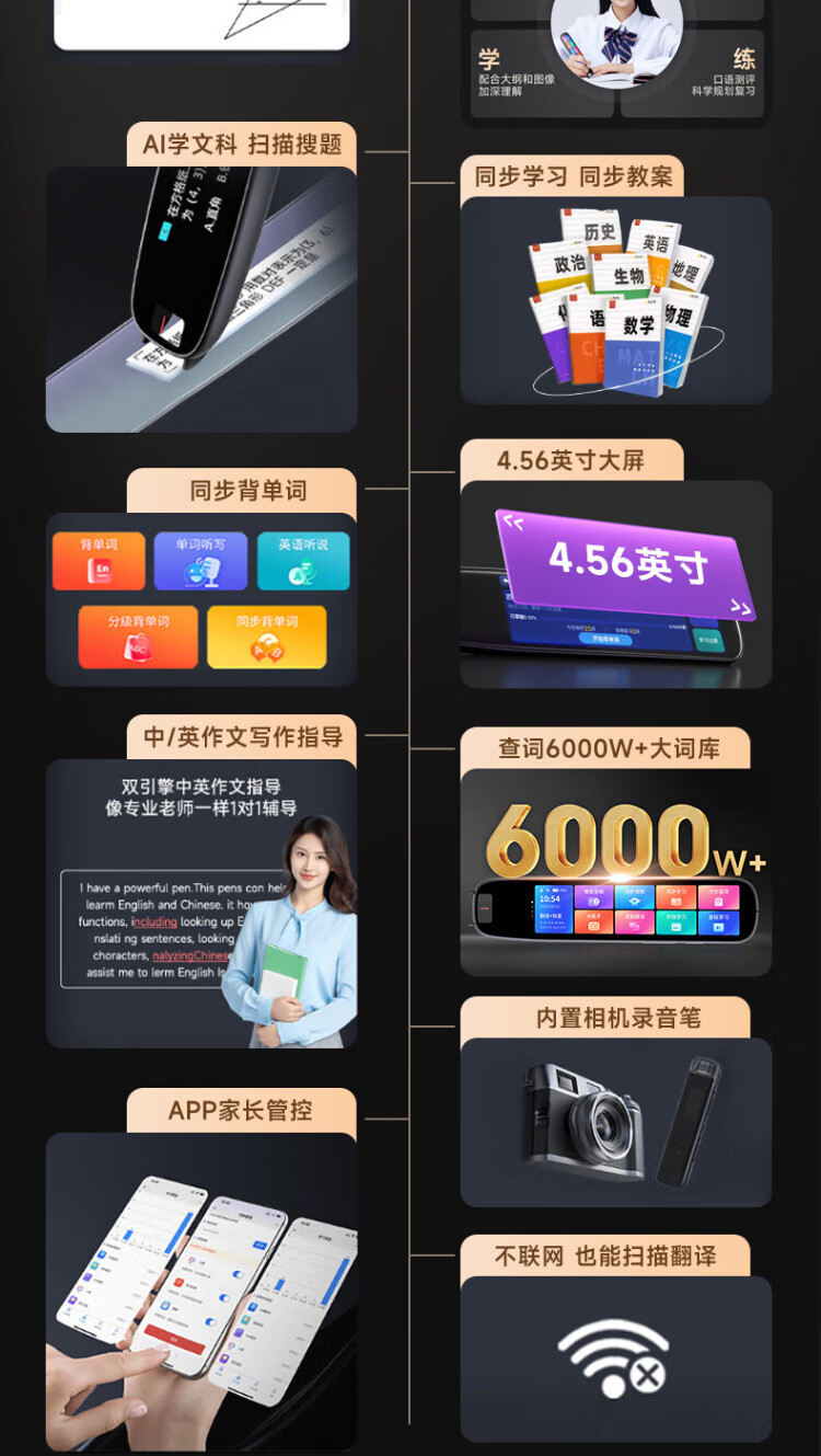 Good memory star Bakura Sufa 128G reading pen English scanning pen universal reading machine primary school junior high school high school students textbook synchronous scanning pen young children translation dictionary X16 64G + 4.56 inches + general learning + shooting questions