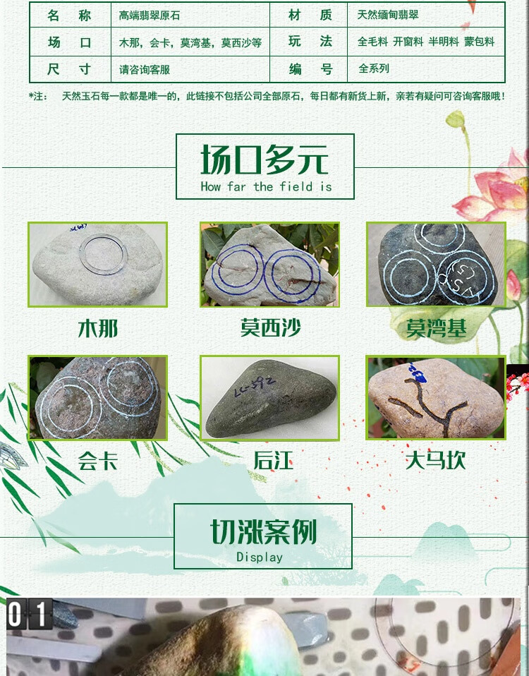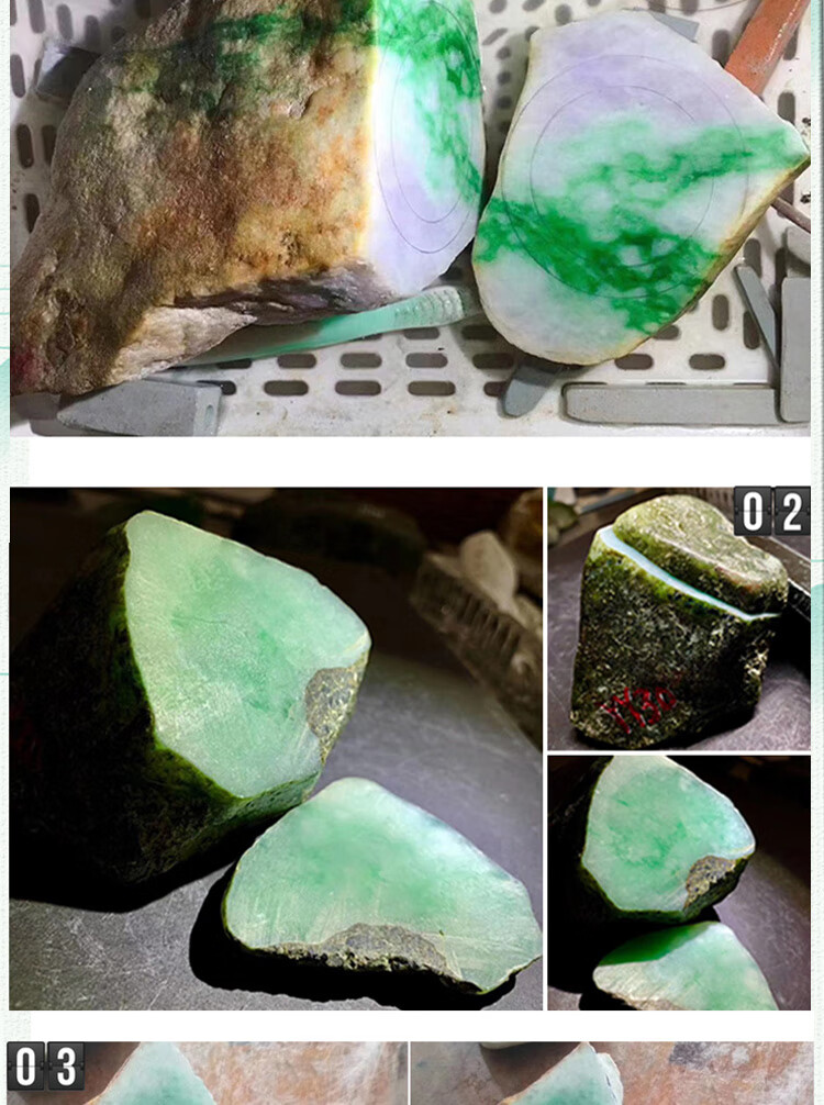 缅甸天然翡翠原石毛料手镯料散珠子料冰种飘花阳绿紫罗兰玉石手镯 正品缅甸翡翠玉石原料 无玉包赔